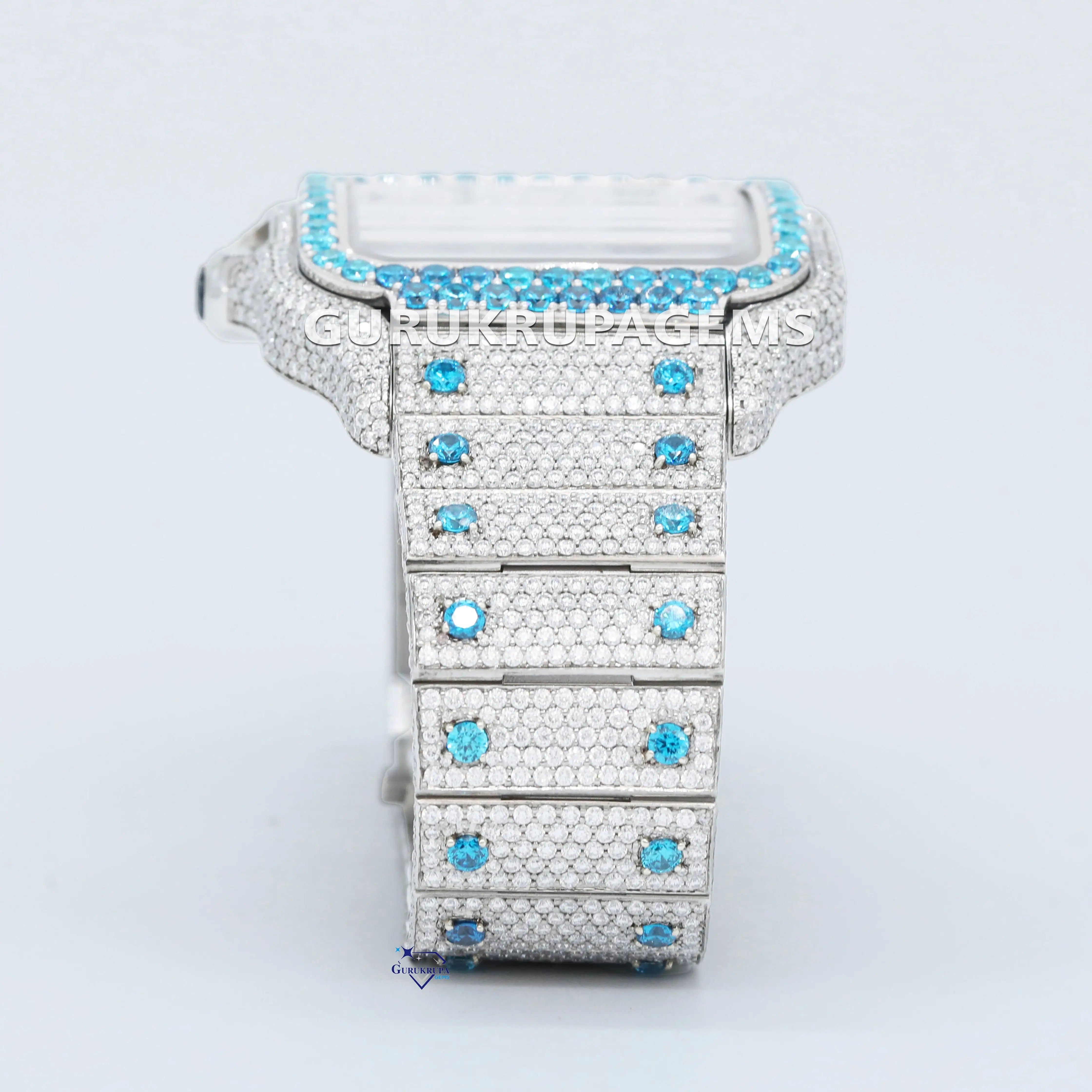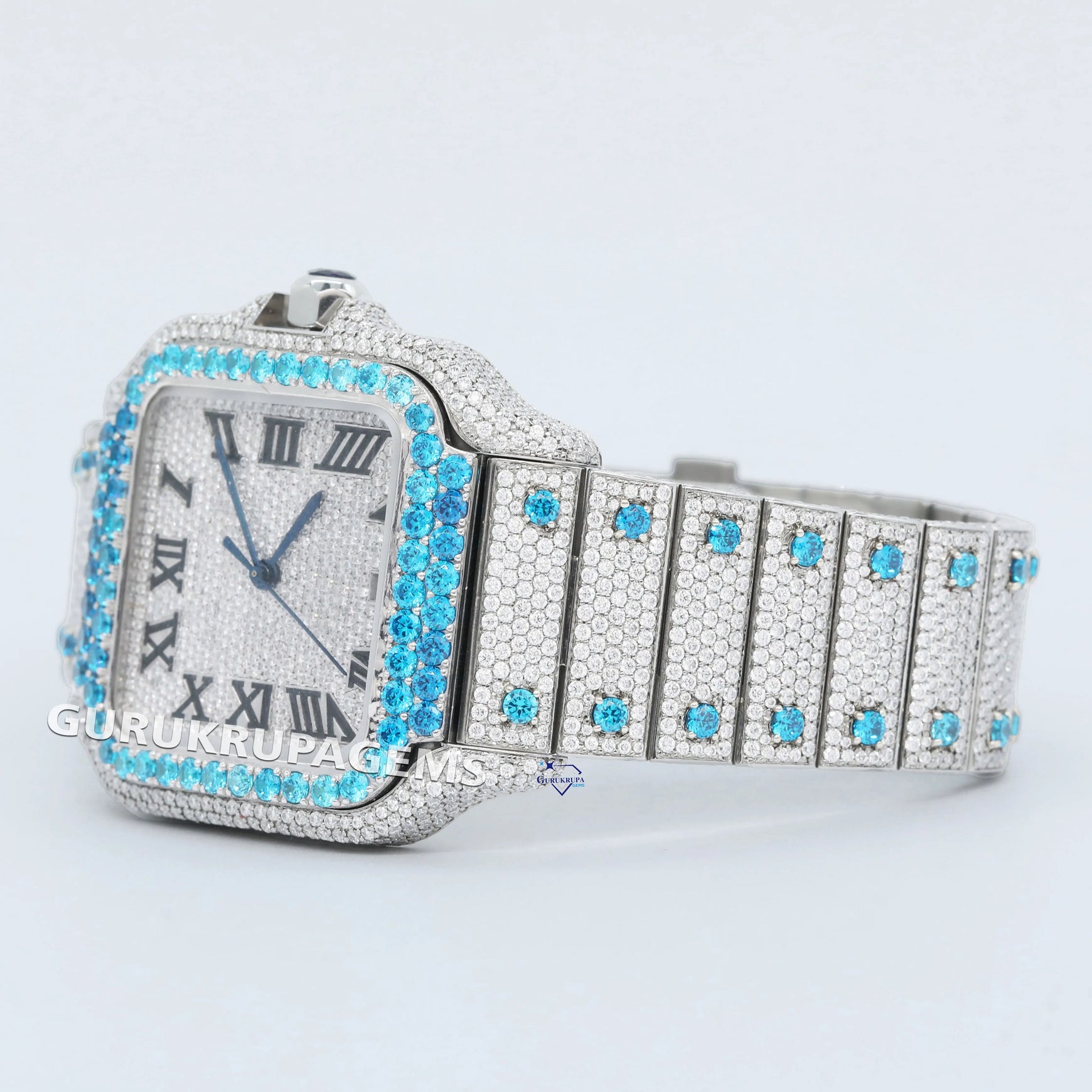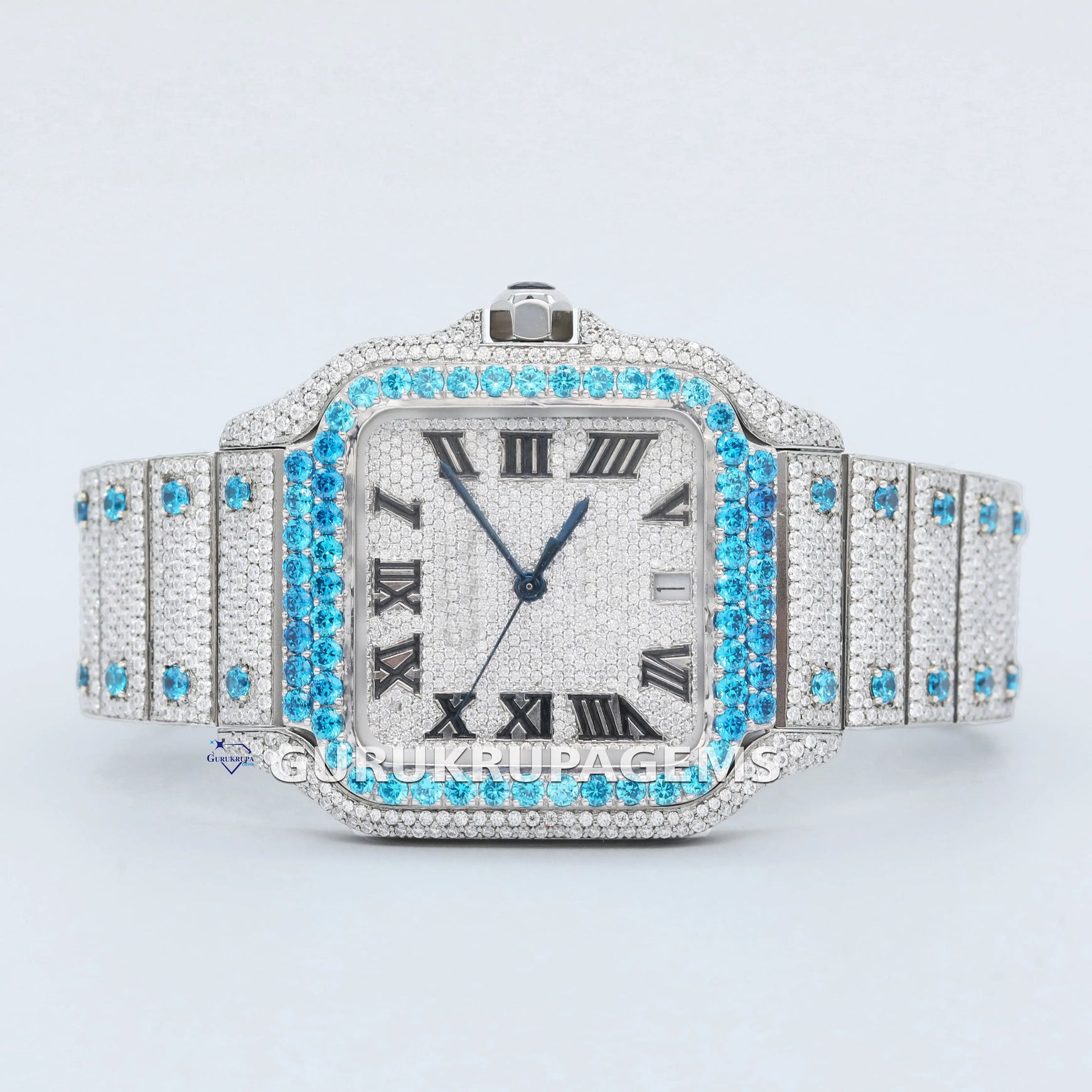 Fashionable sky blue diamond roman numerals watch for unisex crafted handmade