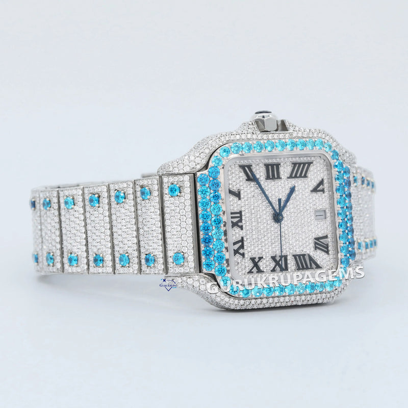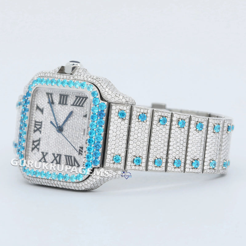 Shine Bright with a Sky Blue Diamond Roman Numerals Watch for Unisex Style