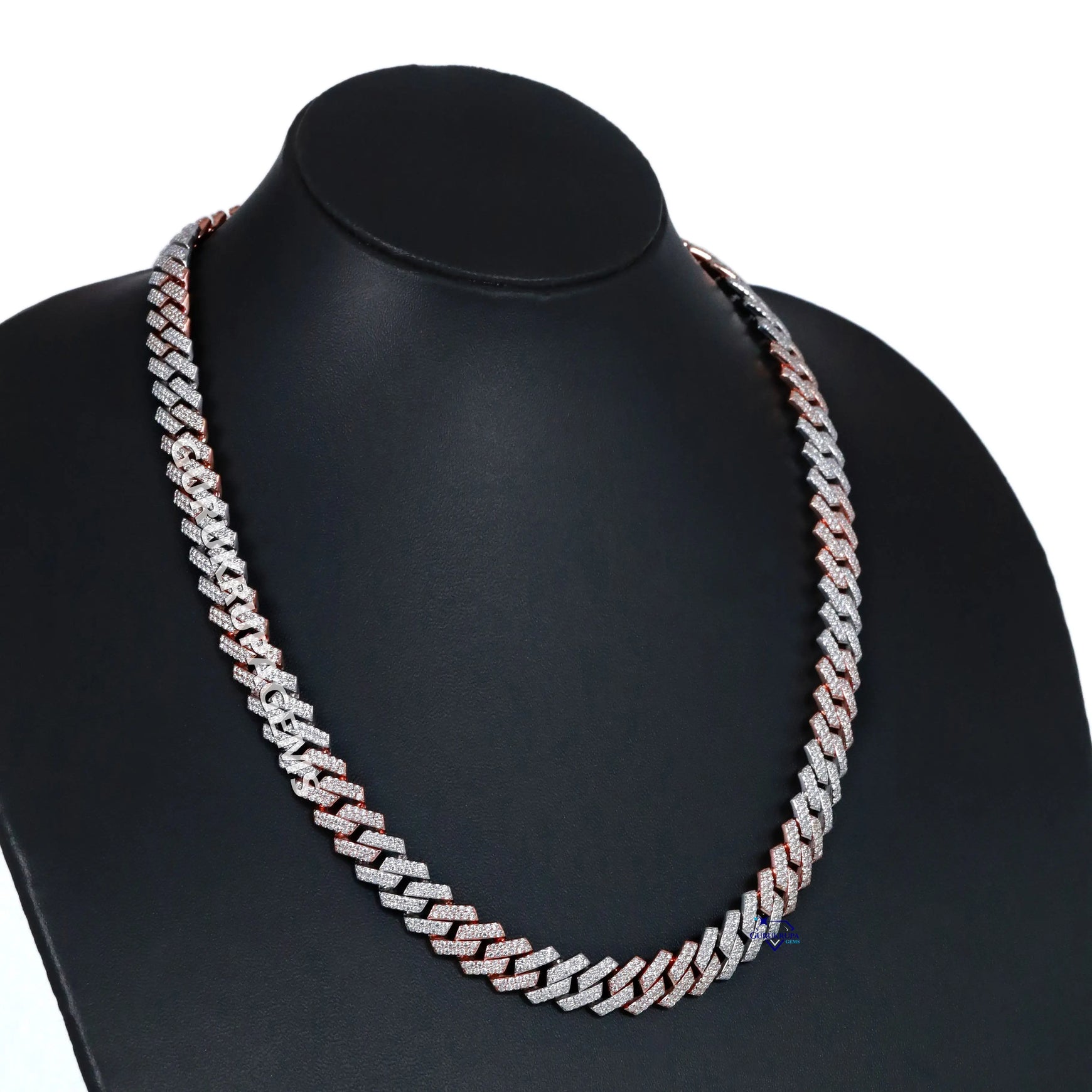 Hip hop two tone diamond chain for men in 14kt gold with VVS iced detail