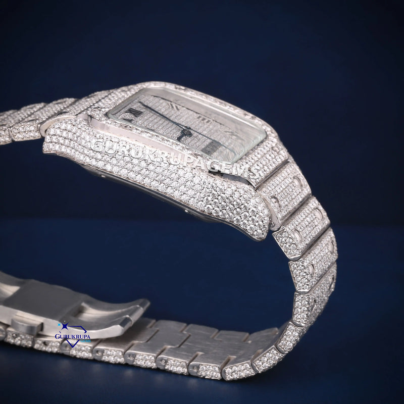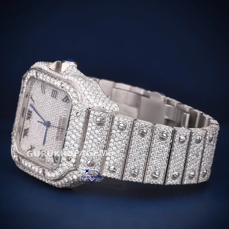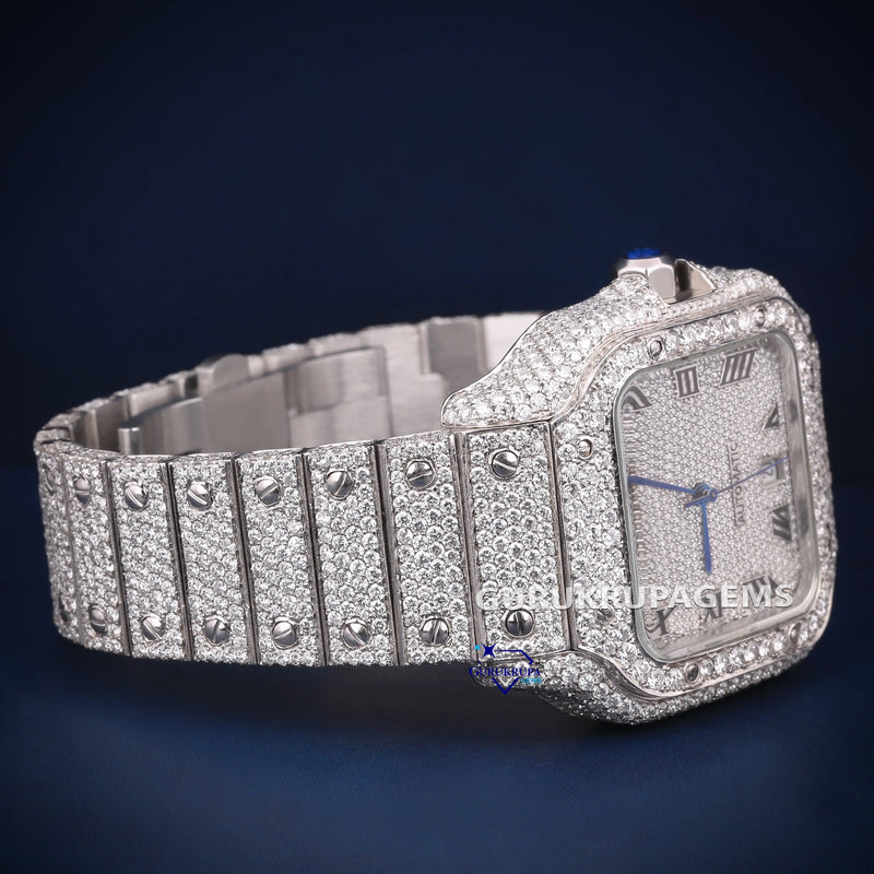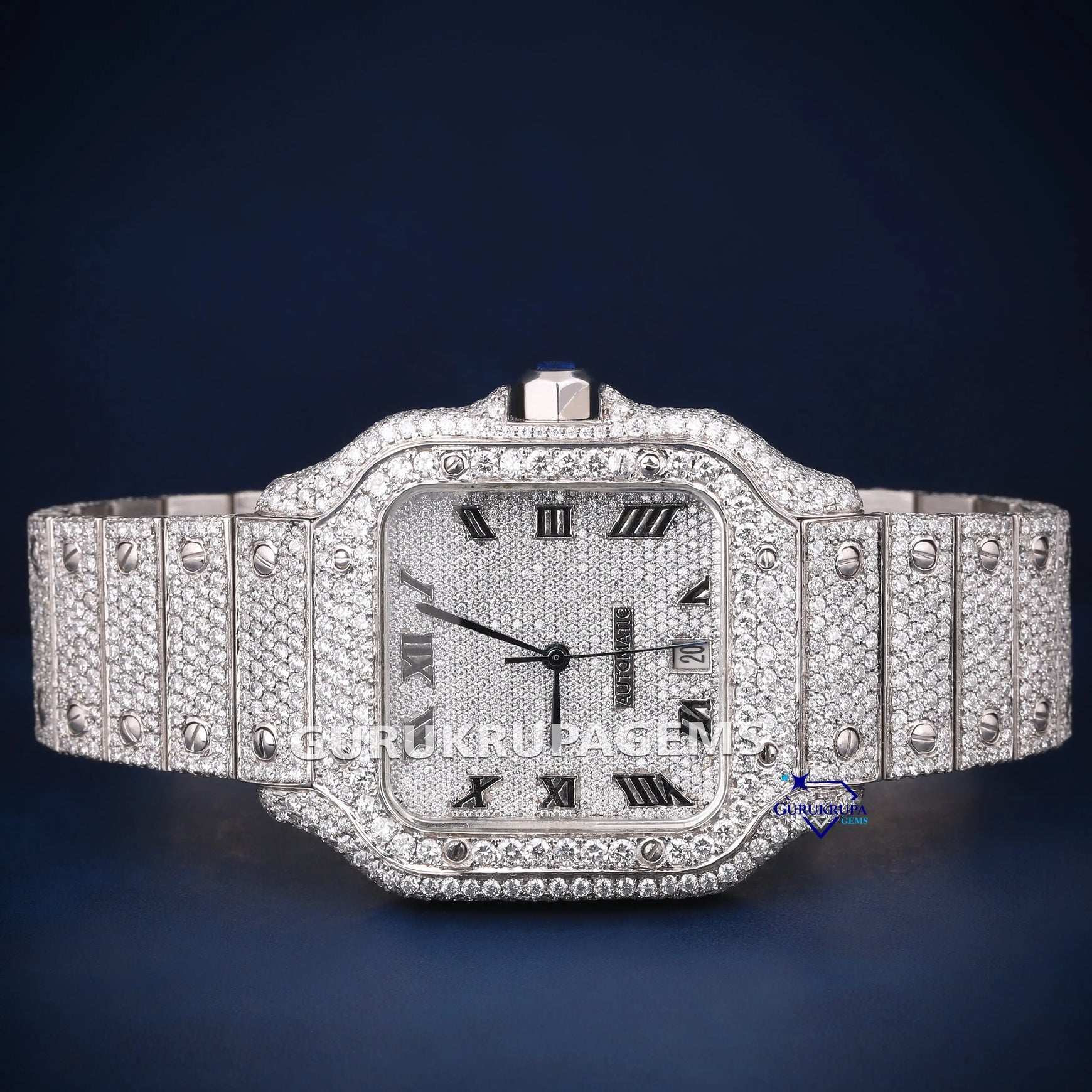 Full white Roman dials fully iced out stainless steel hip hop diamond watch