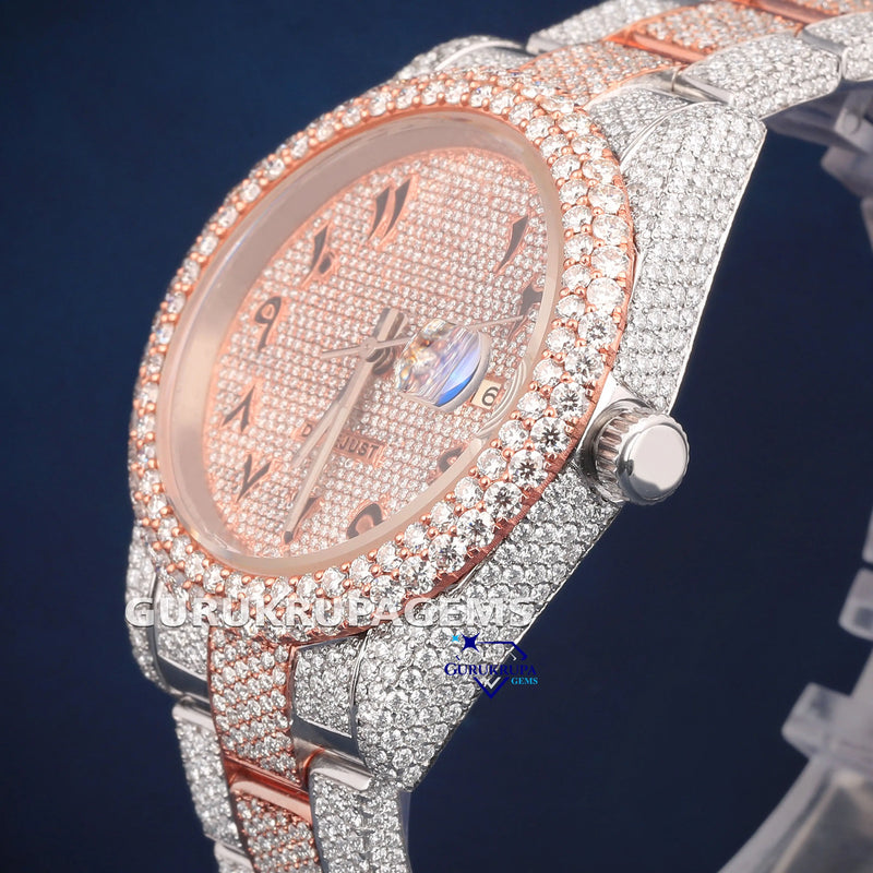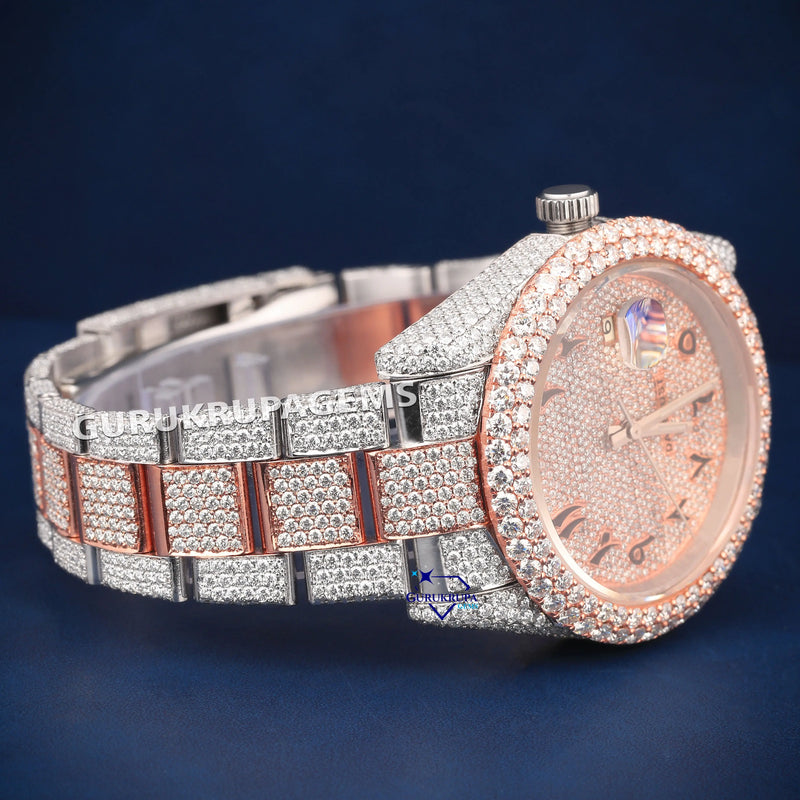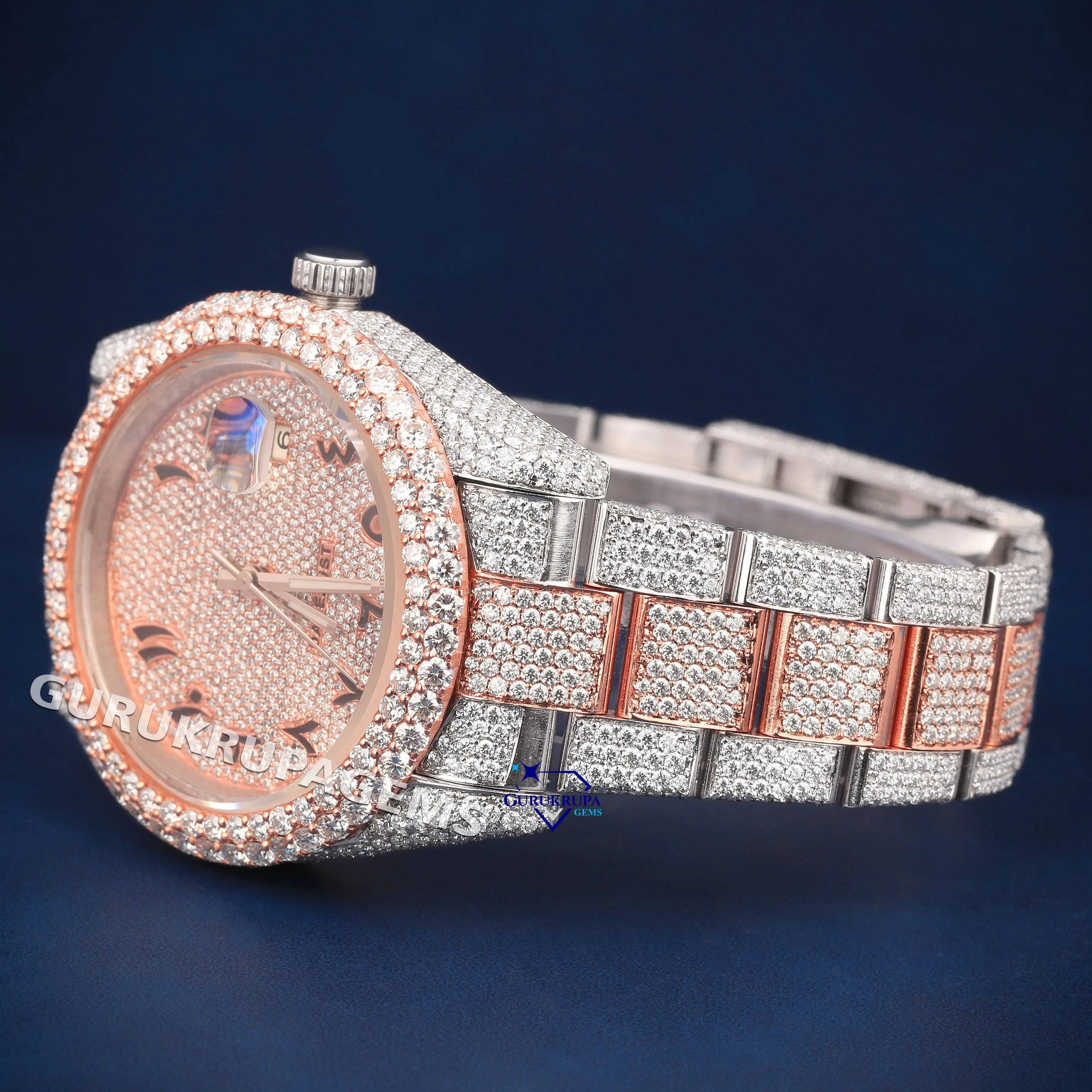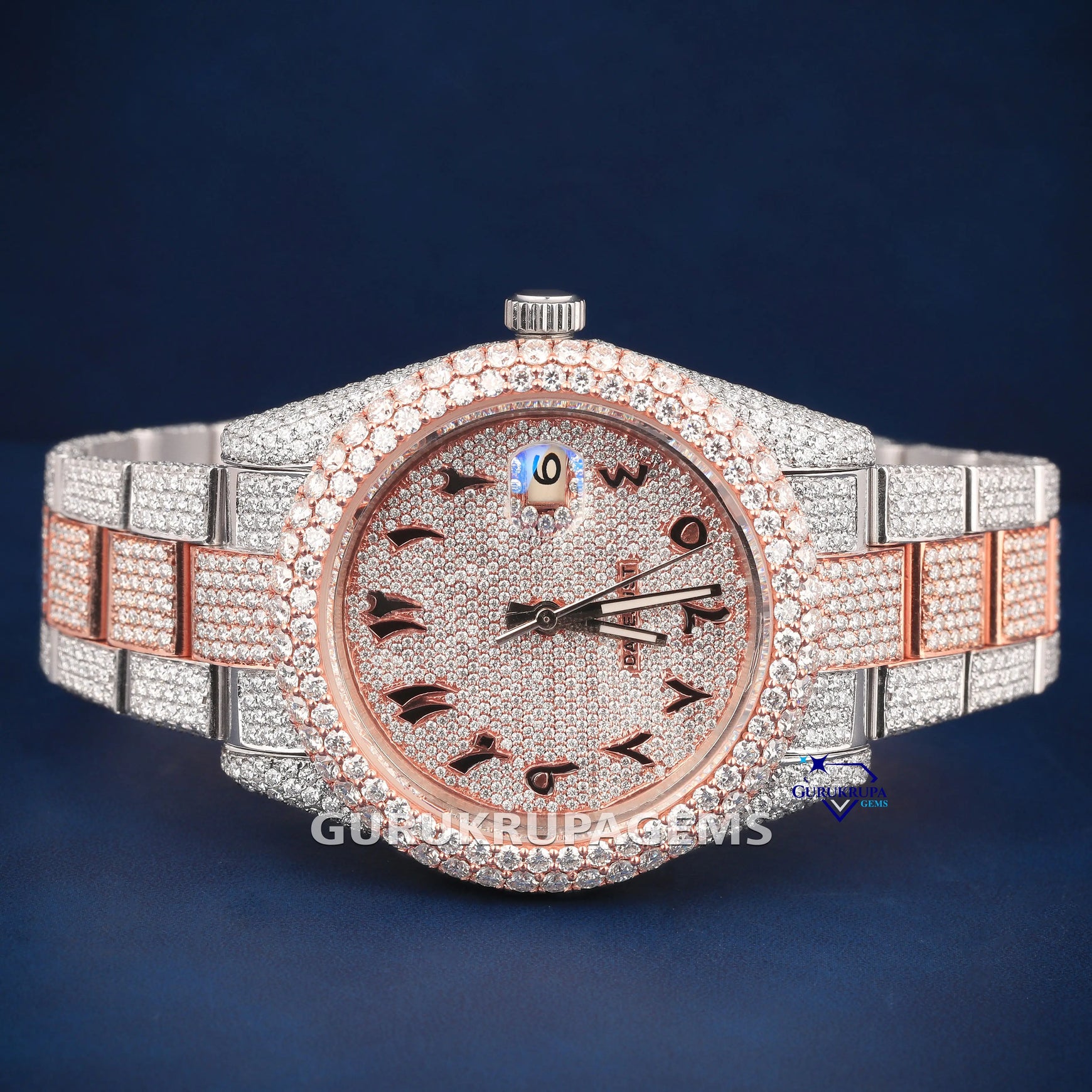 Two Tone Arabic Dial Men Hip Hop Diamond Watch