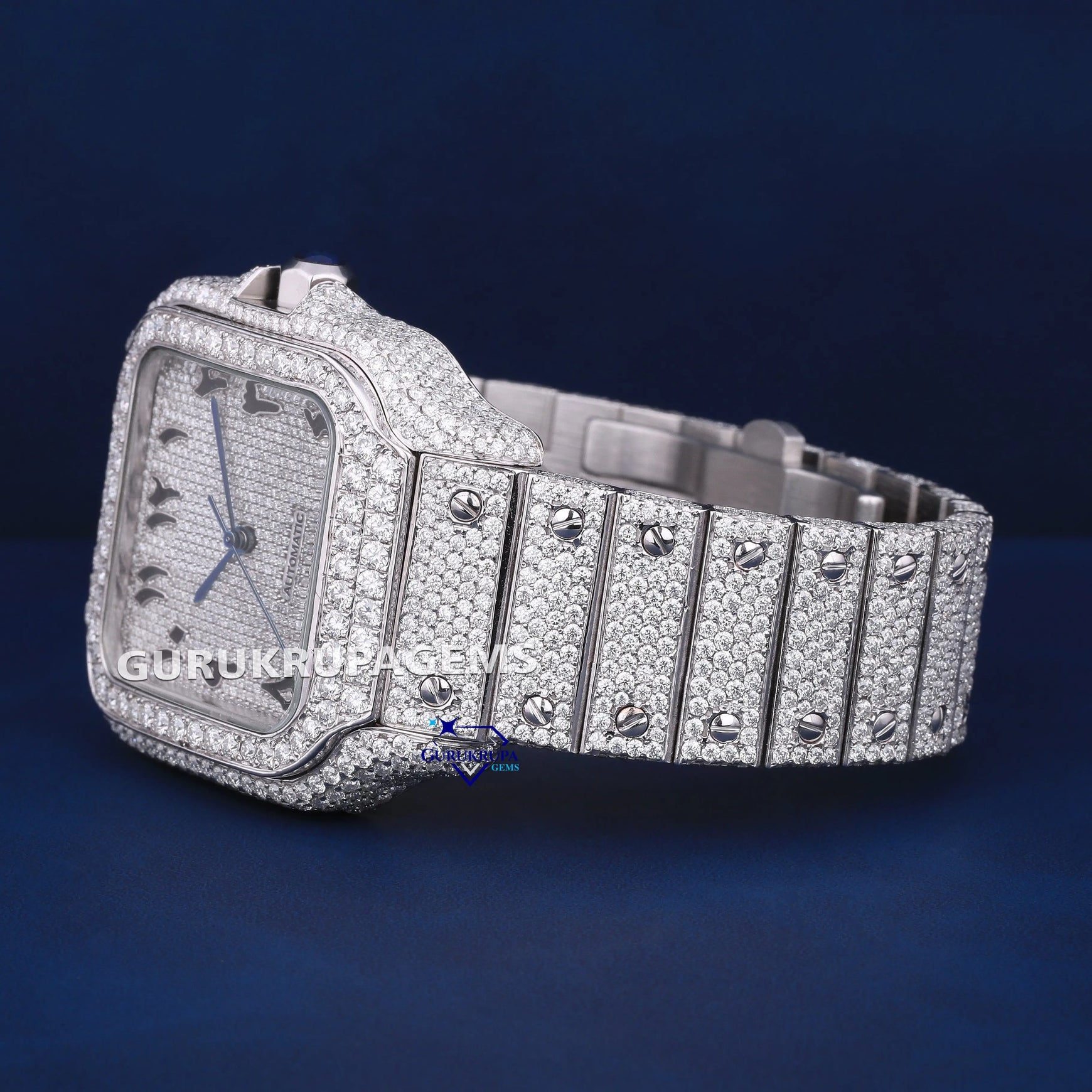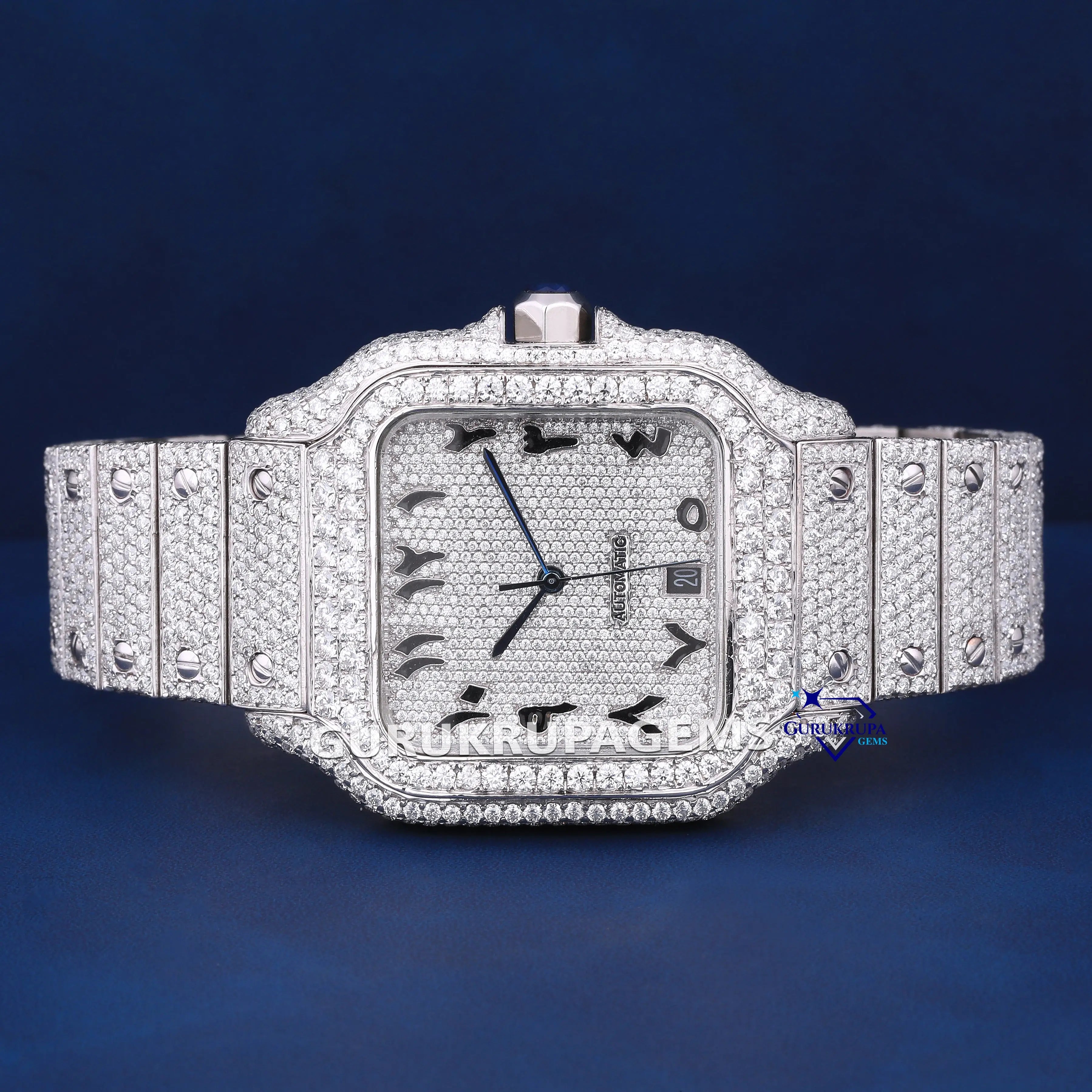 Fully iced custom arabic dial hip hop rappers style diamond iced out mens watch