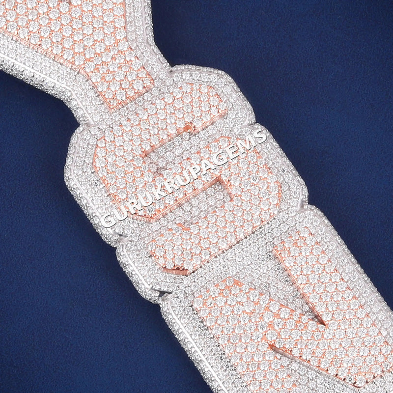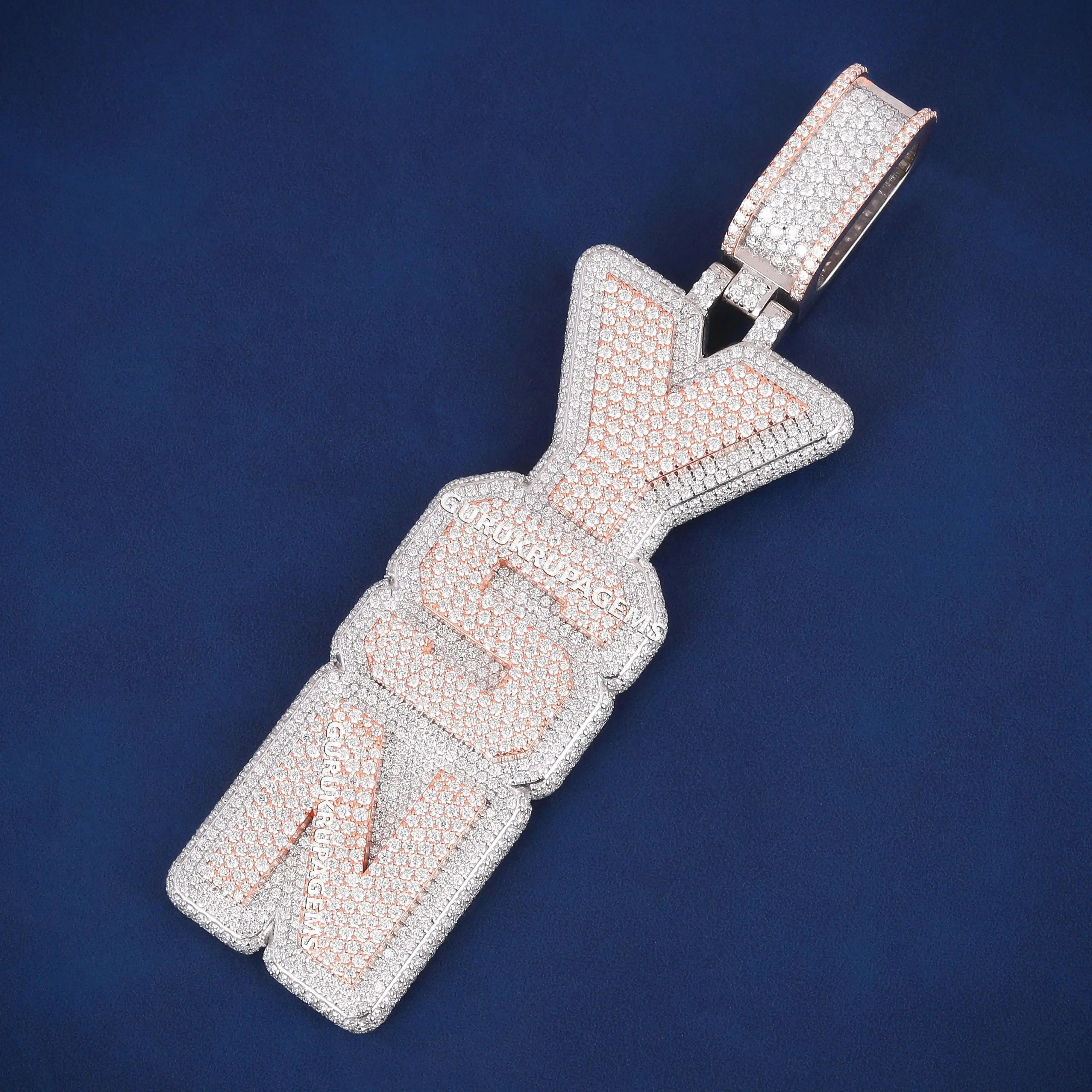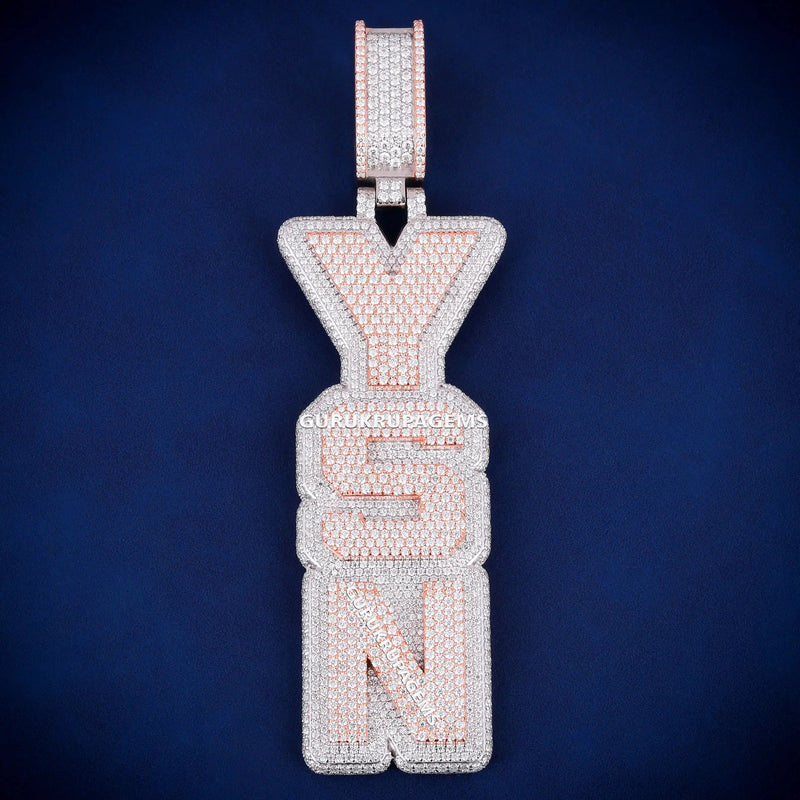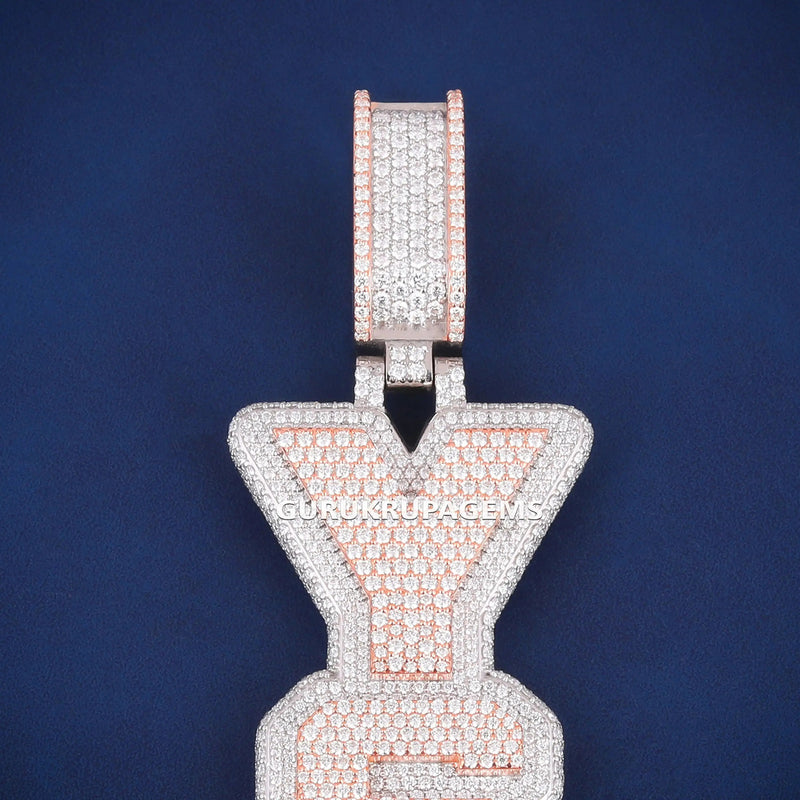 Fully Iced Out Customized Vertical Initial Letter Pendant Silver & Rose Gold Two Tone YSN Pendant Necklace