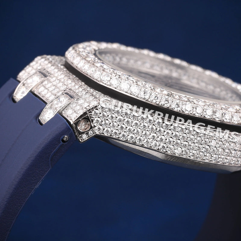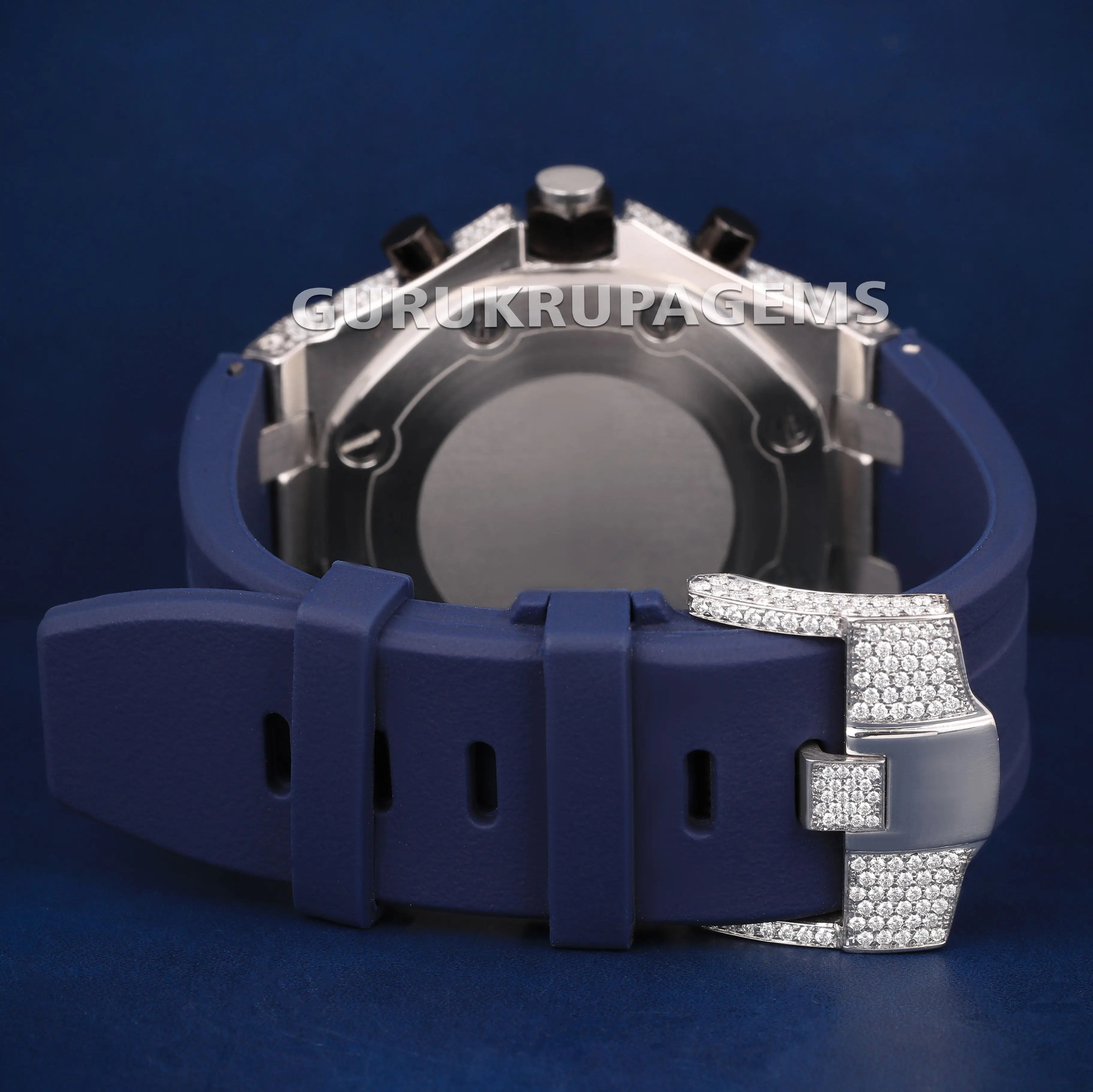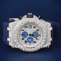 Fully Iced Out Luxury Diamond Custom Watch with Blue Rubber Belt and Blue Chronograph Dials for Mens
