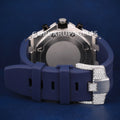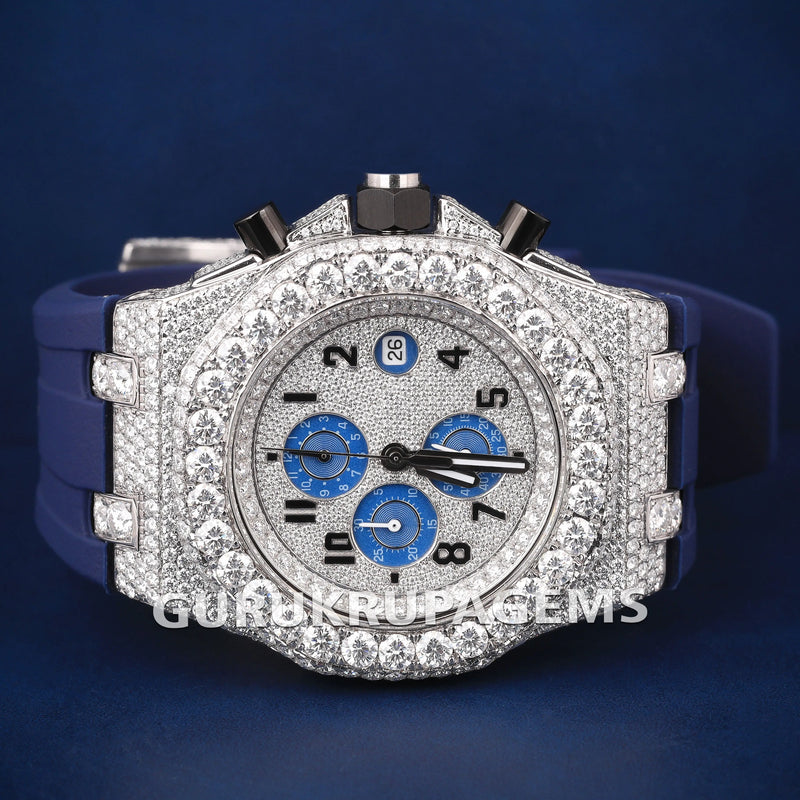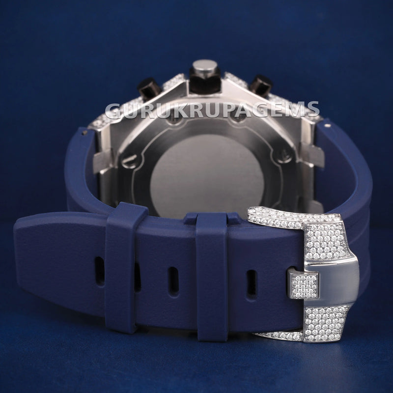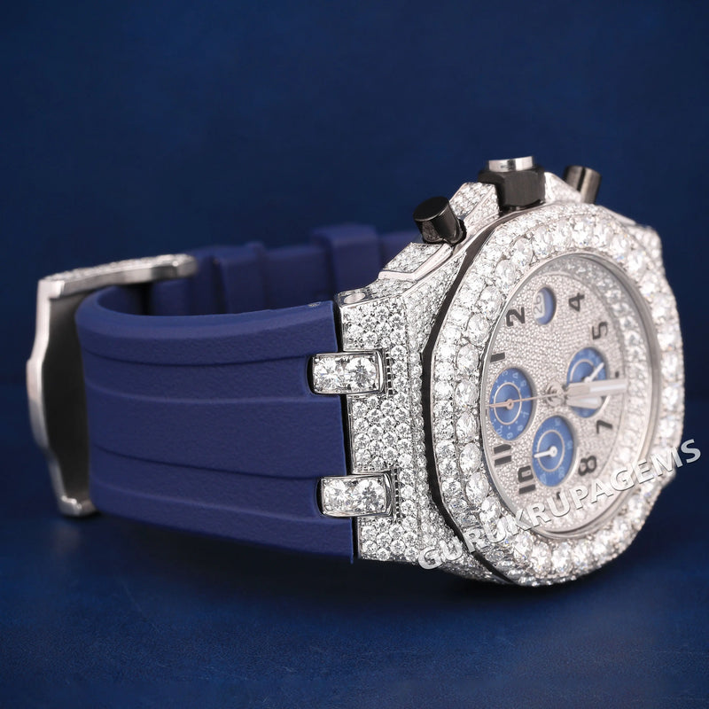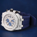 Luxury iced design a custom watch with blue rubber belt and chronograph dials