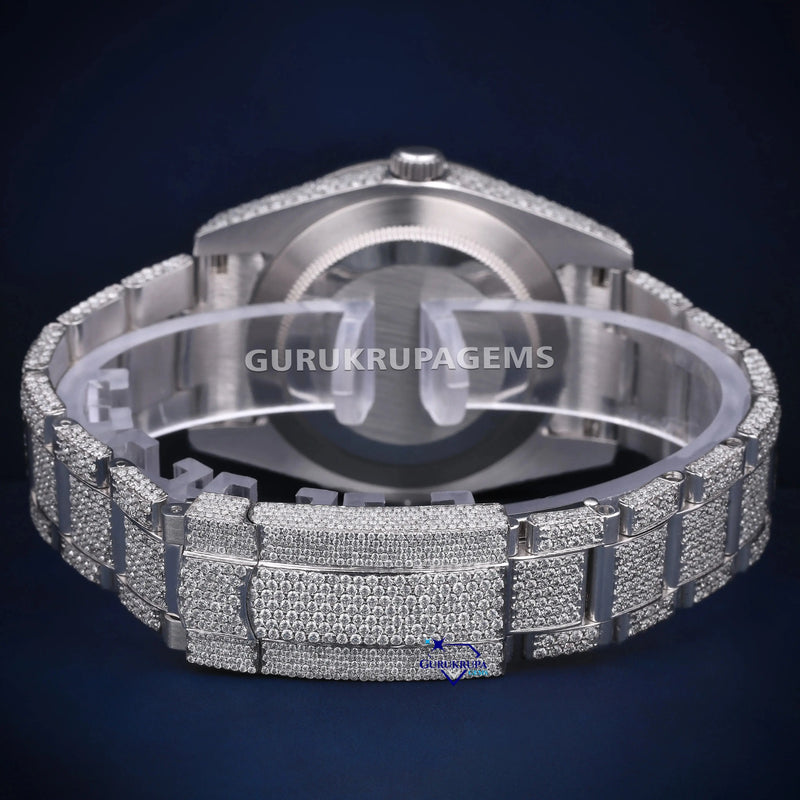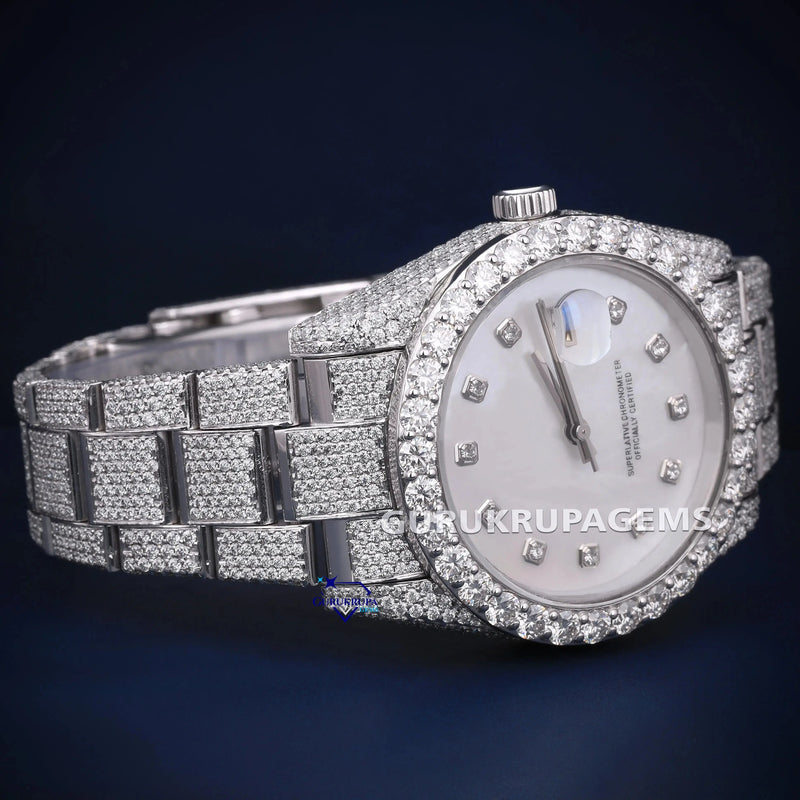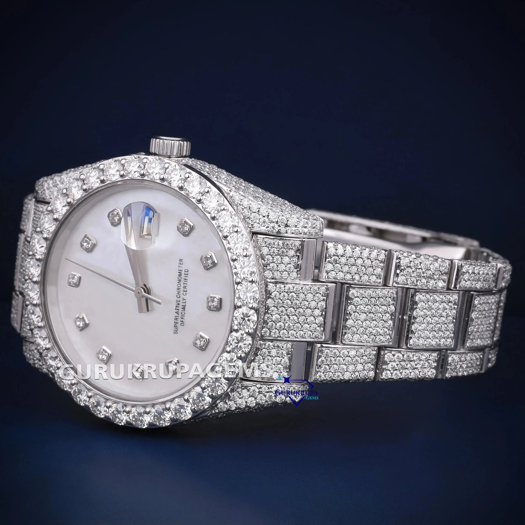 Hip Hop Diamond Watch White Dial – VVS Clarity, Full Iced Look ✨