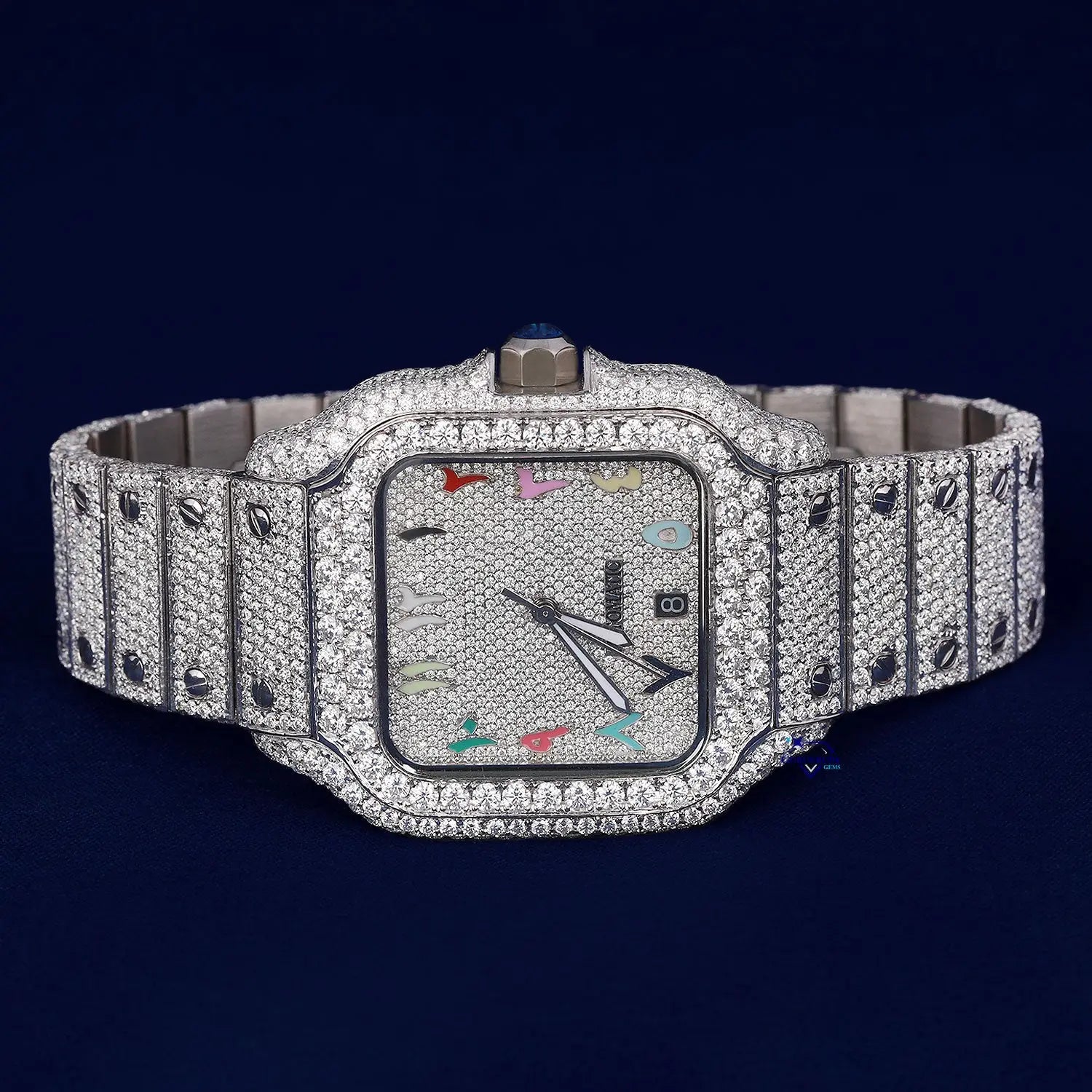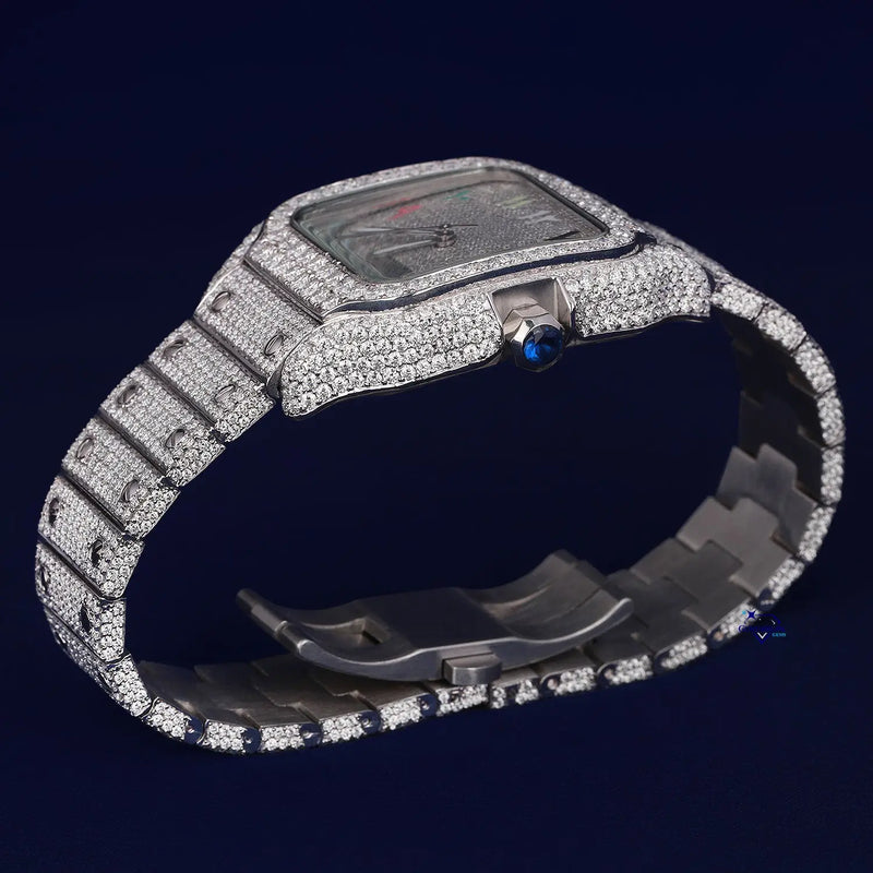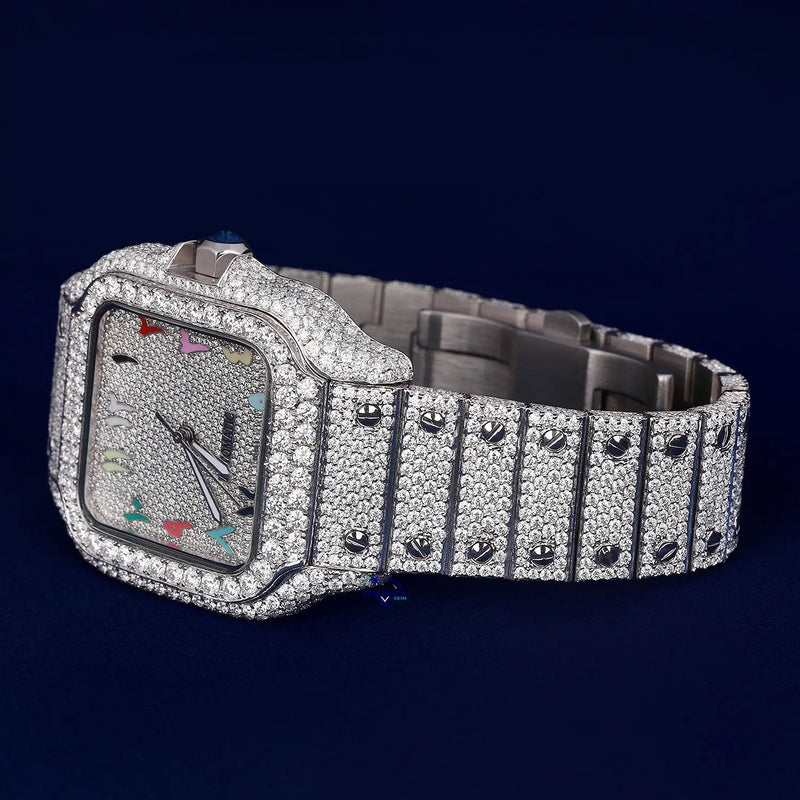 Hip hop rainbow color dial diamond wrist watch for men crafted in stainless steel with vvs clarity diamonds