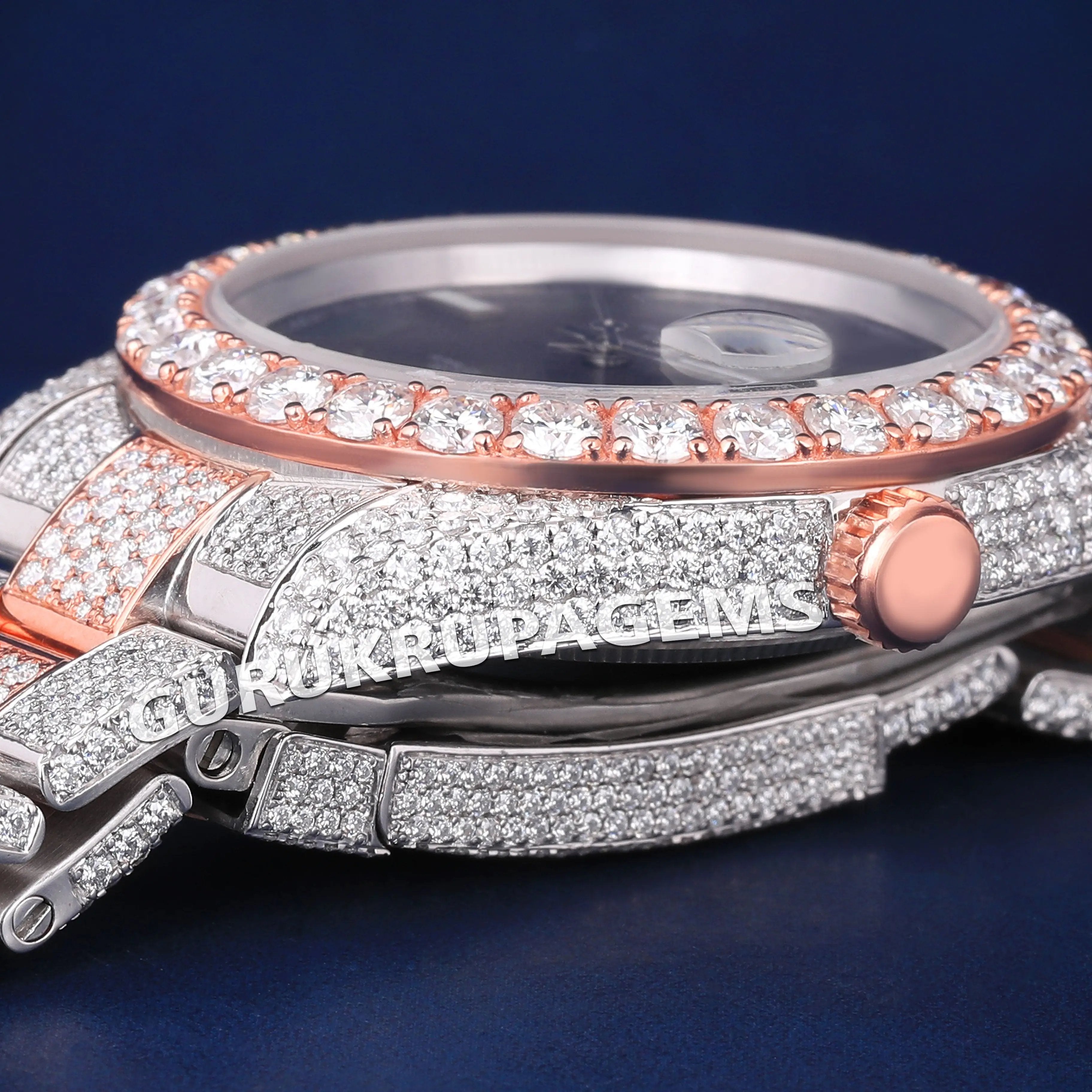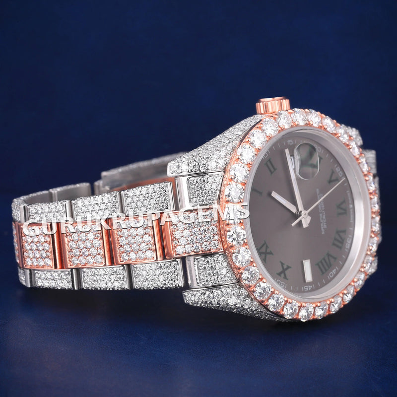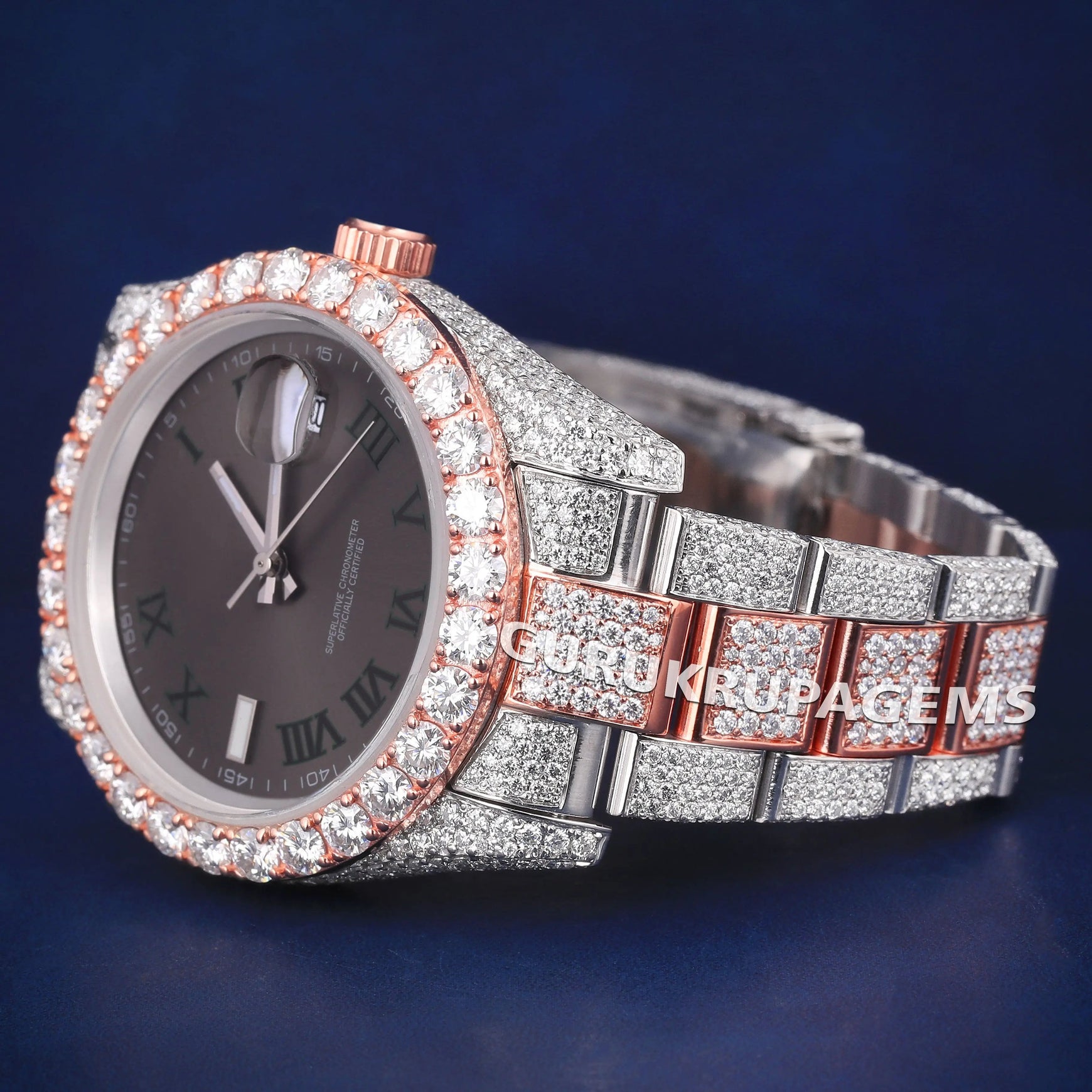 Iced Out Diamond Watch Unisex Hip Hop Watch Roman Grey Dial Silver Rose Gold Plated VVS Diamond Wrist Watch