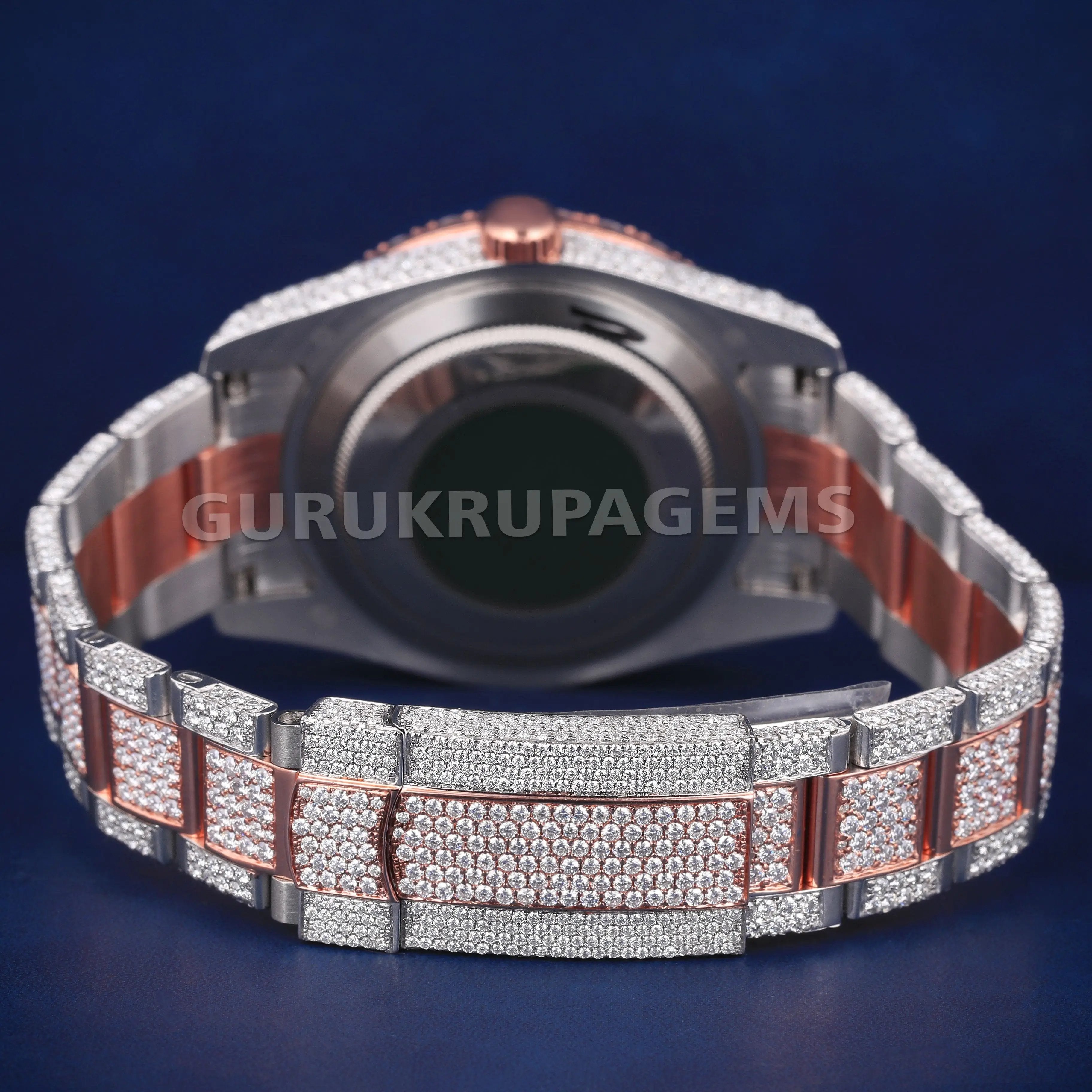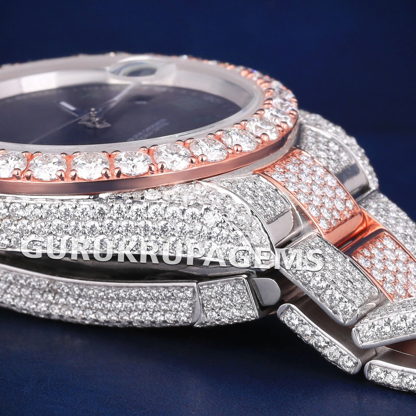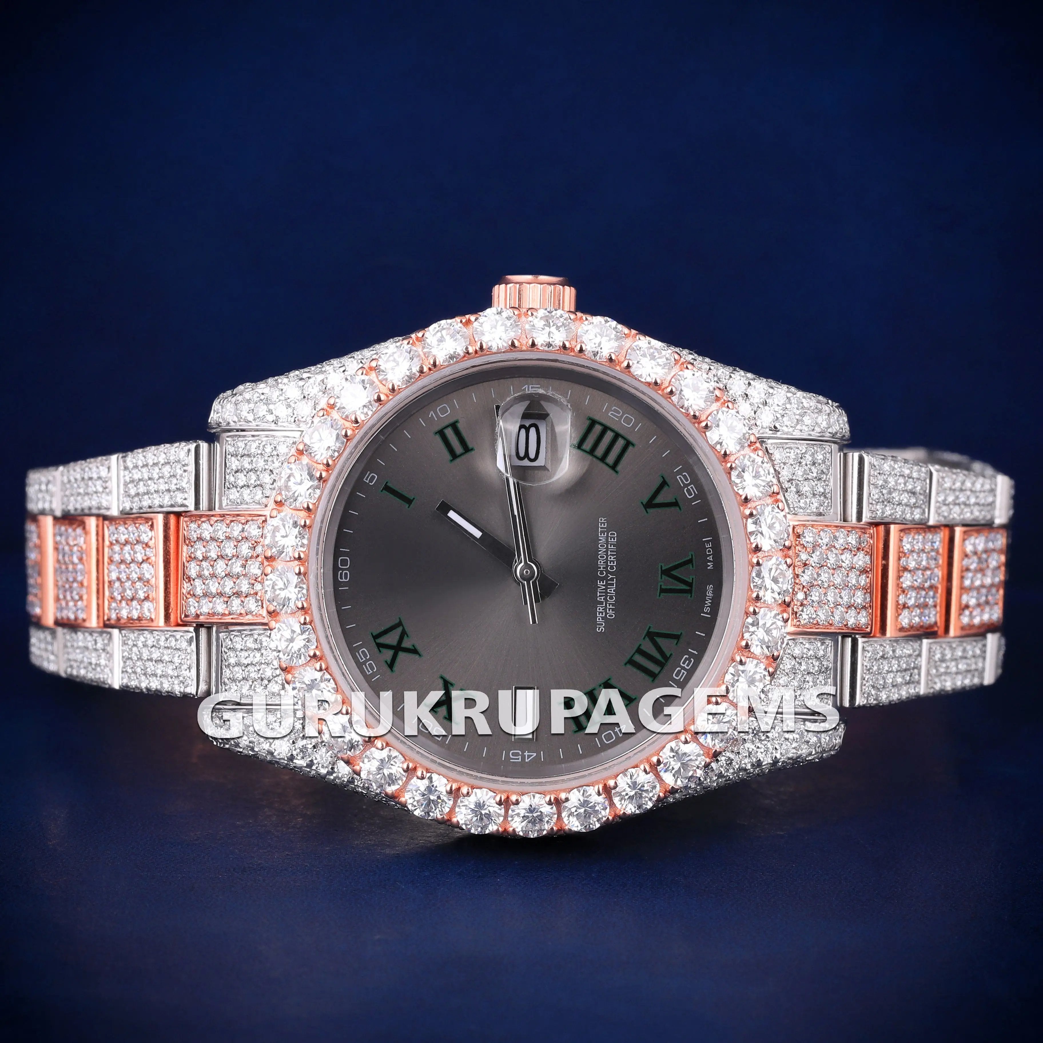 Iced Out Diamond Watch Unisex Hip Hop Watch Roman Grey Dial Silver Rose Gold Plated VVS Diamond Wrist Watch