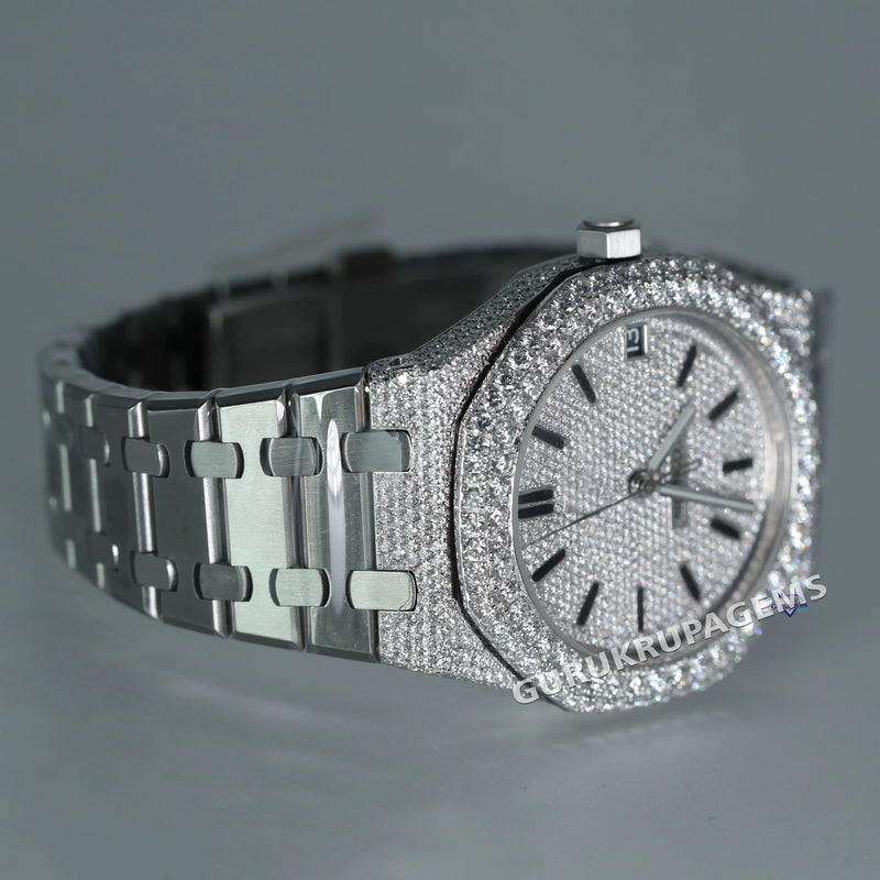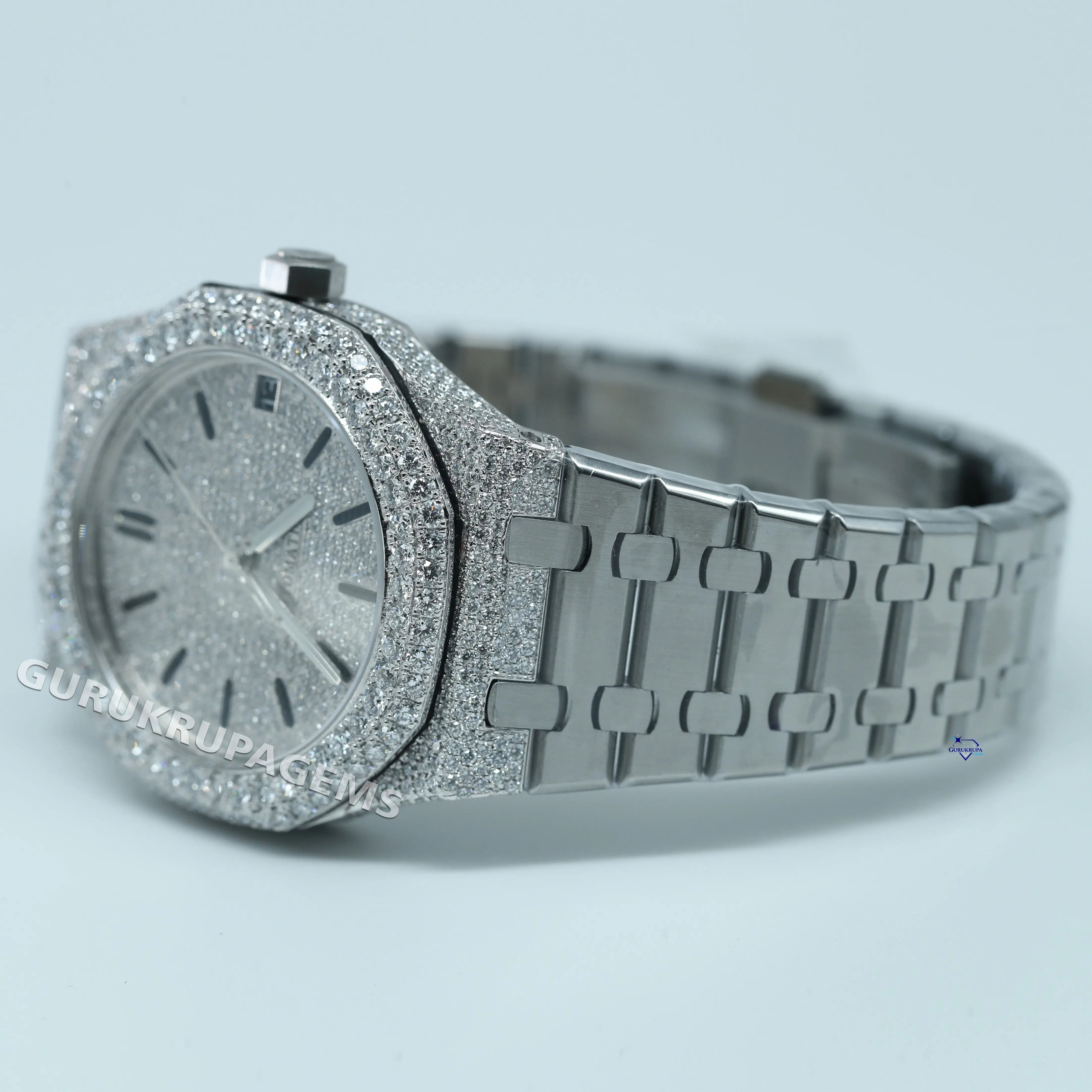 Introducing an eye catching stainless steel hip hop watch timepiece adorned with labgrown diamonds sure to capture the admiration of all
