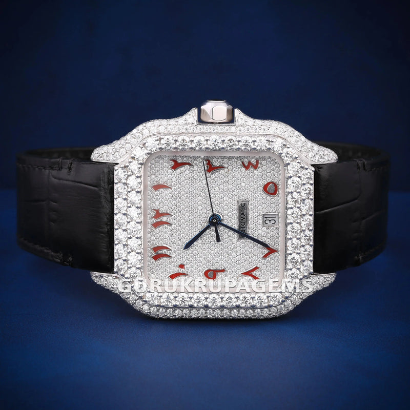 Own the Mic Look with a Hip Hop Rappers Style Diamond Watch in Red & Black