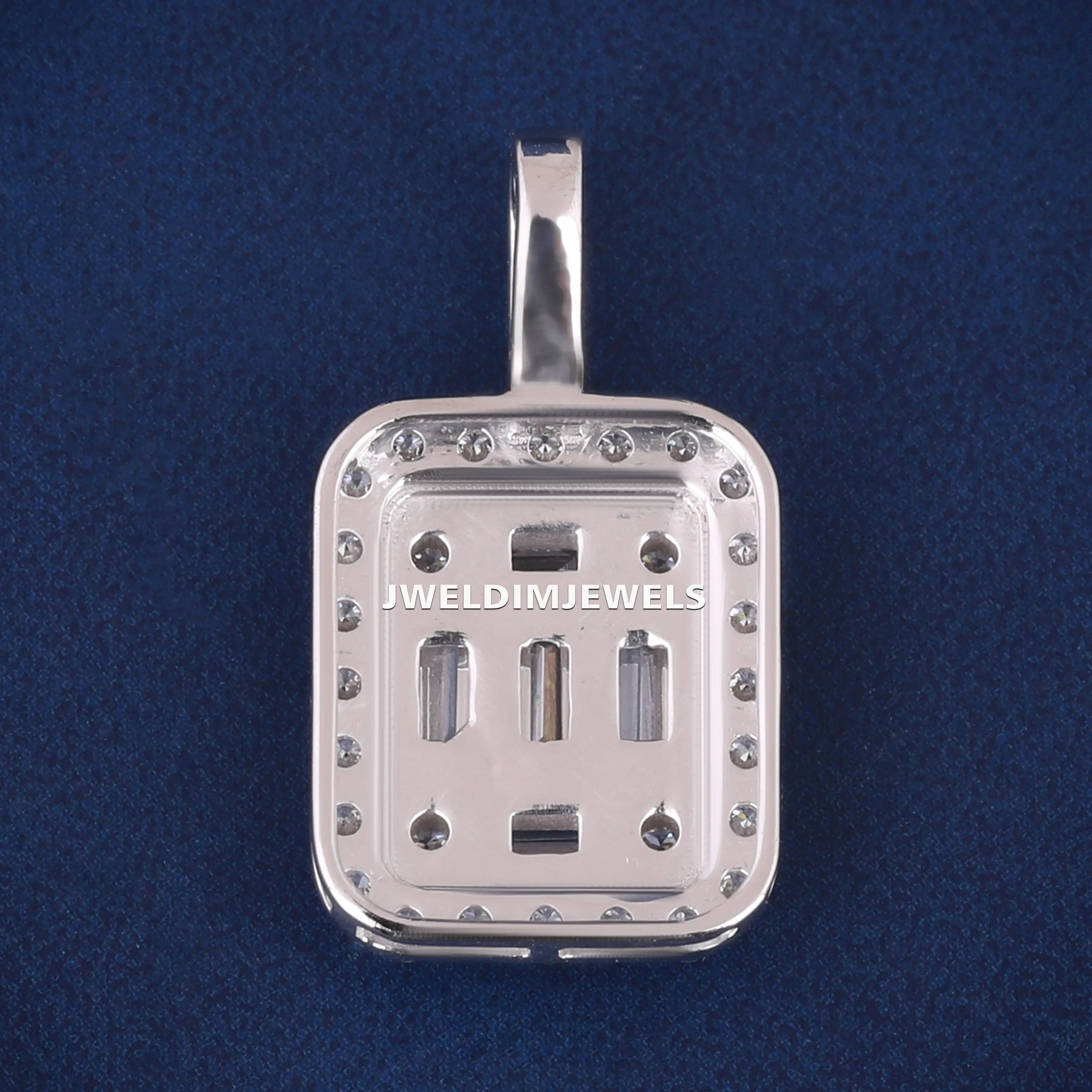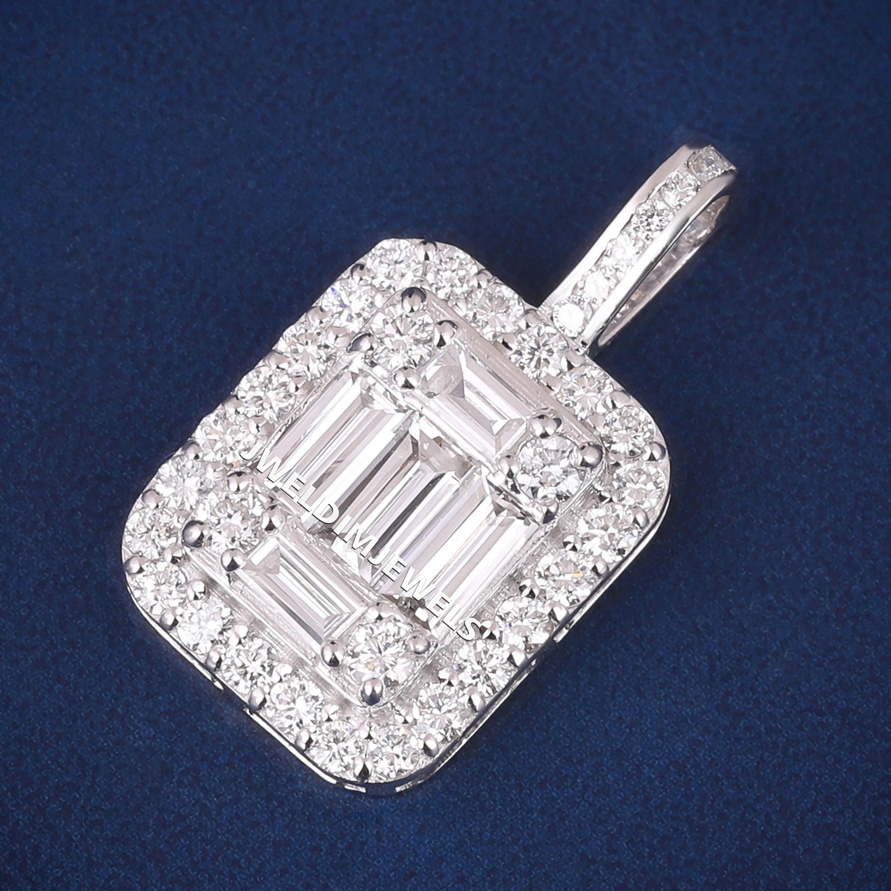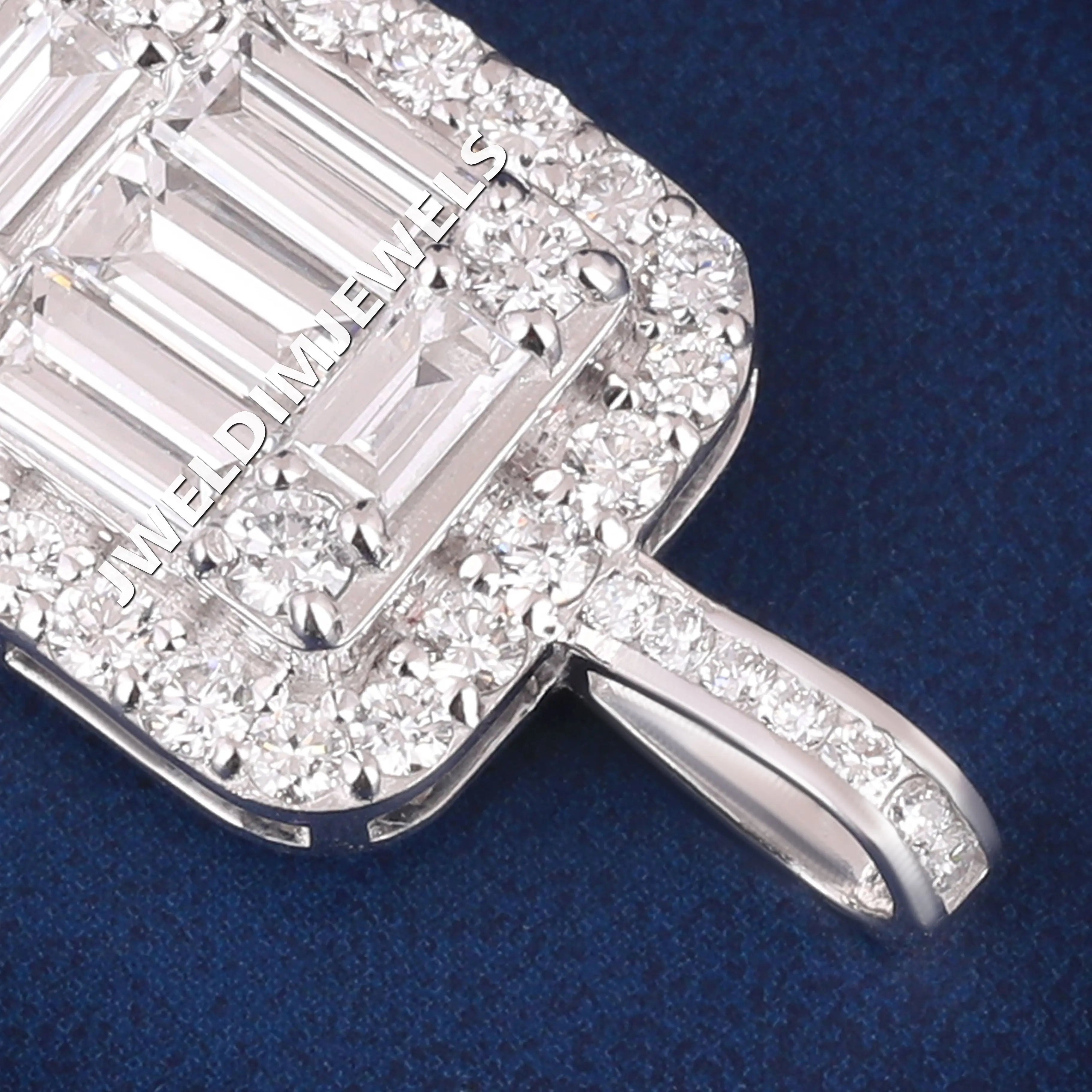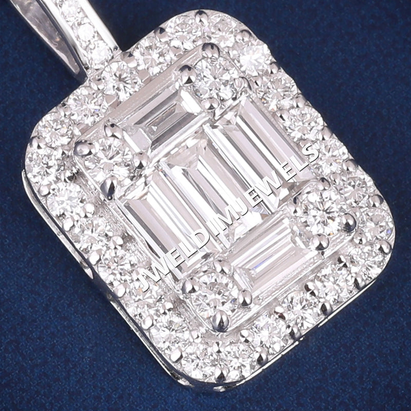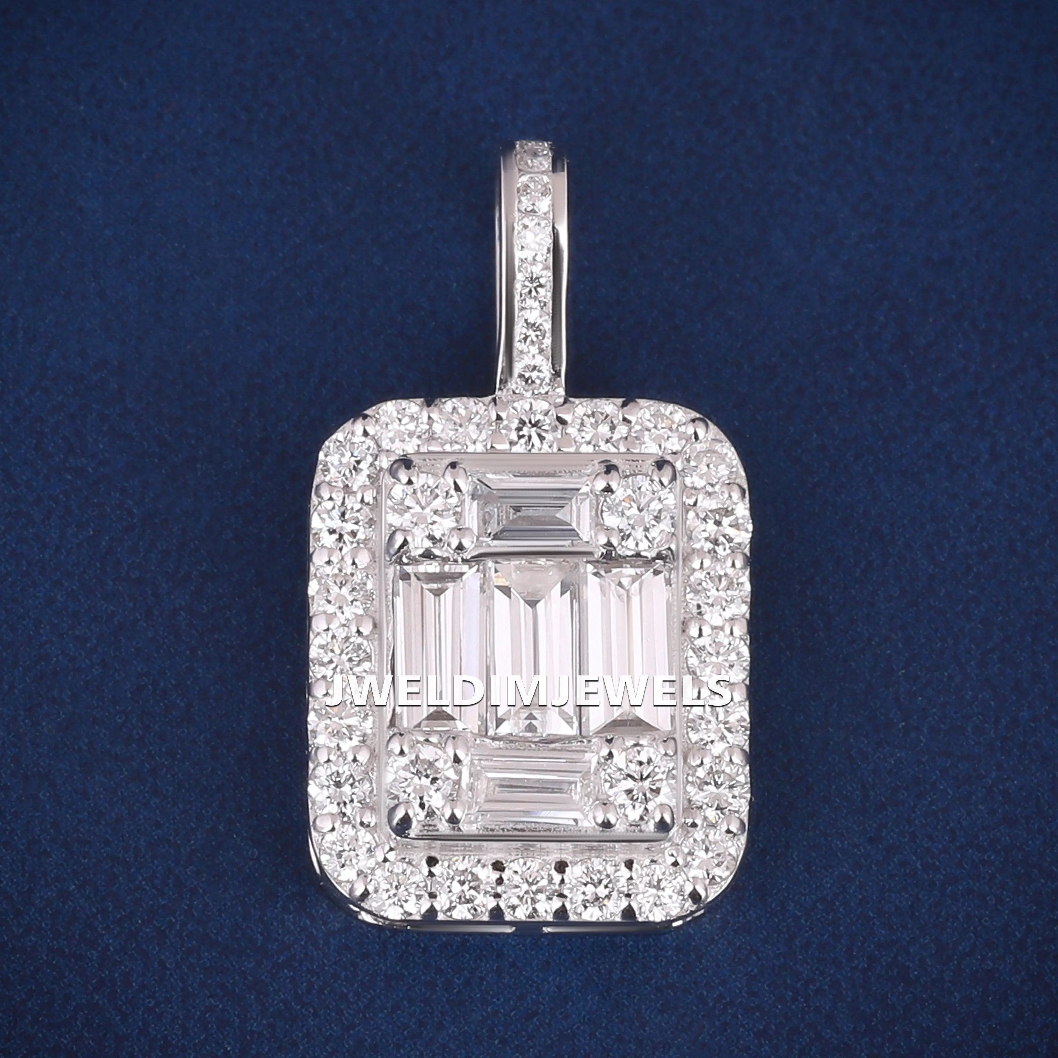 Baguette Halo Design in Luxurious 925 Sterling Silver Pendants Necklace for Premium Jewelry Buyers