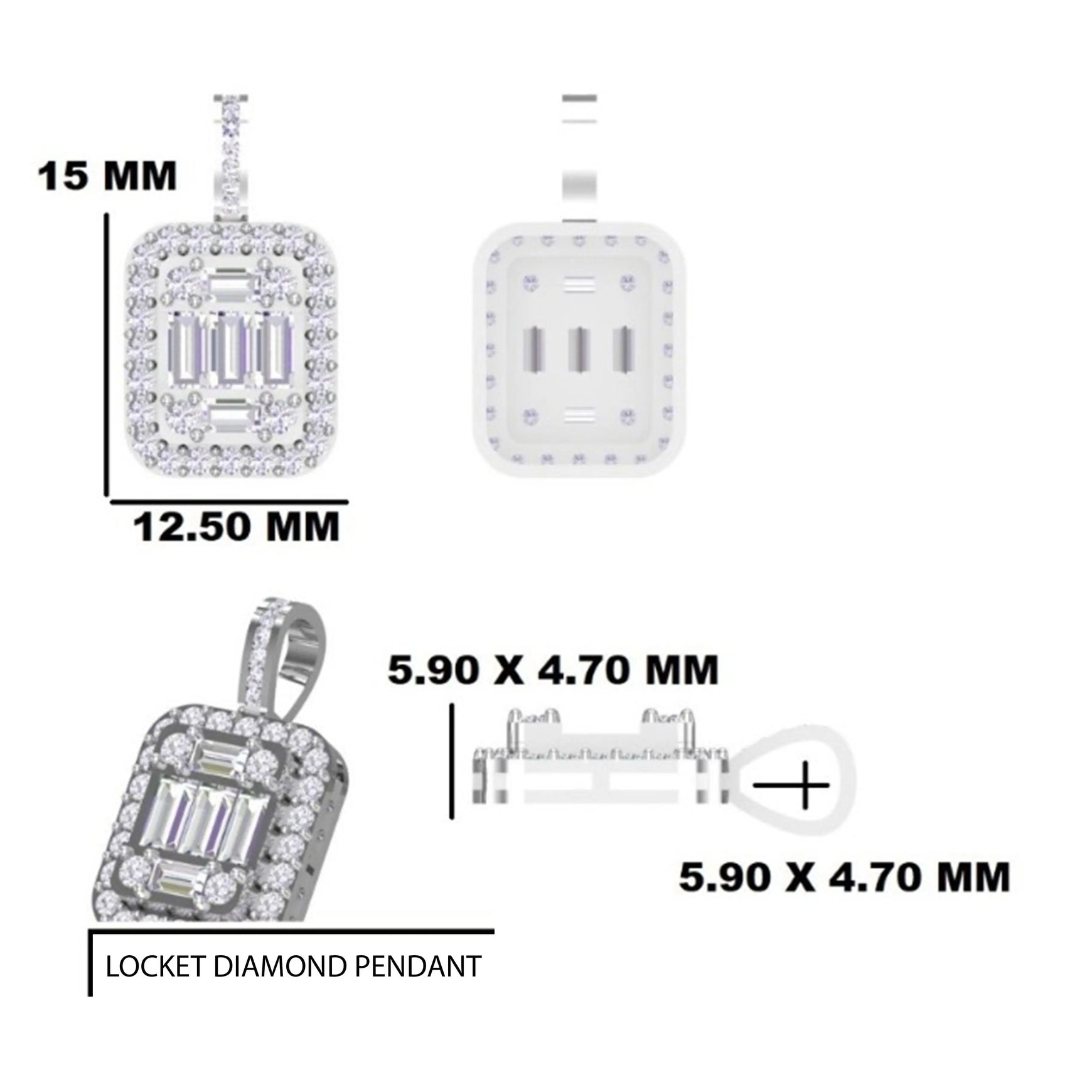 Luxurious 925 Sterling Silver Pendants Necklace with Baguette Diamond Halo Design Small Pendant Necklaces