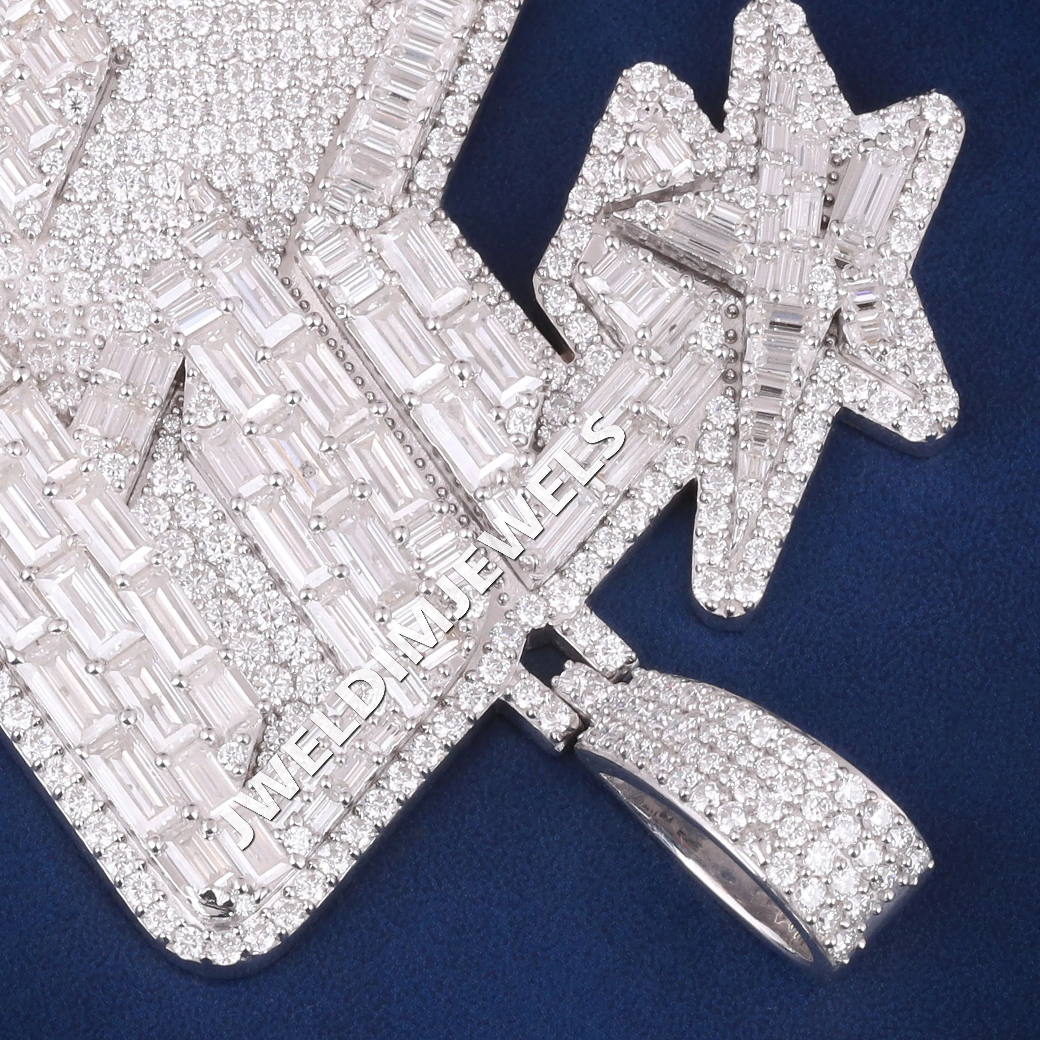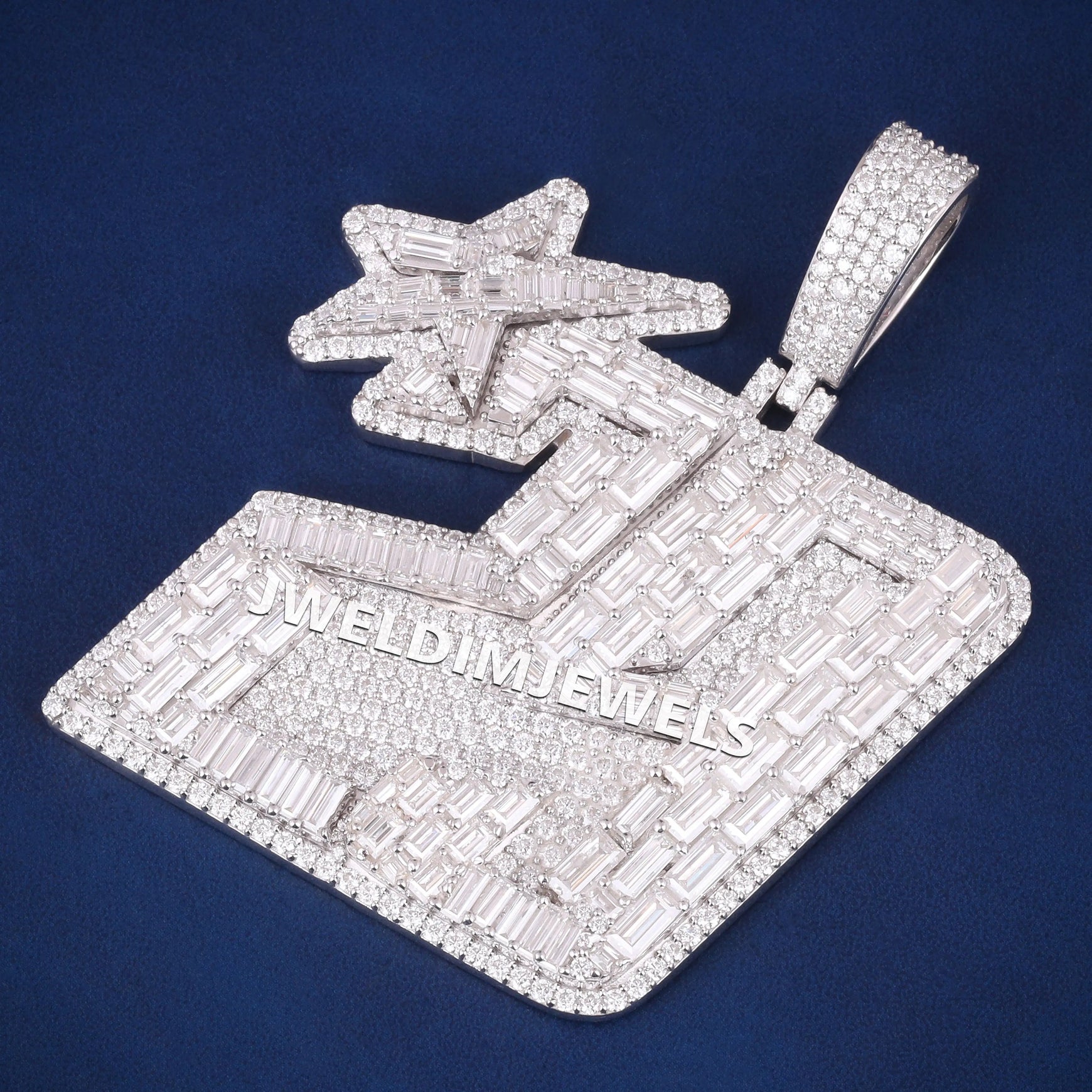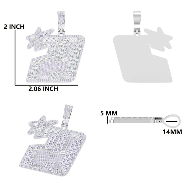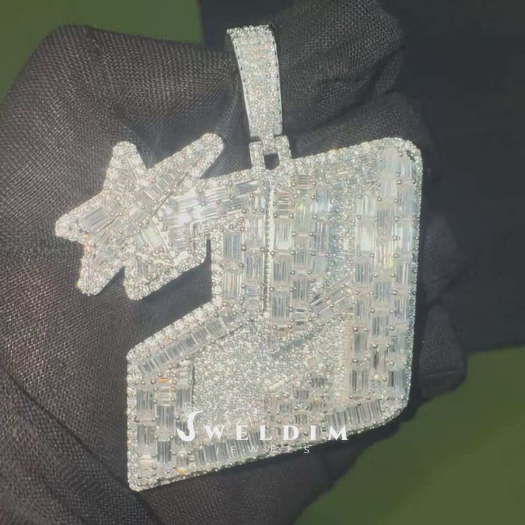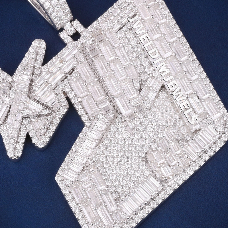 Luxury Big Custom Baguette & Round Cut Diamond 29 with Star Pendant Mens Iced Out Silver Hip Hop Pendants