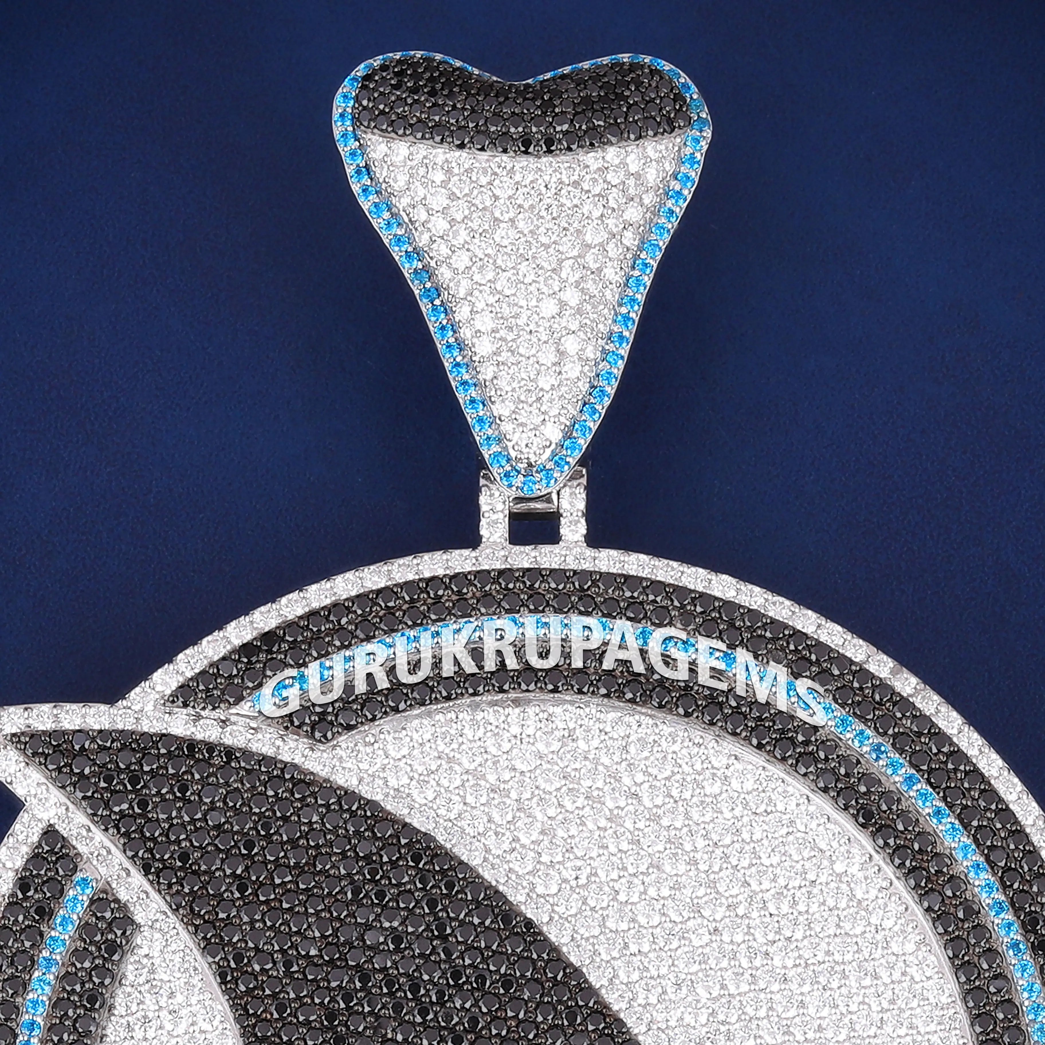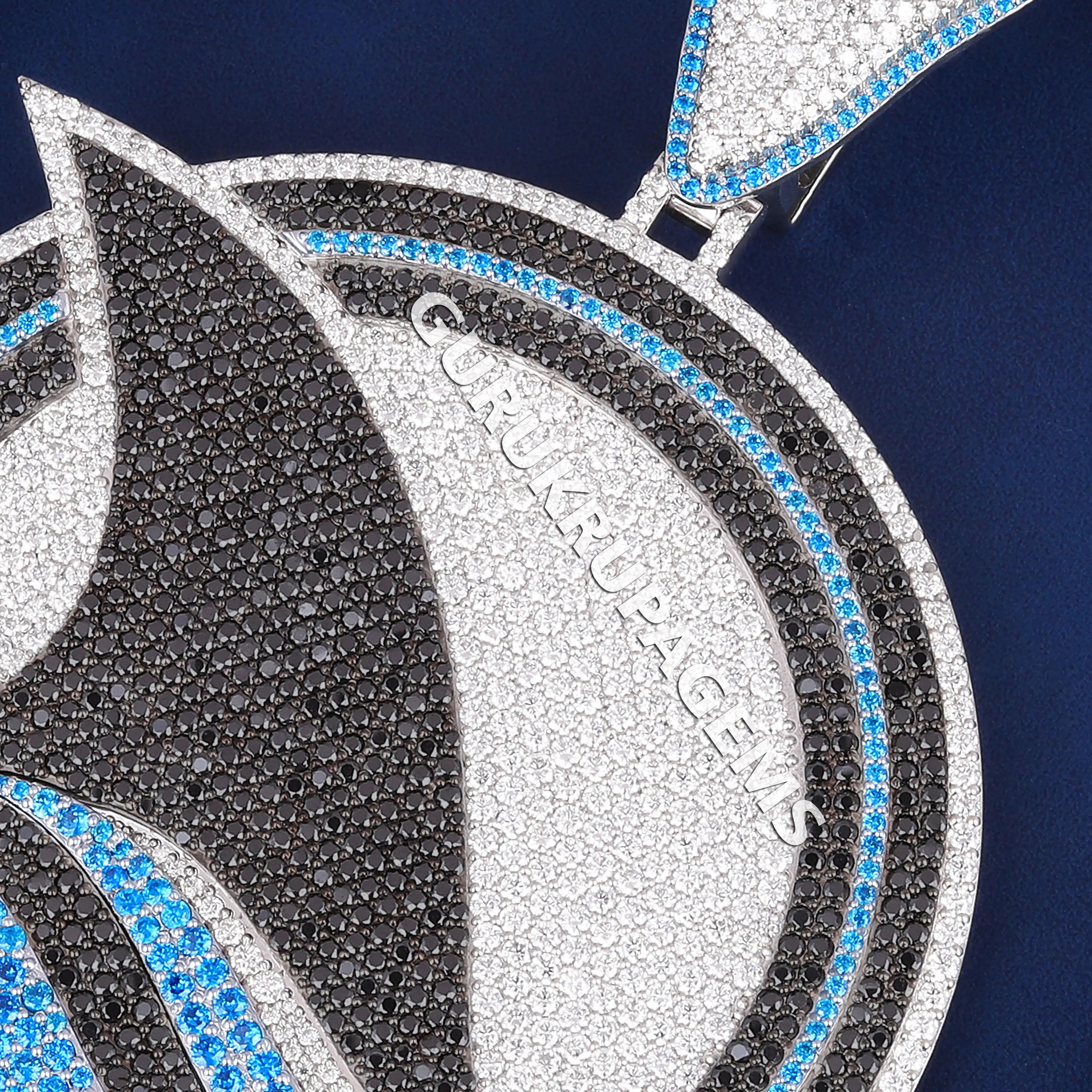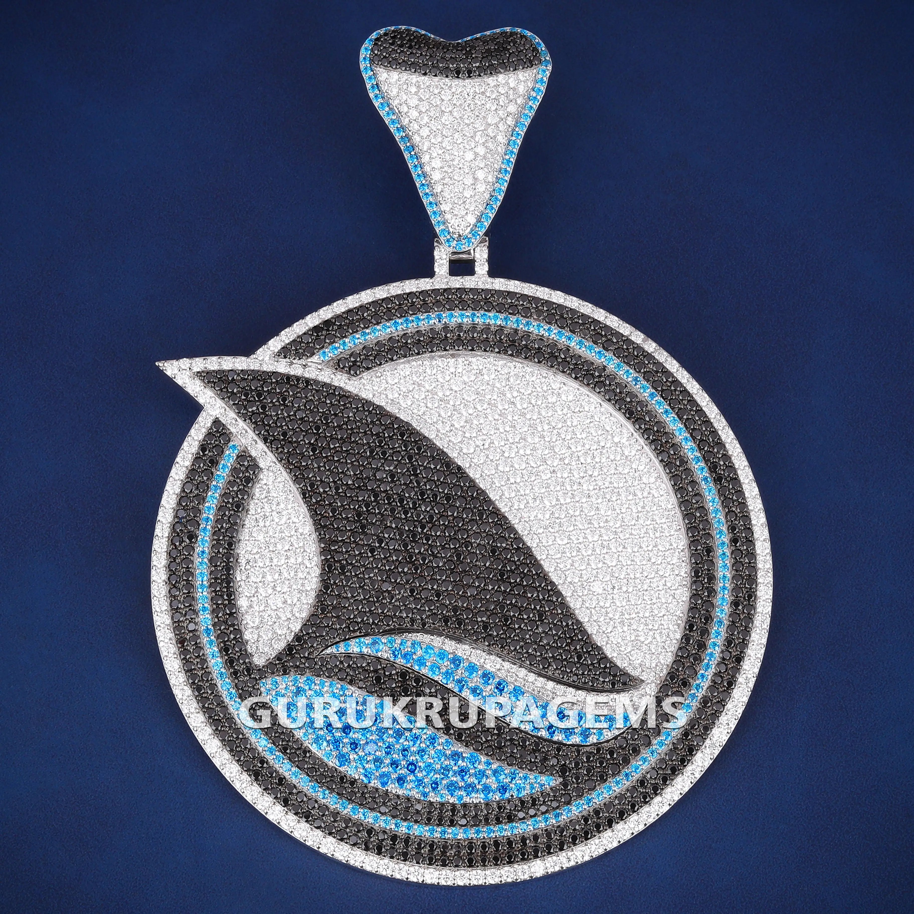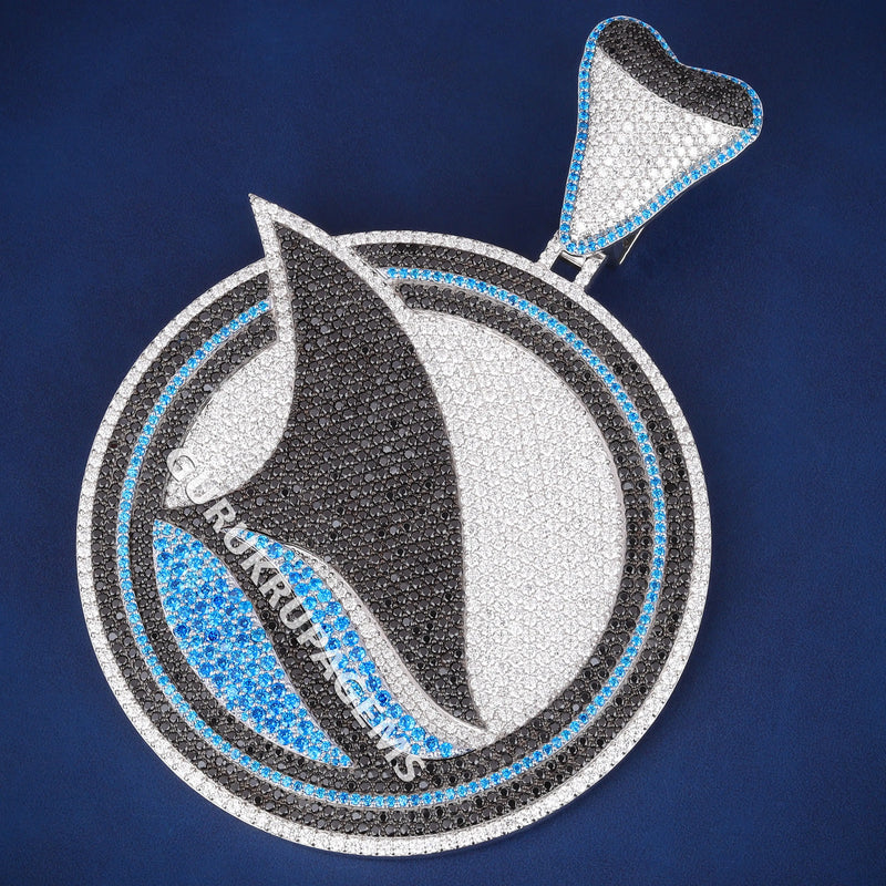 Luxury Custom Iced Out Diamond Shark Fish Logo Pendant with Black and Blue Colorful Diamond Wave Design Pendant Necklace for Men