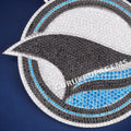 Custom logo jewelry featuring shark fish logo pendant with black accents