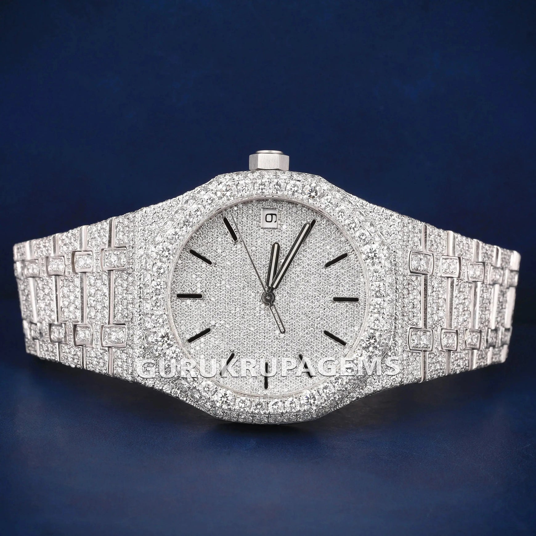 Luxury Silver Diamond Iced Out White Watches for Men and Women with Fully Sparkle Shine