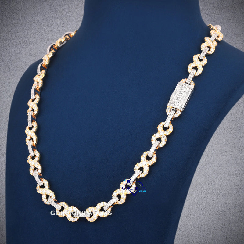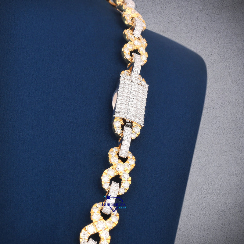 Luxury Two Tone 24 Inch 12mm Infinity Link Necklace with VVS Clarity Diamond Lock