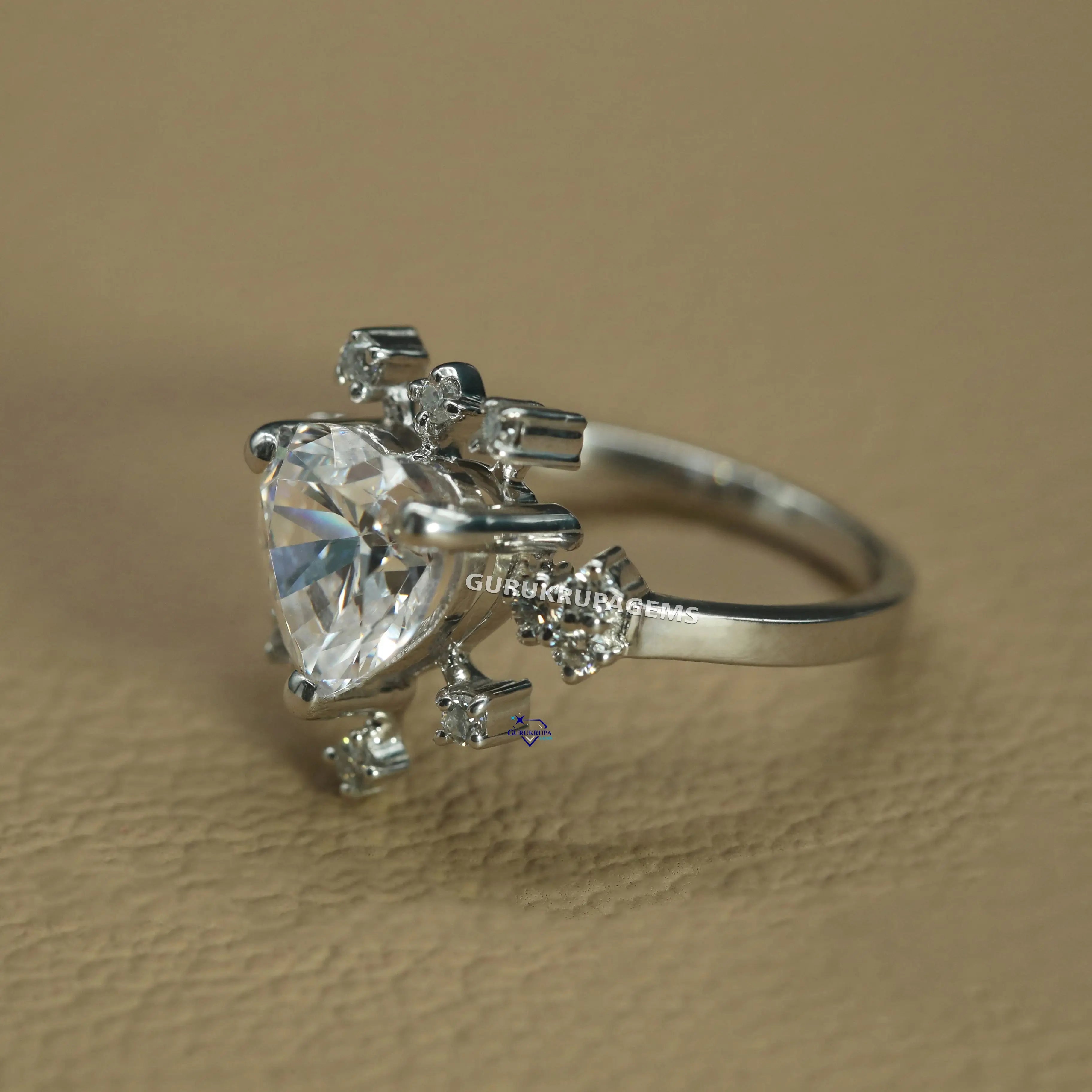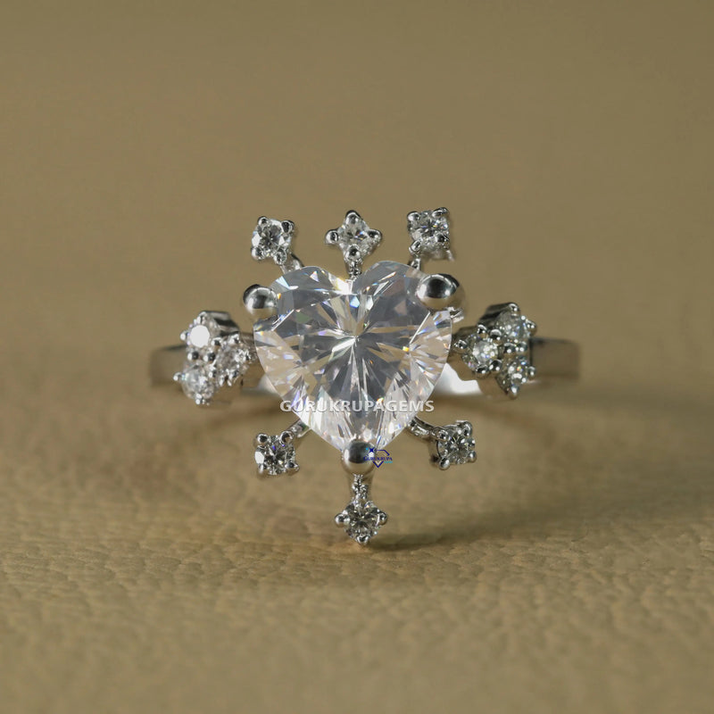 Romantic Heart and Round Cut Diamond Ring Crafted in 14KT Gold