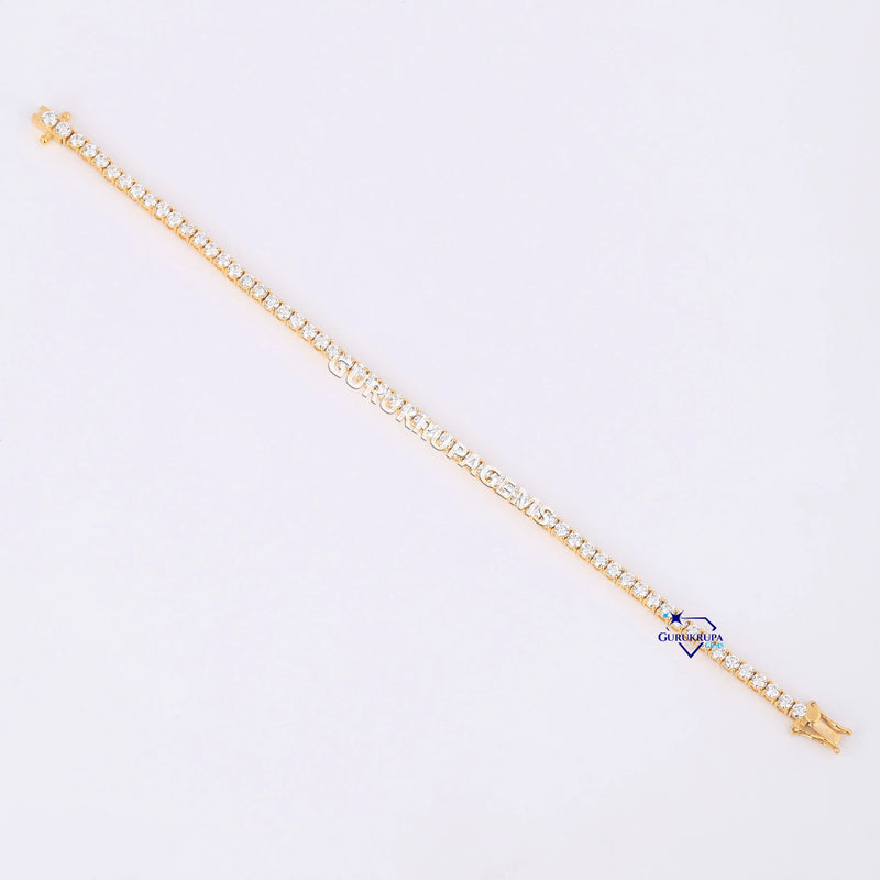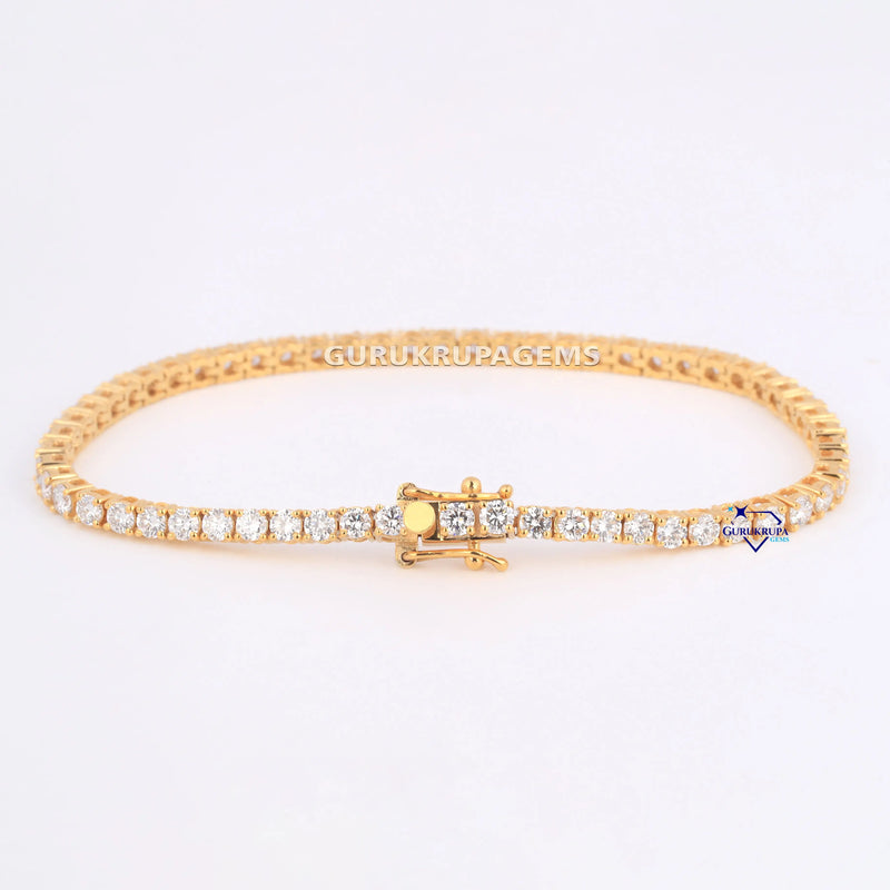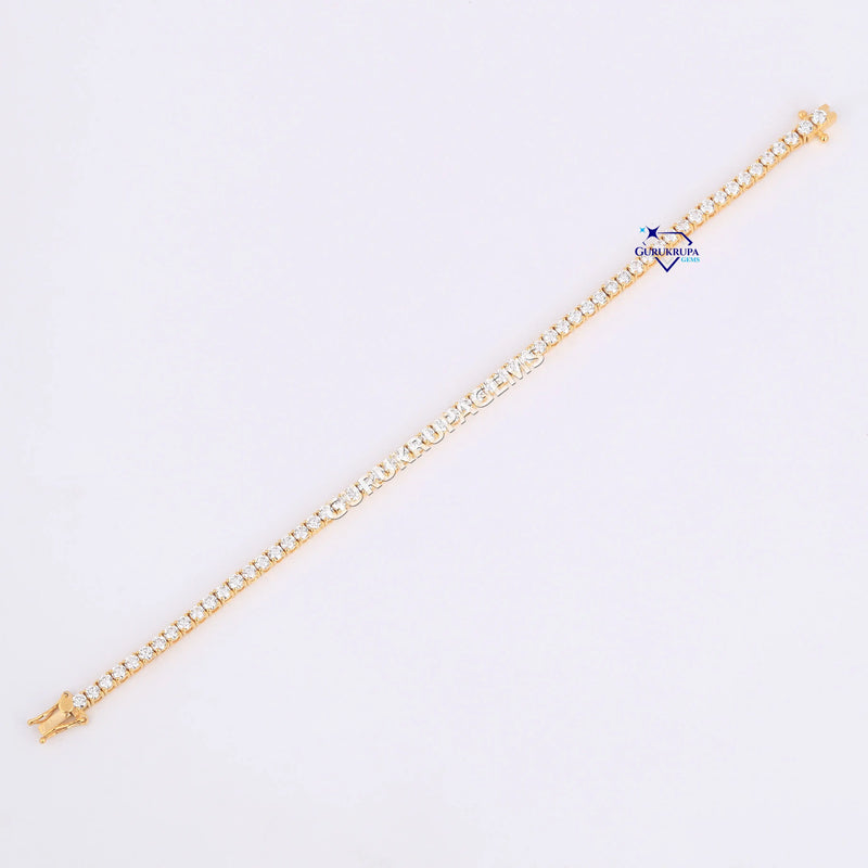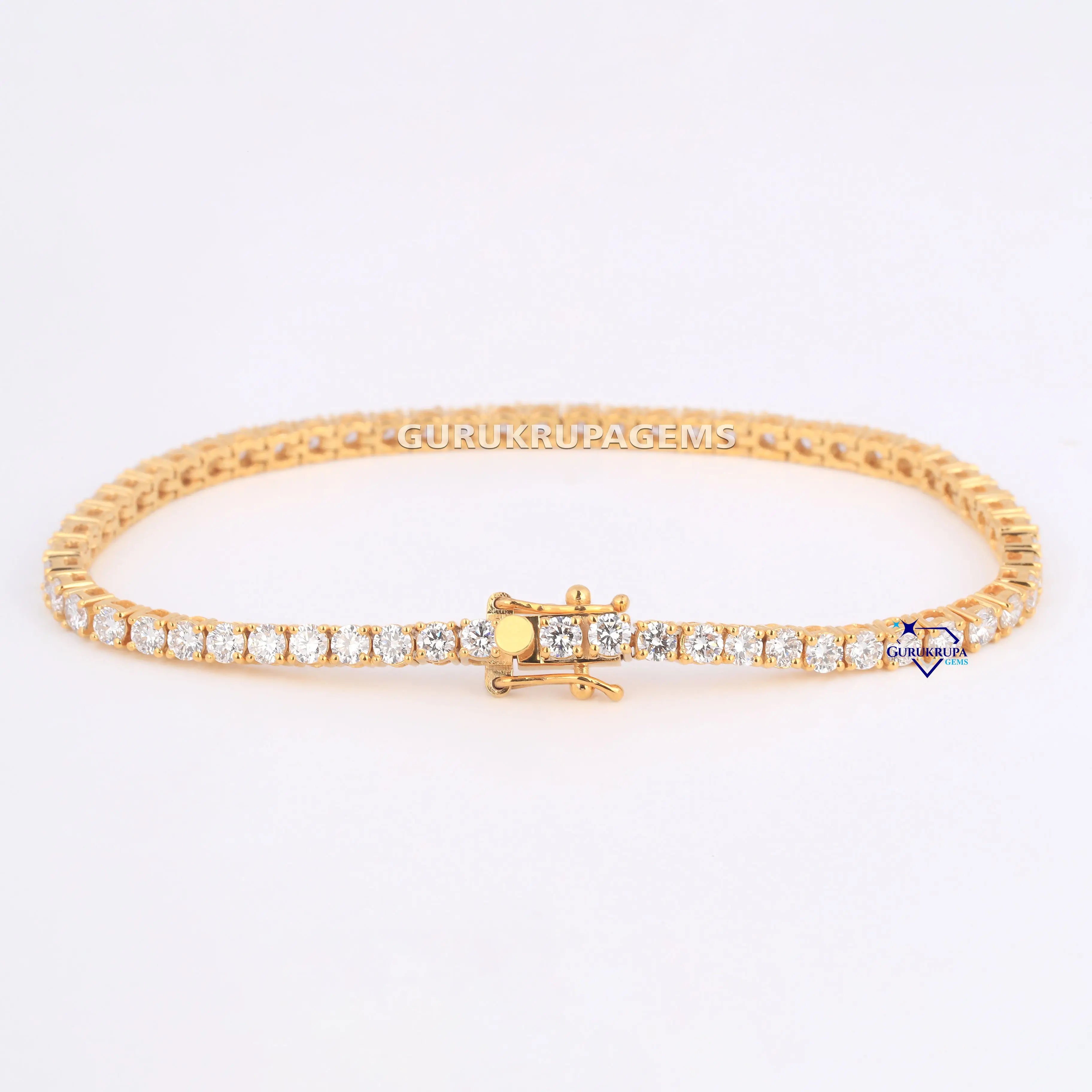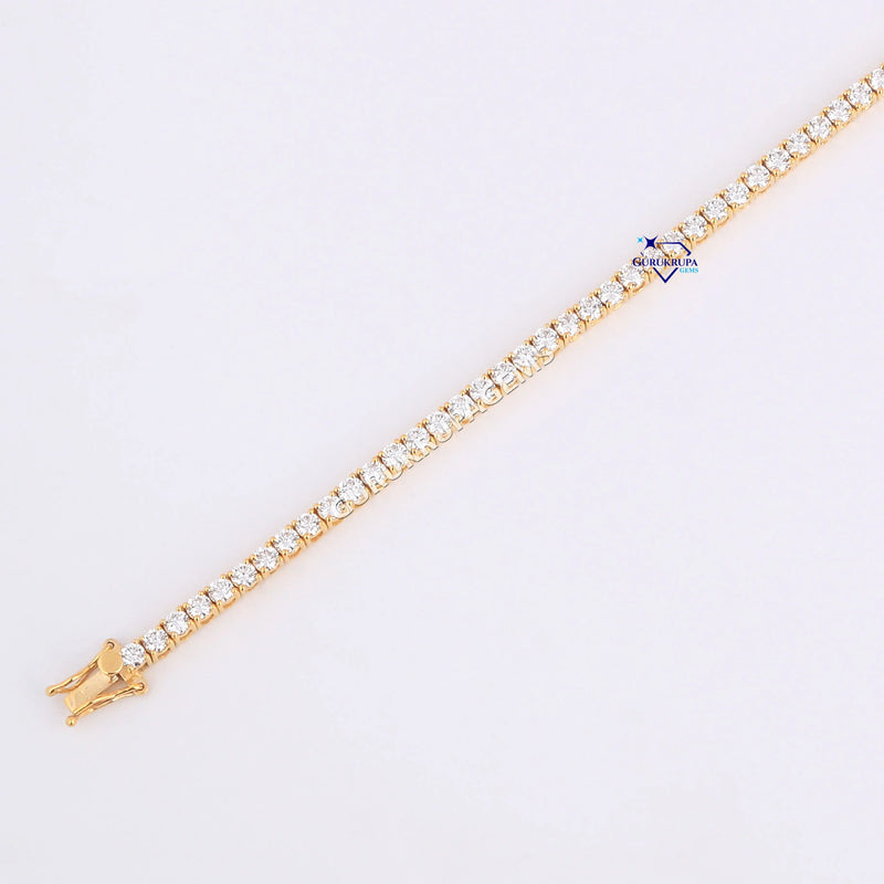 Minimal designer tennis bracelet for women 14 kt yellow gold lab grown diamonds