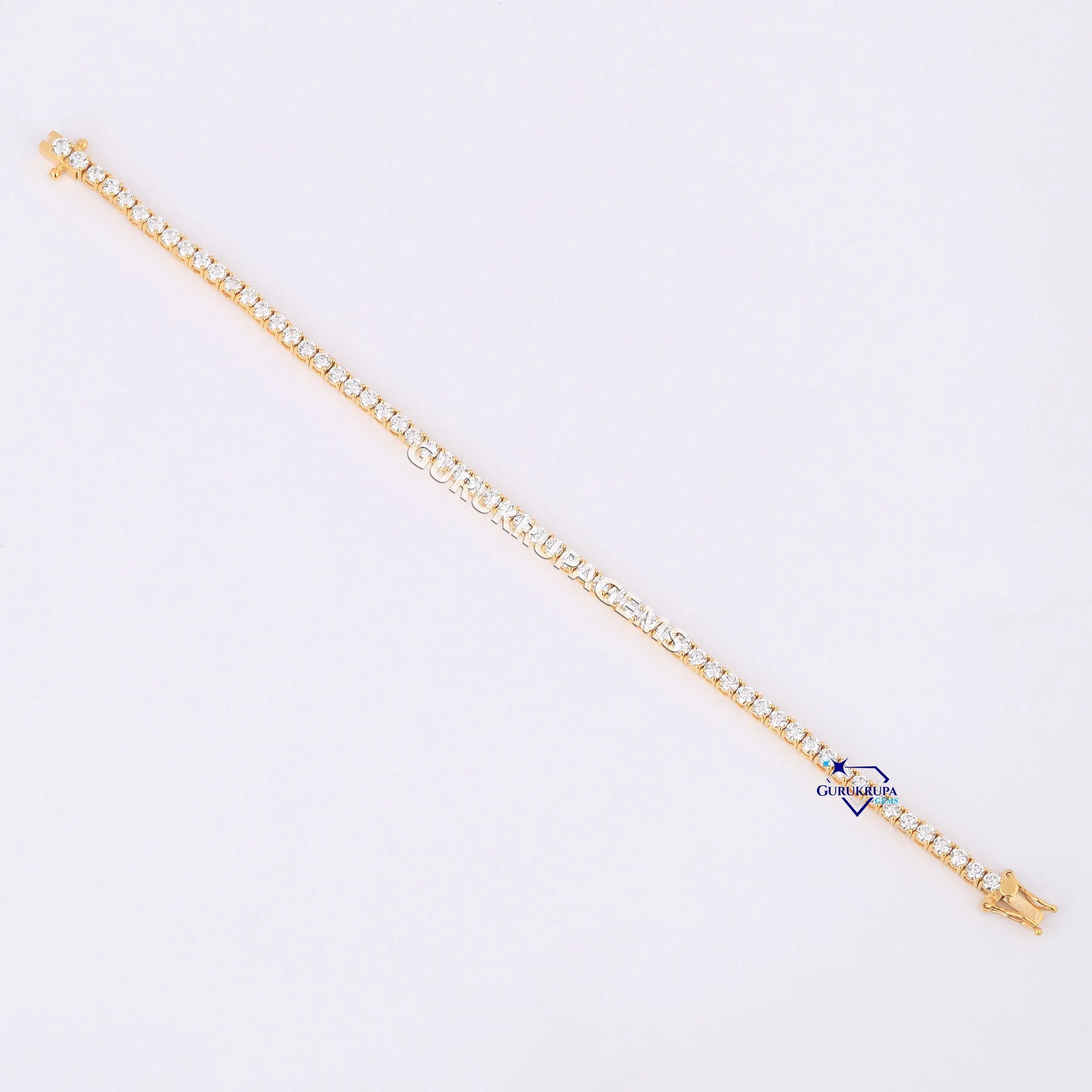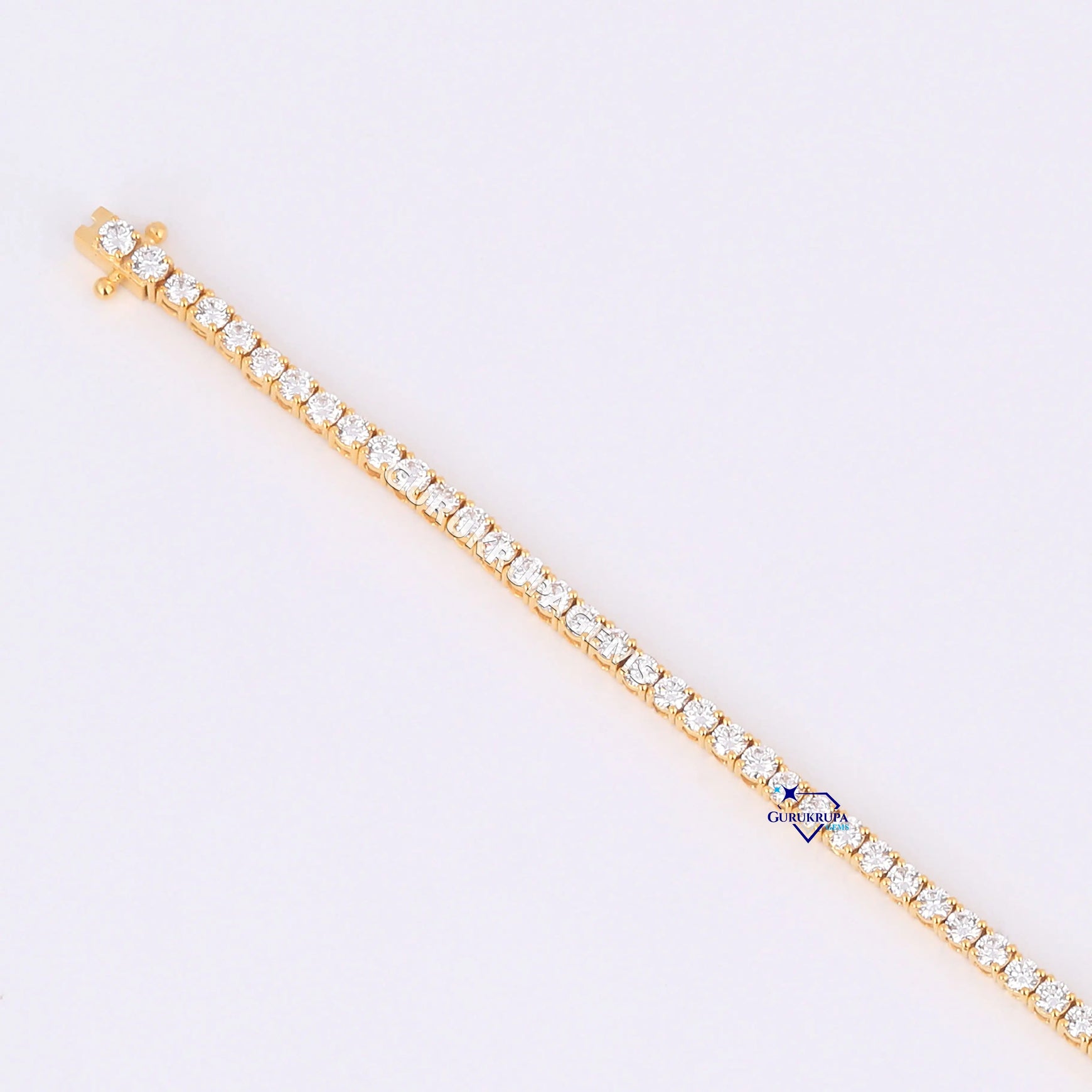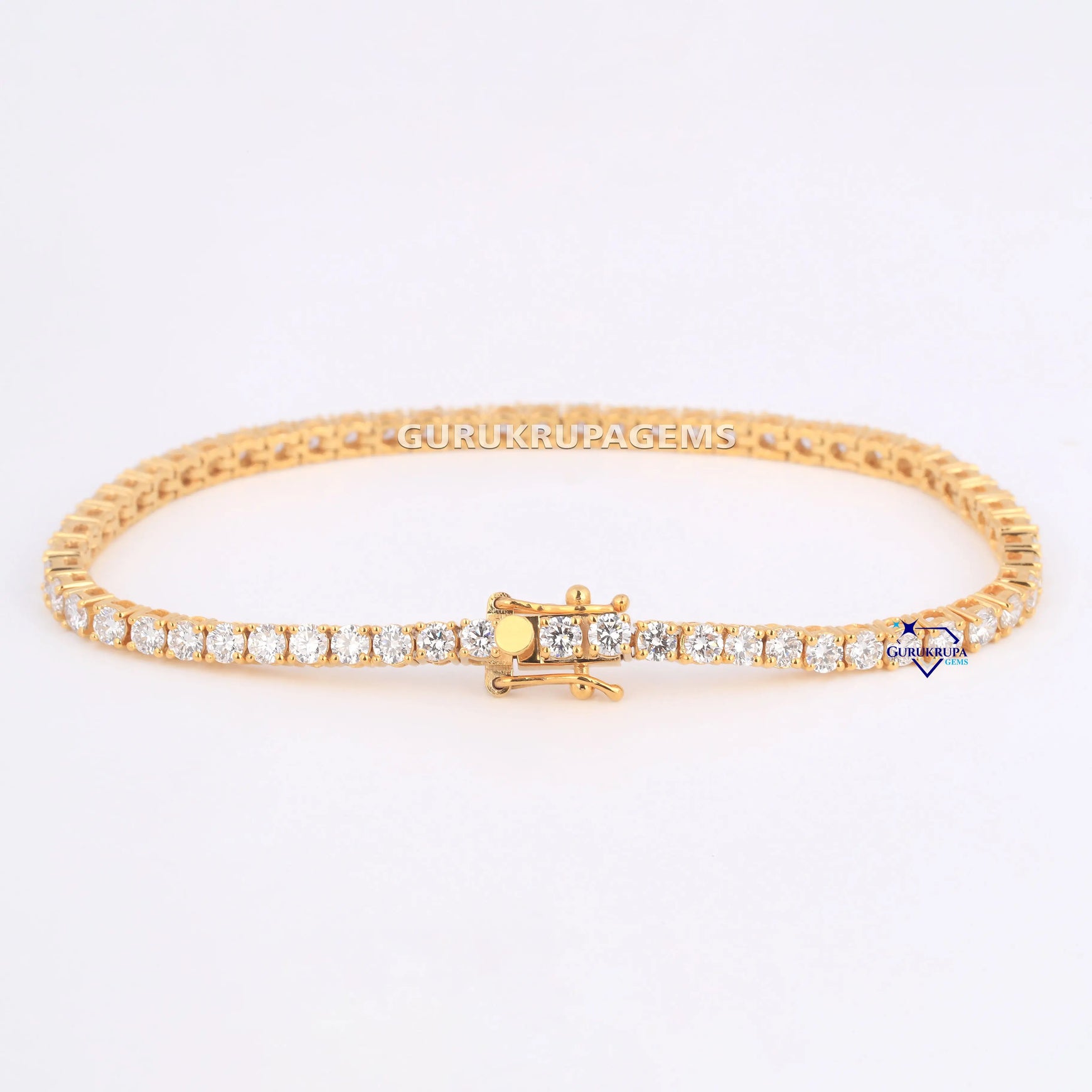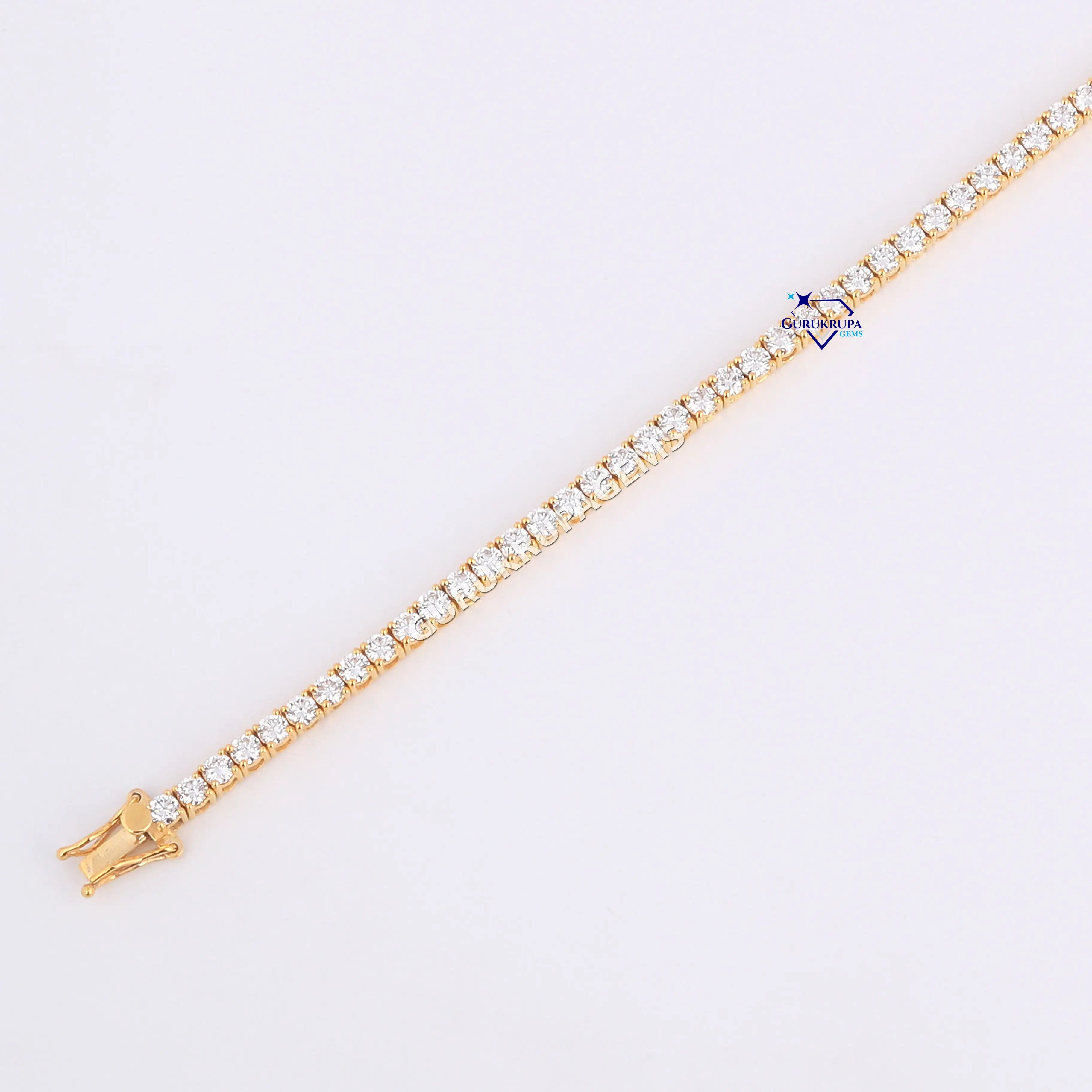 Minimal designer tennis bracelet for women 14 kt yellow gold lab grown diamonds Gurukrupa-Gems