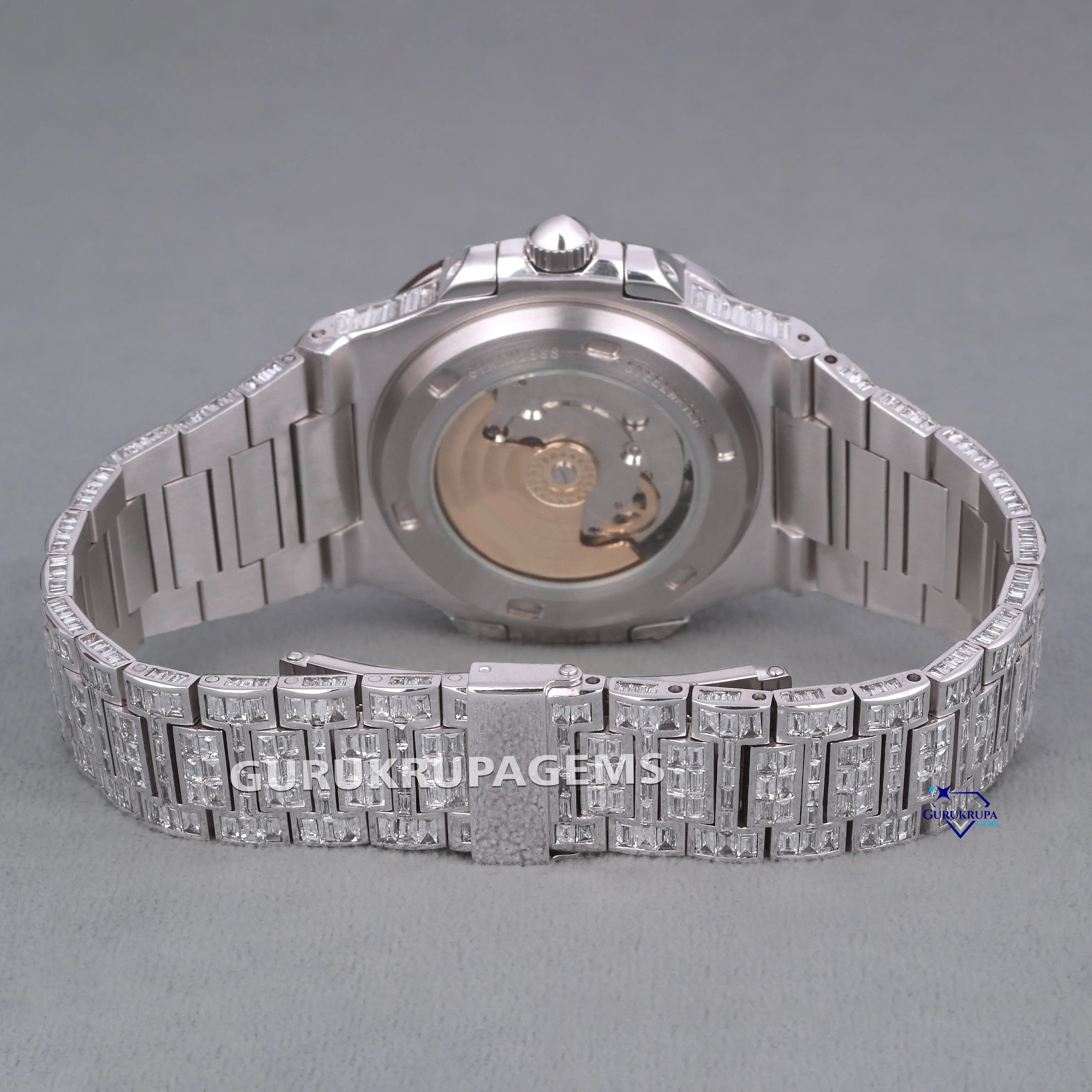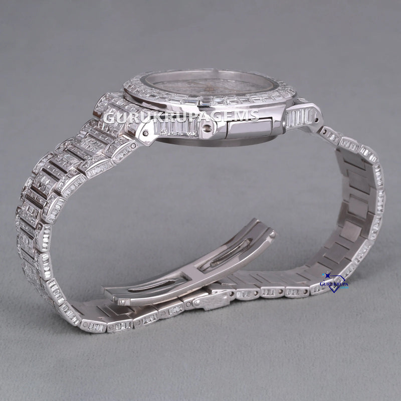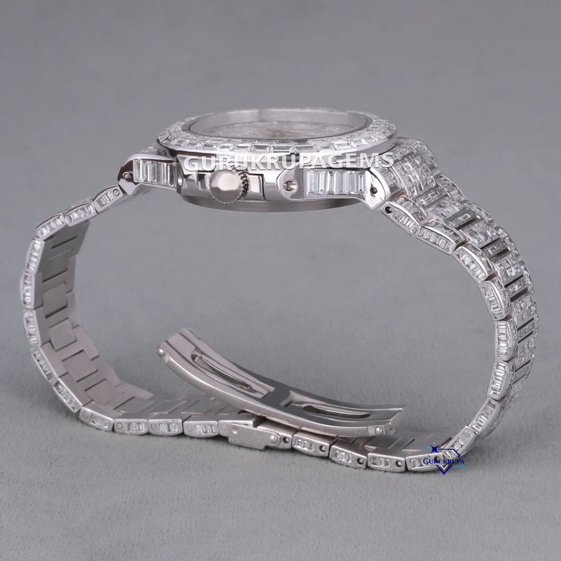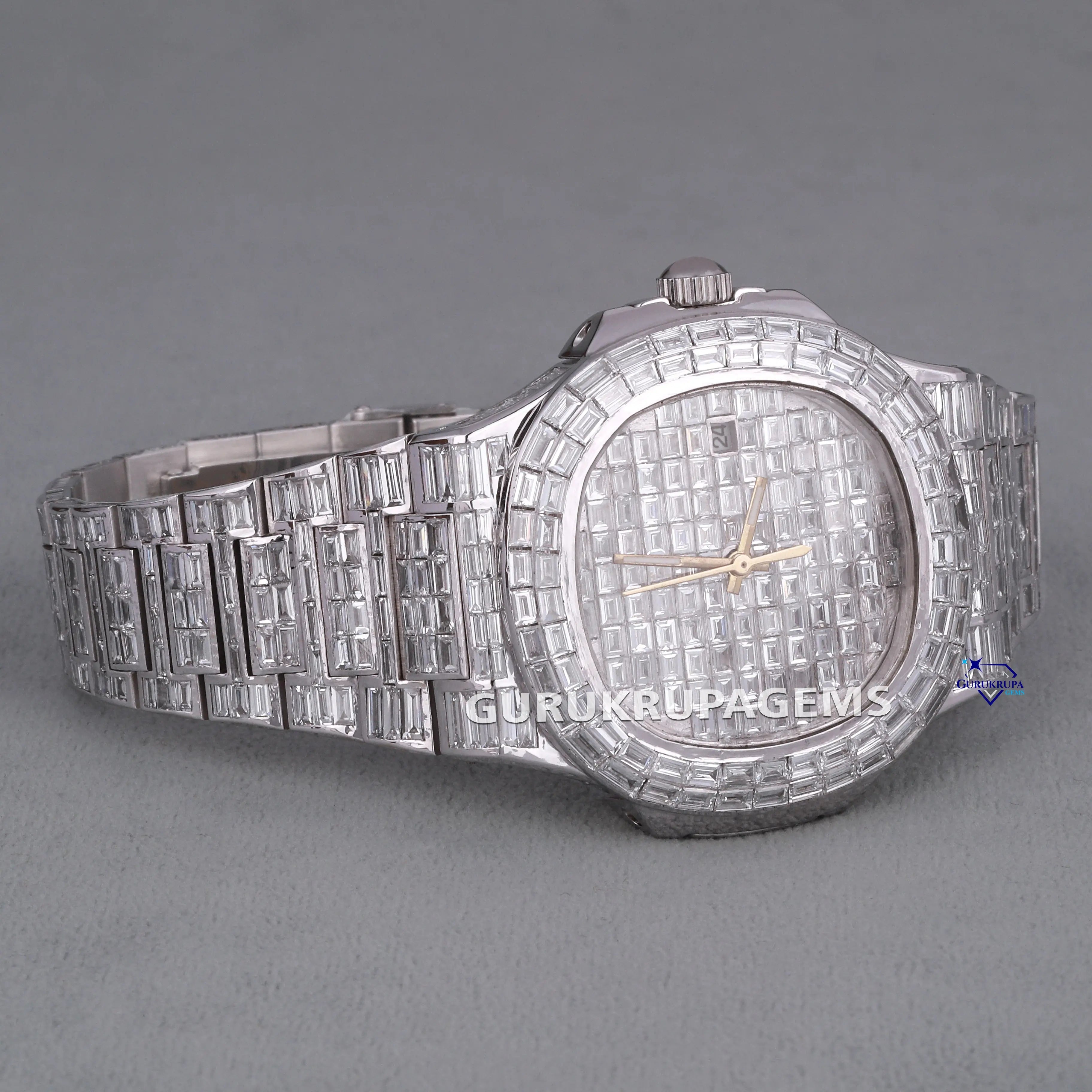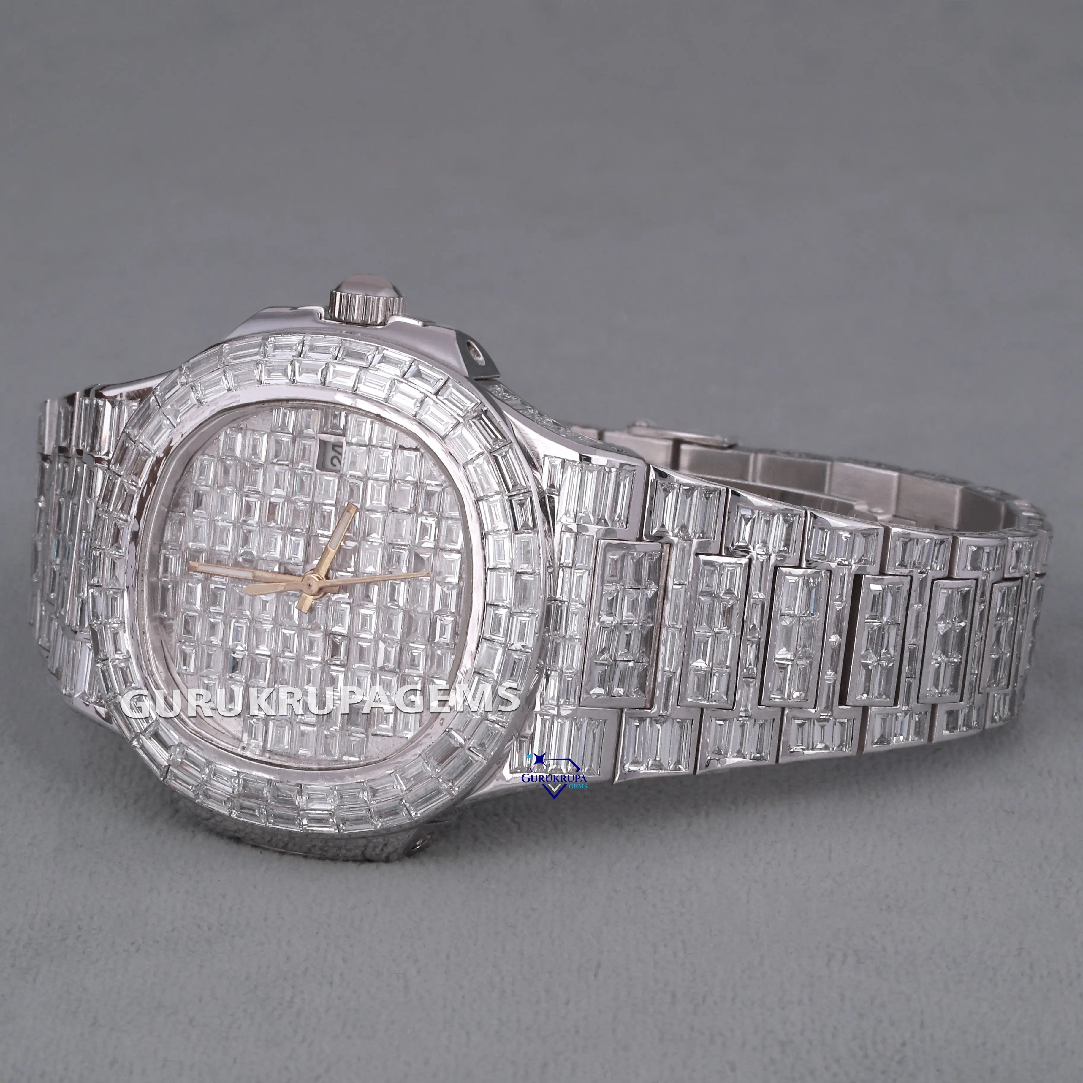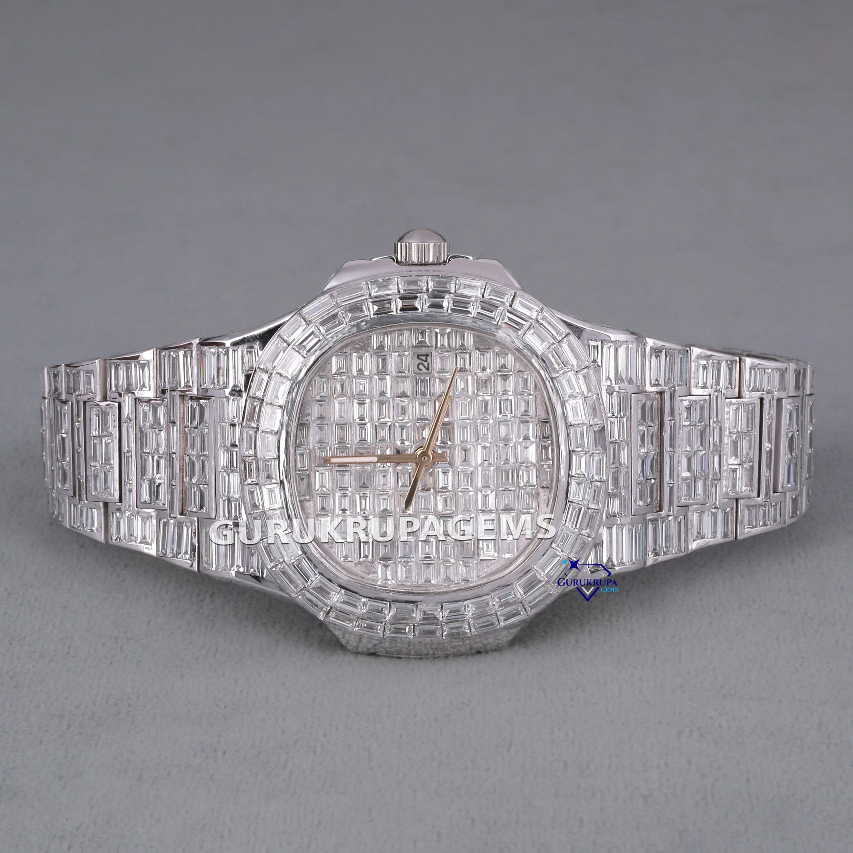 New launched fully baguette cut diamonds hip hop branded watch for unisex