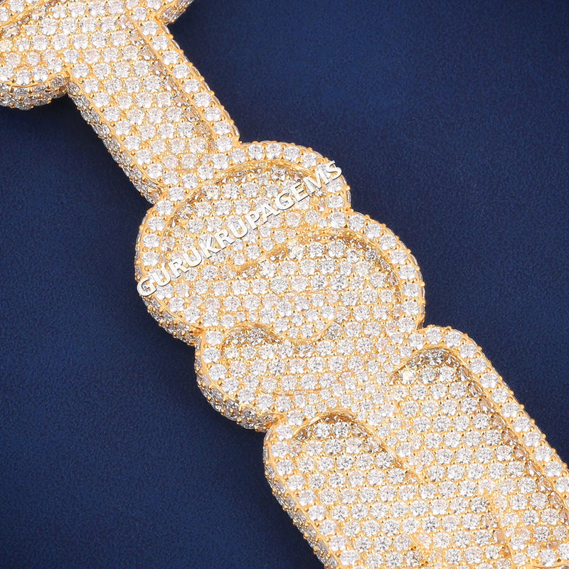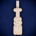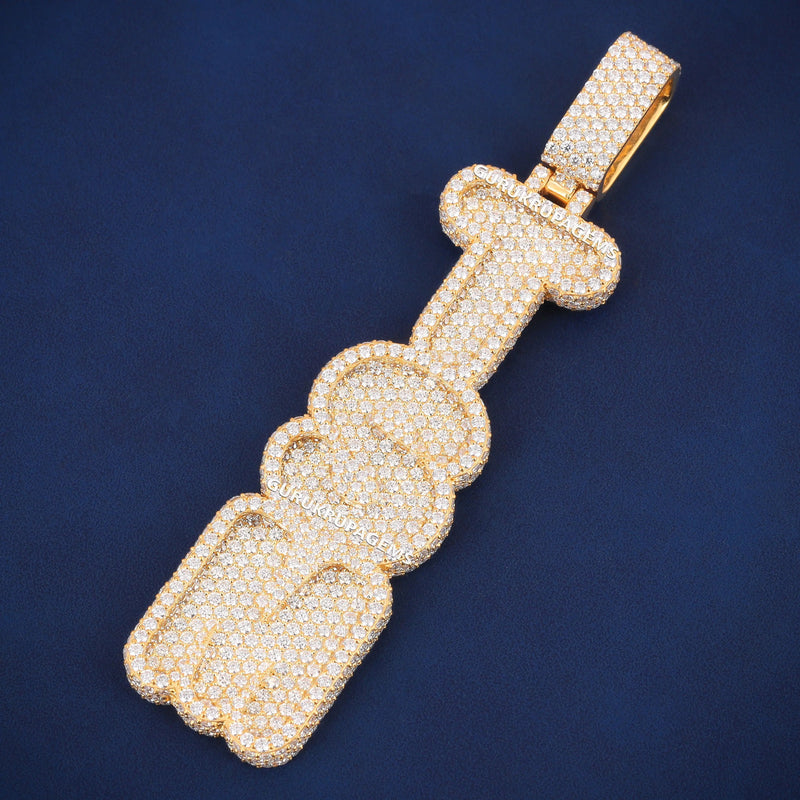 Personalized Custom 5mm Full Iced Out Yellow Gold Vertical Letter Pendant Necklace VVS Diamond