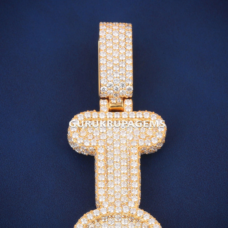 Custom VVS Diamond Jewelry with Yellow Gold Vertical Letter Pendant Necklace