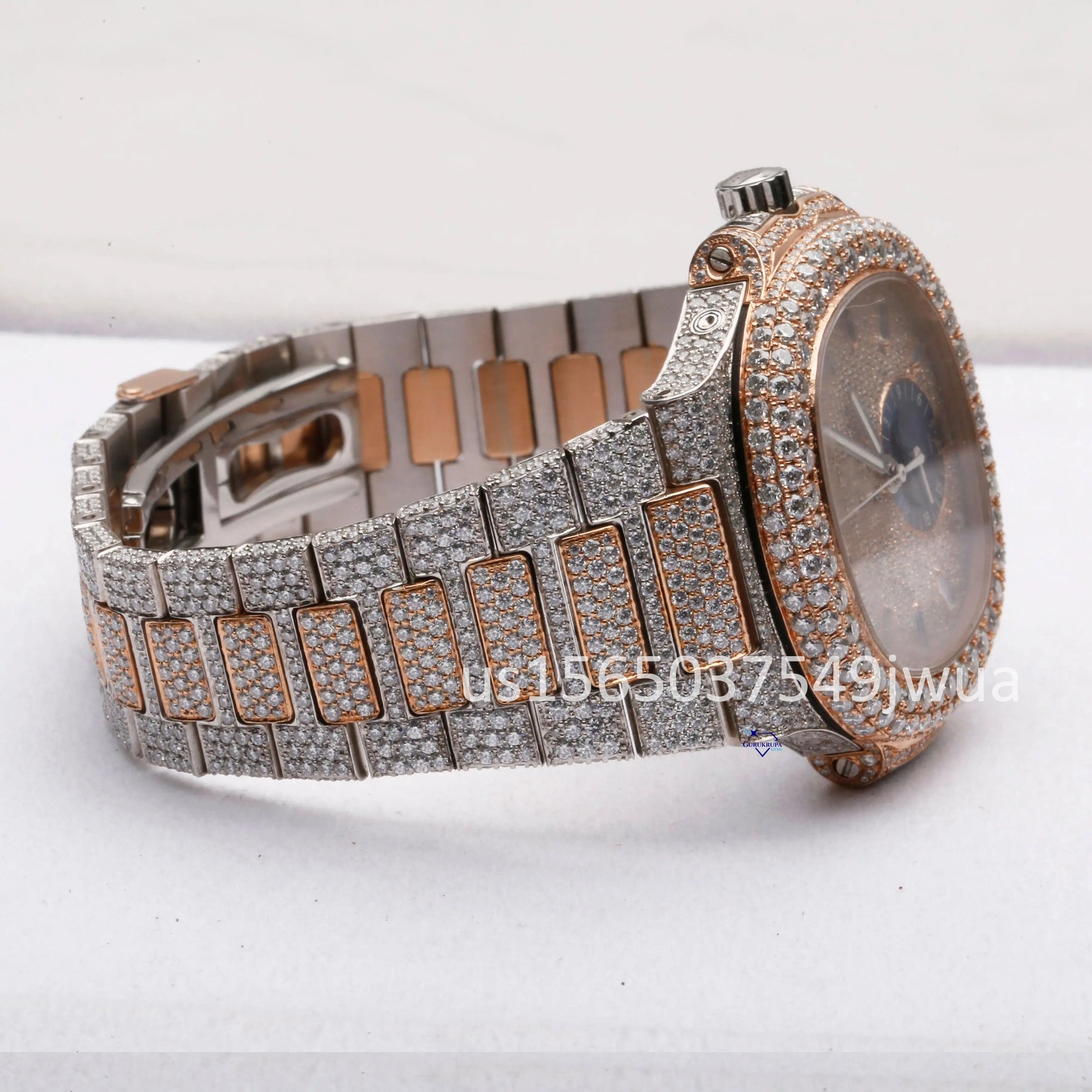 Radiant stainless steel moissanite diamond watch with enhanced vvs clarity diamonds for men