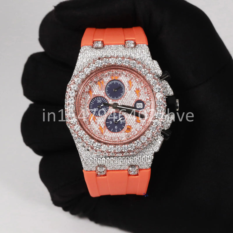 Revitalize your style with hip hop diamond watch with a sleek rubber belt