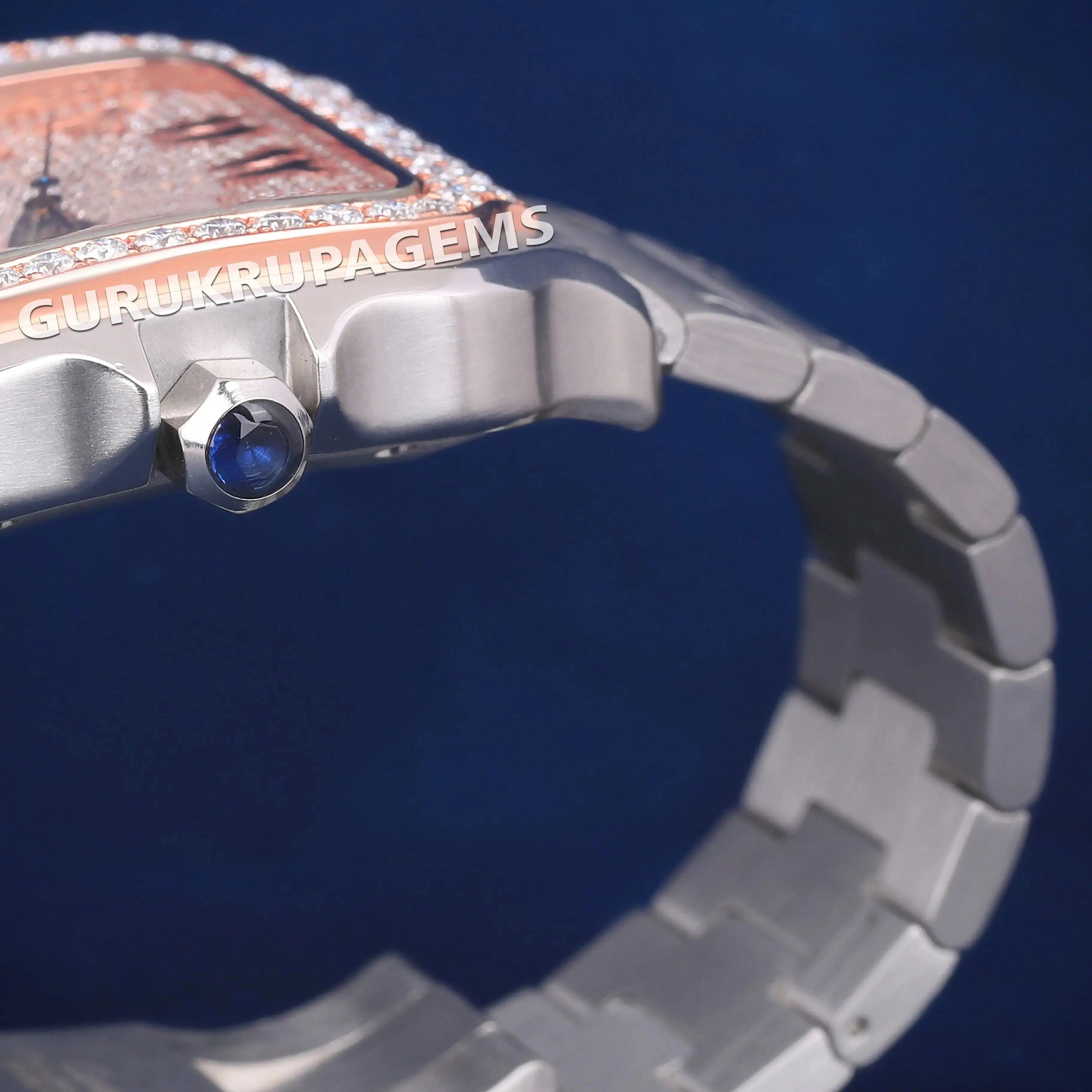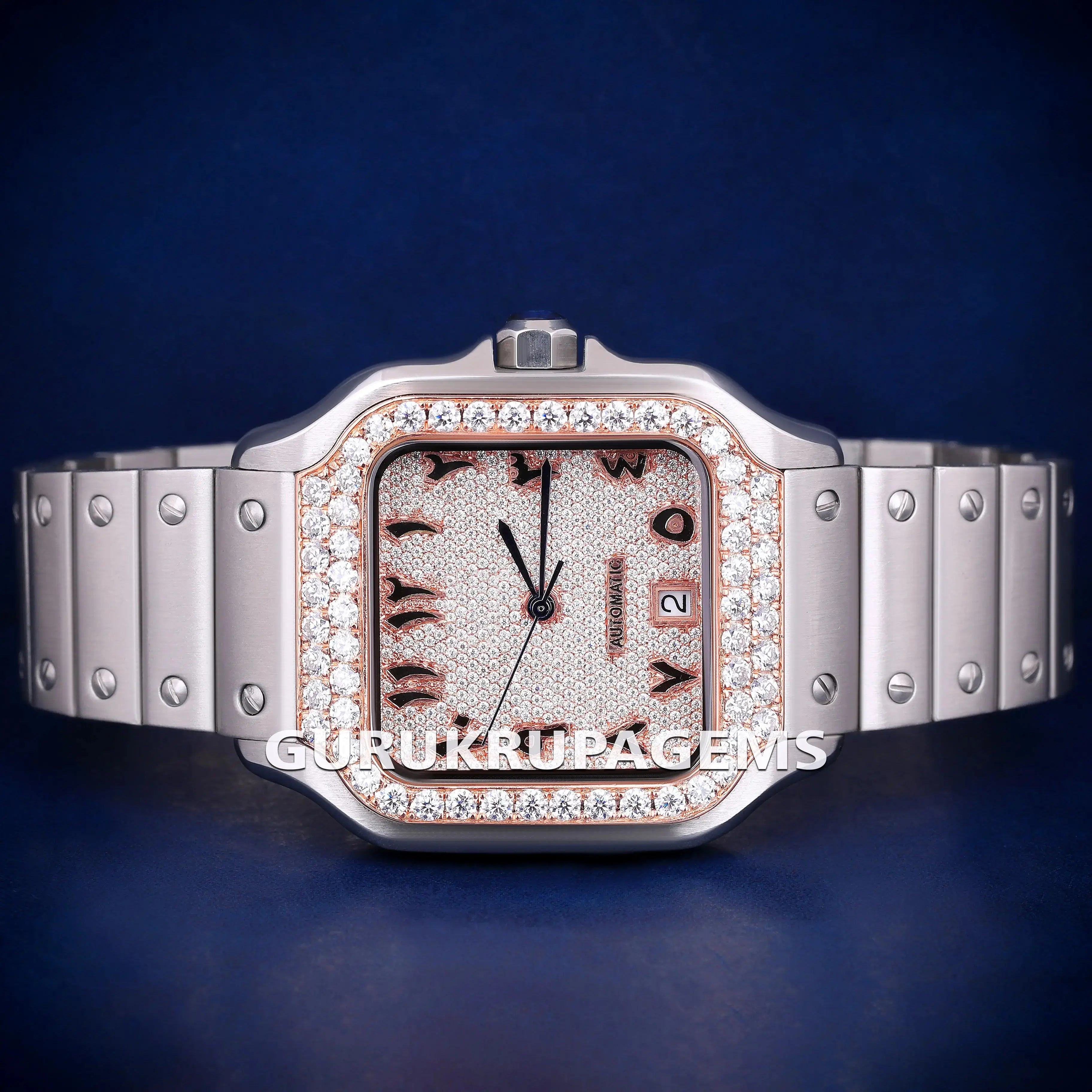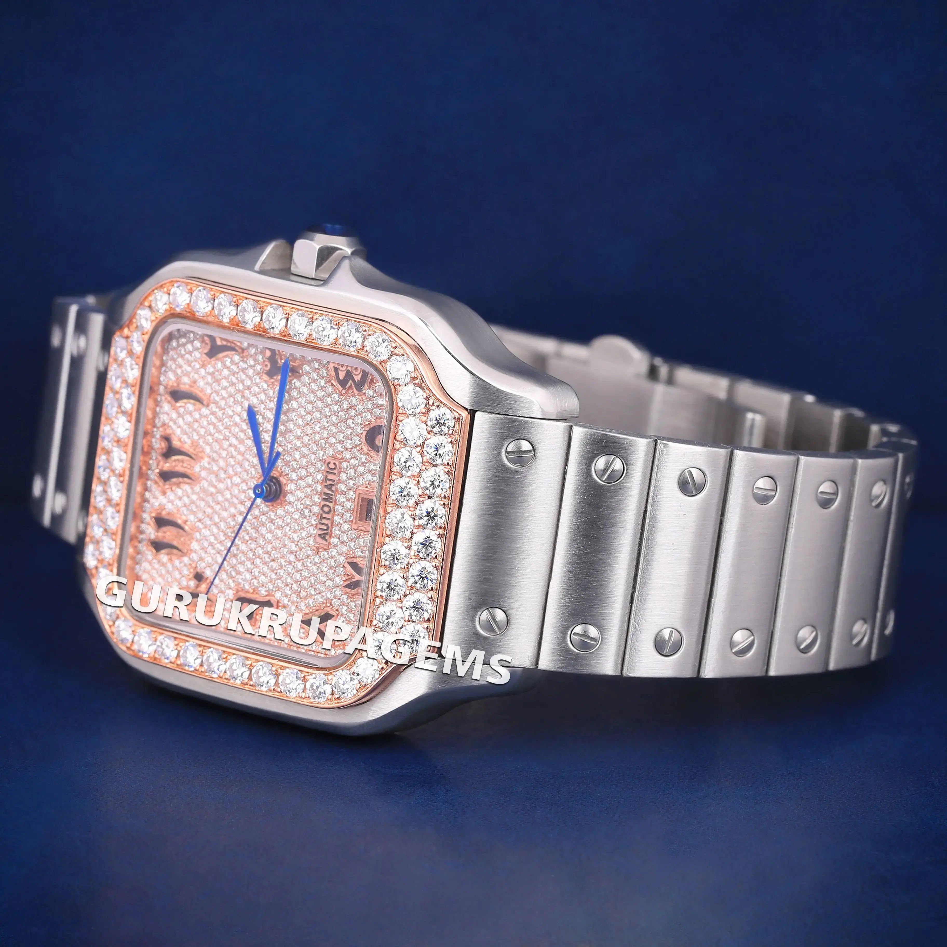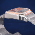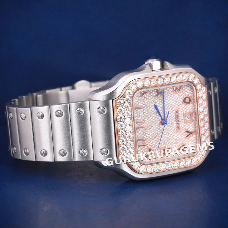 Rose Silver Moissanite Stainless Steel Iced Out Roman Numeral Dial Watch for Unisex