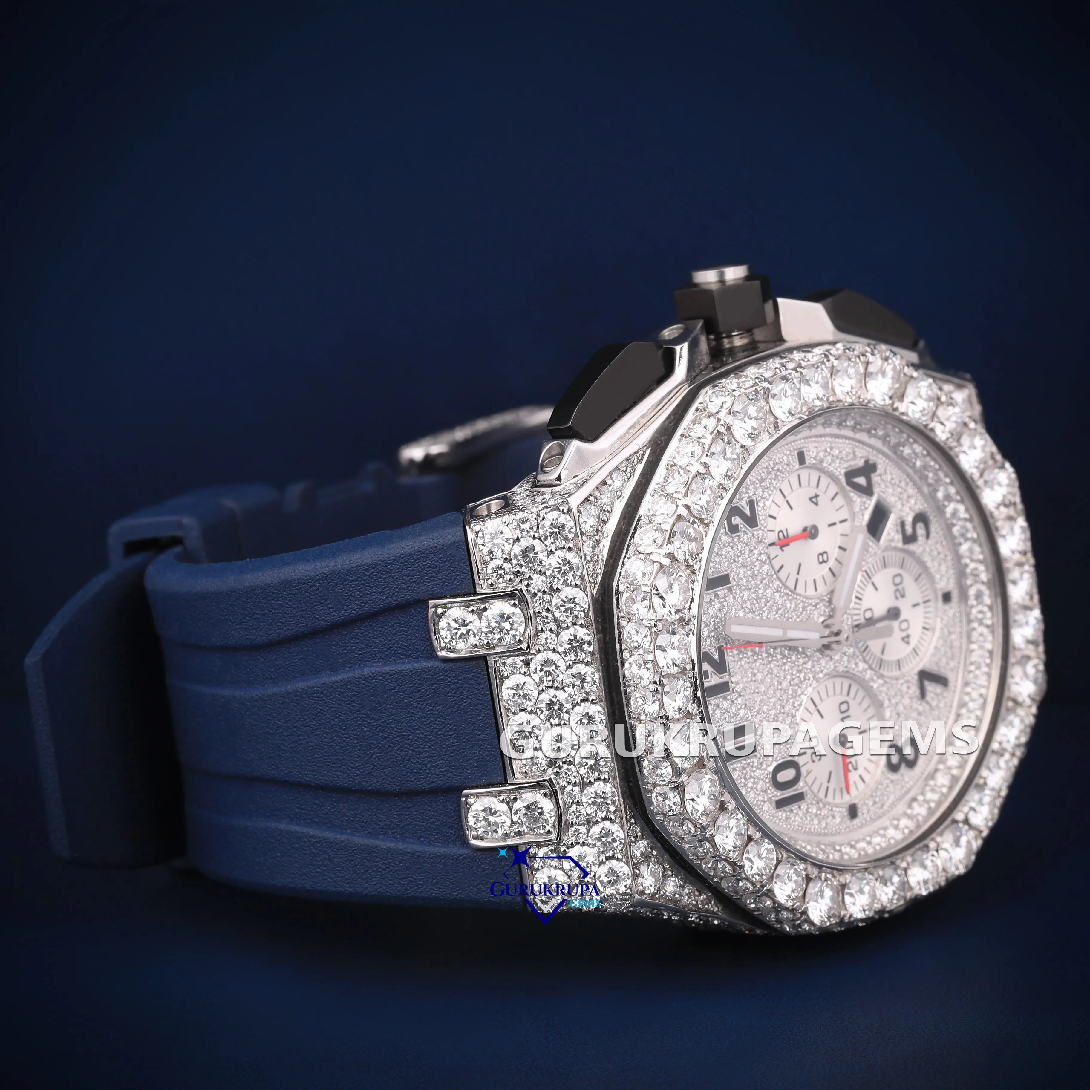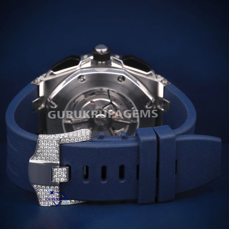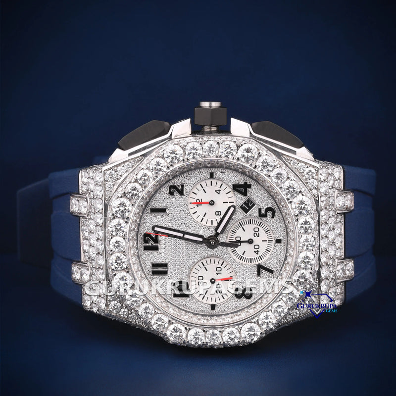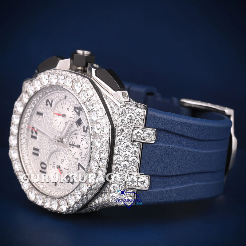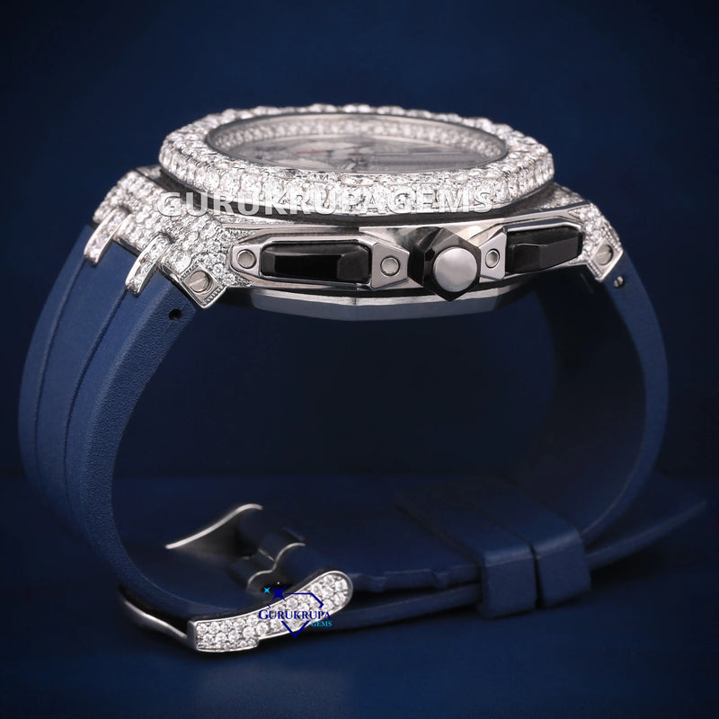 Rubber belt chronograph dial VVS pass tester diamond watch