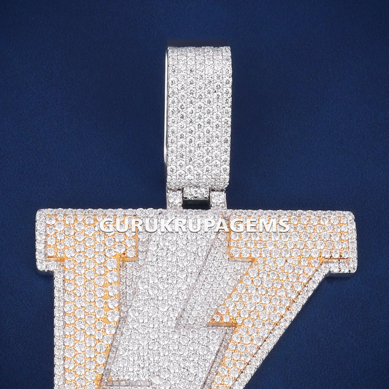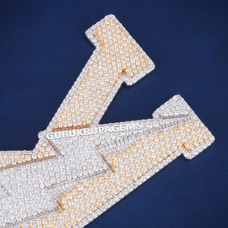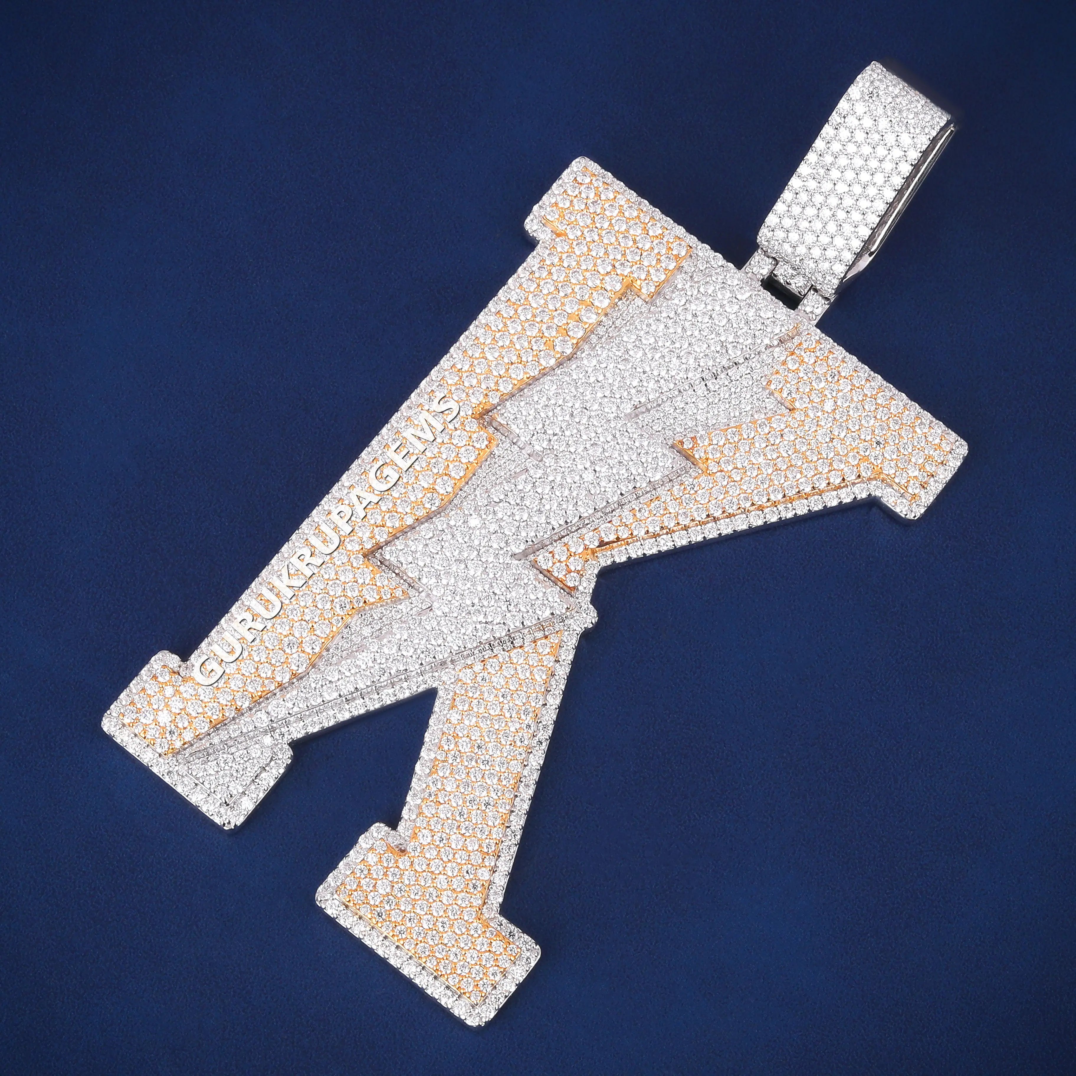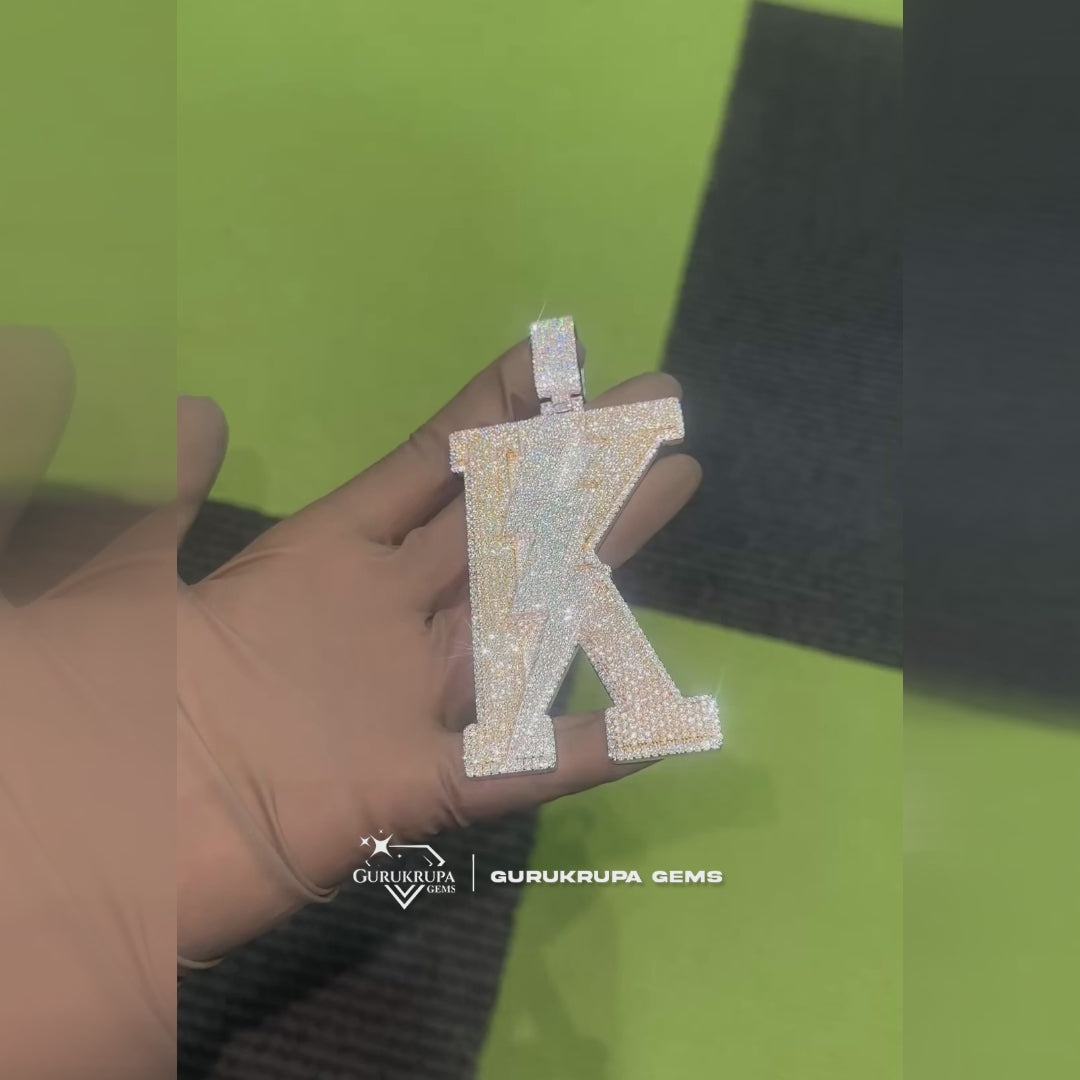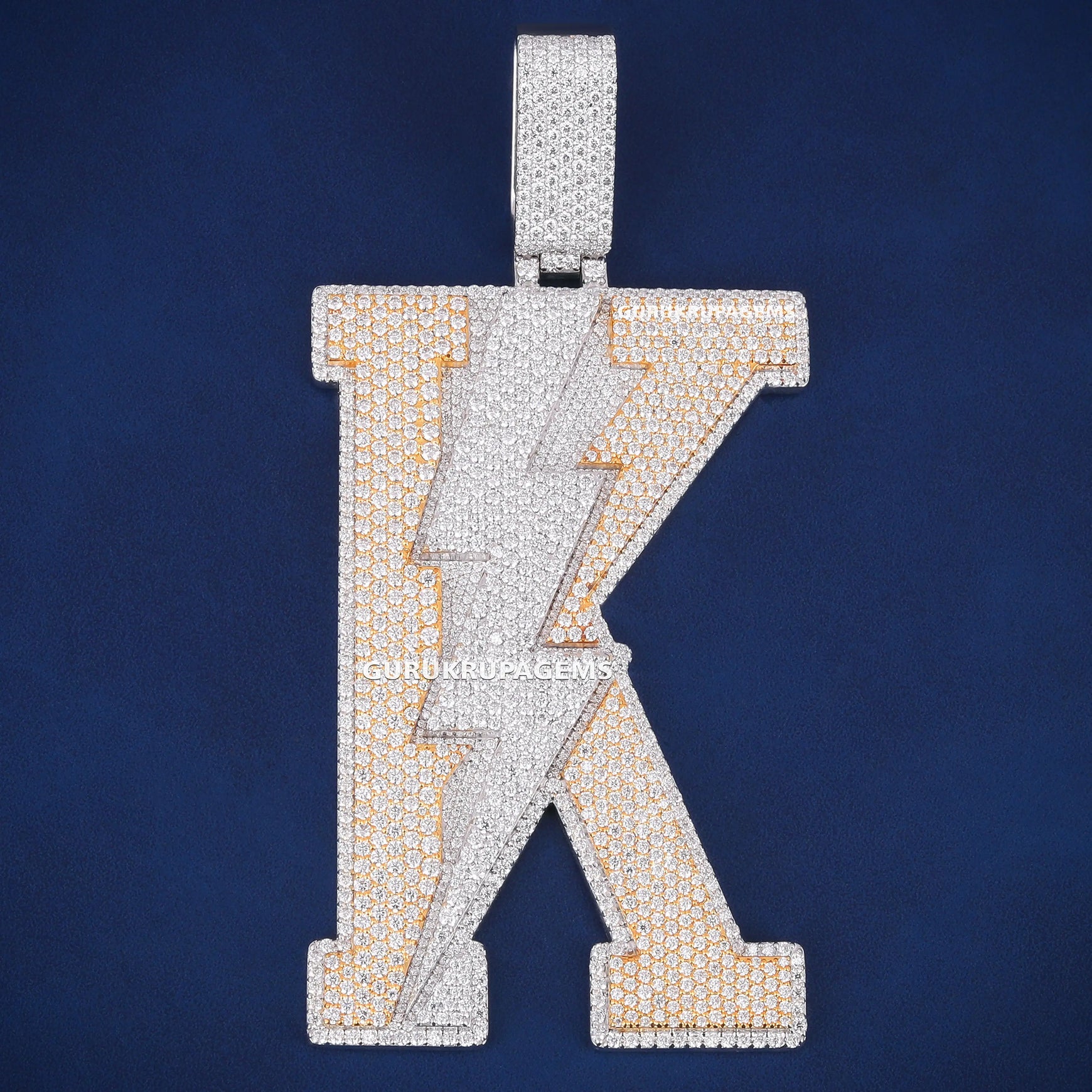 Silver Yellow Gold Two Tone Diamond Big K Initial letter Pendant with spark Design Custom Pendant Necklace for Mens