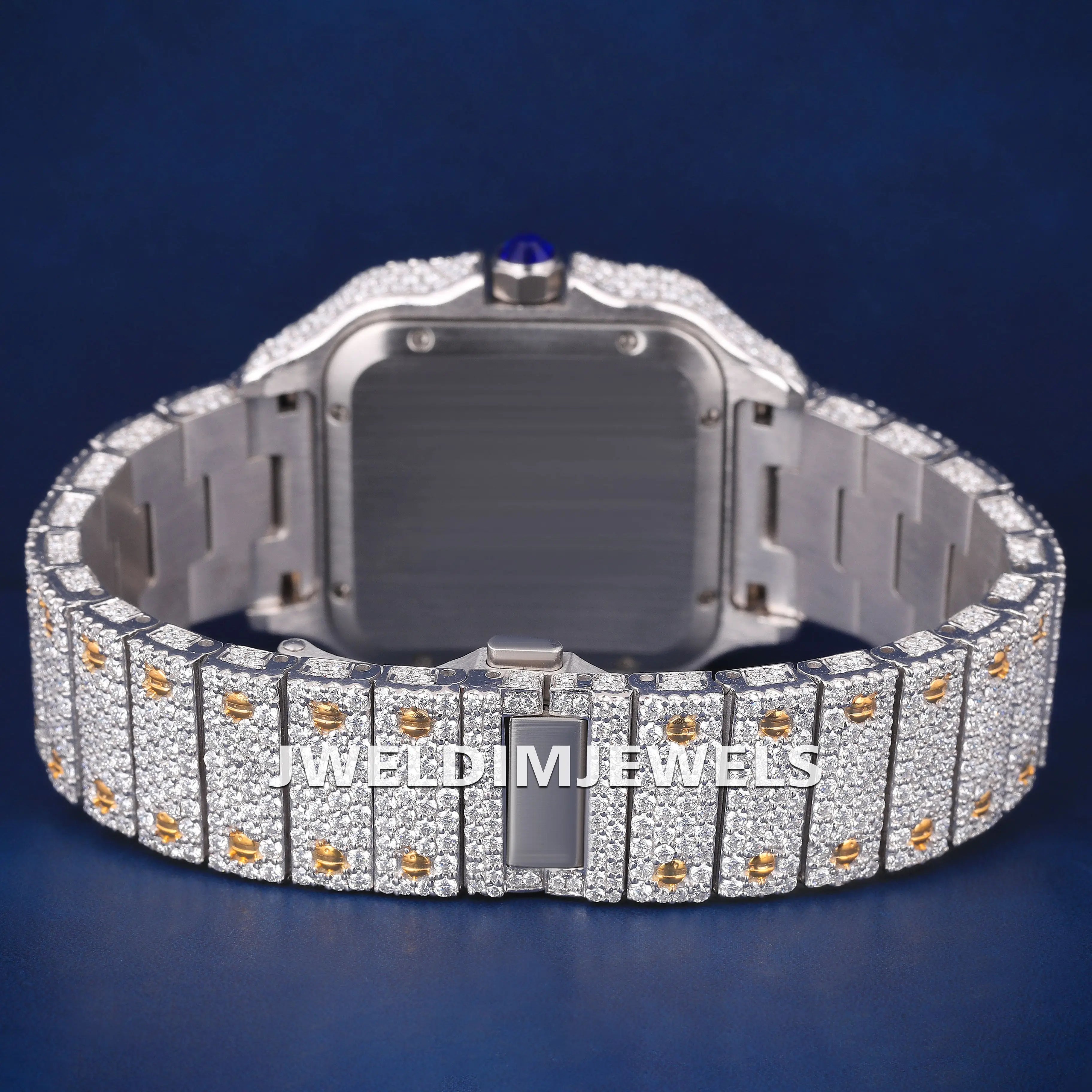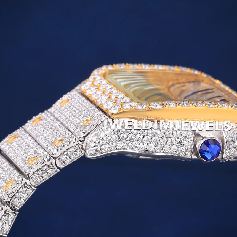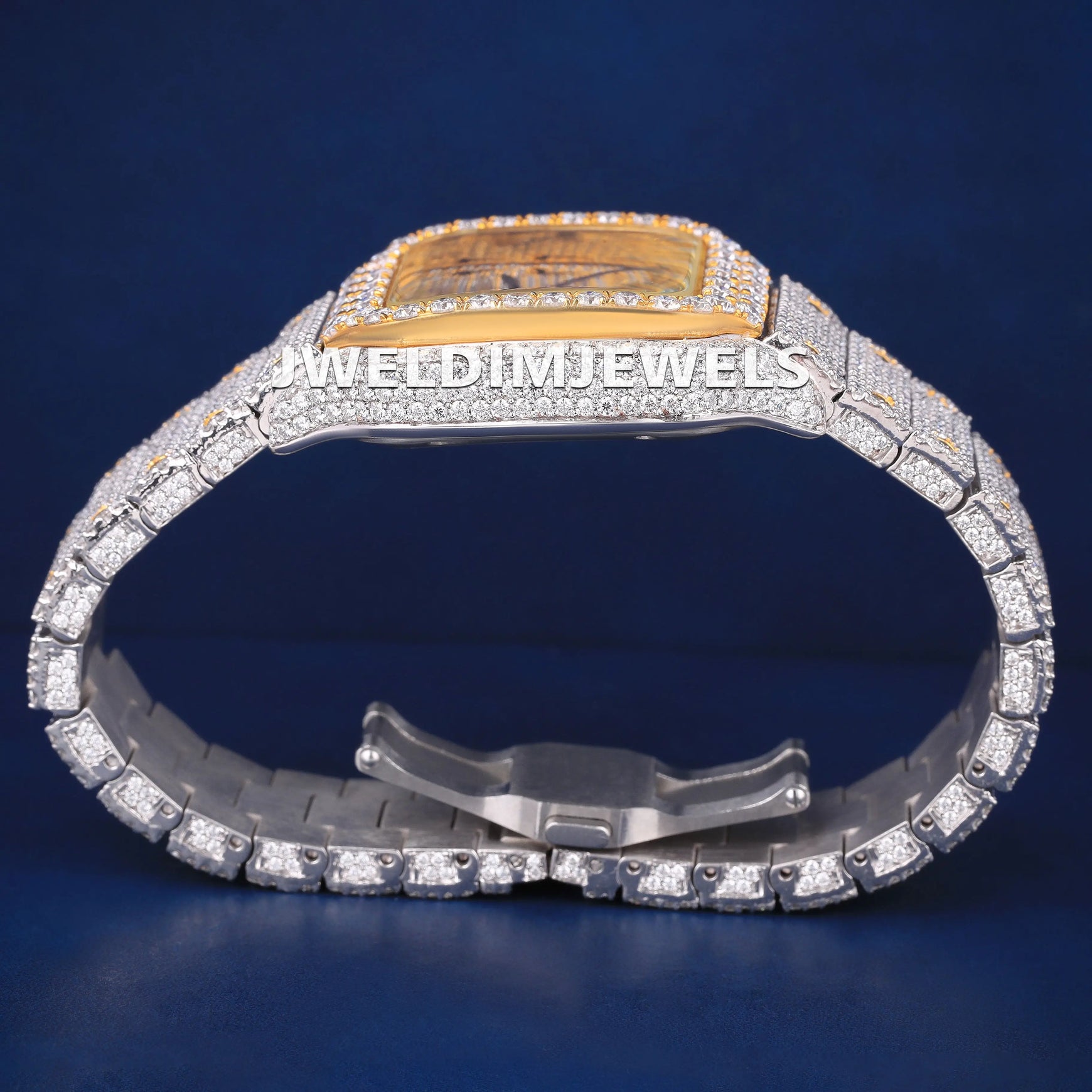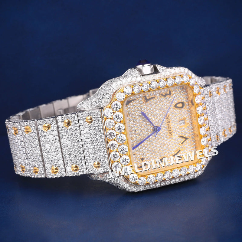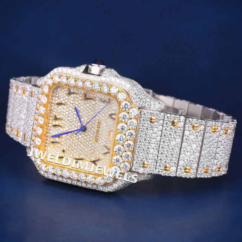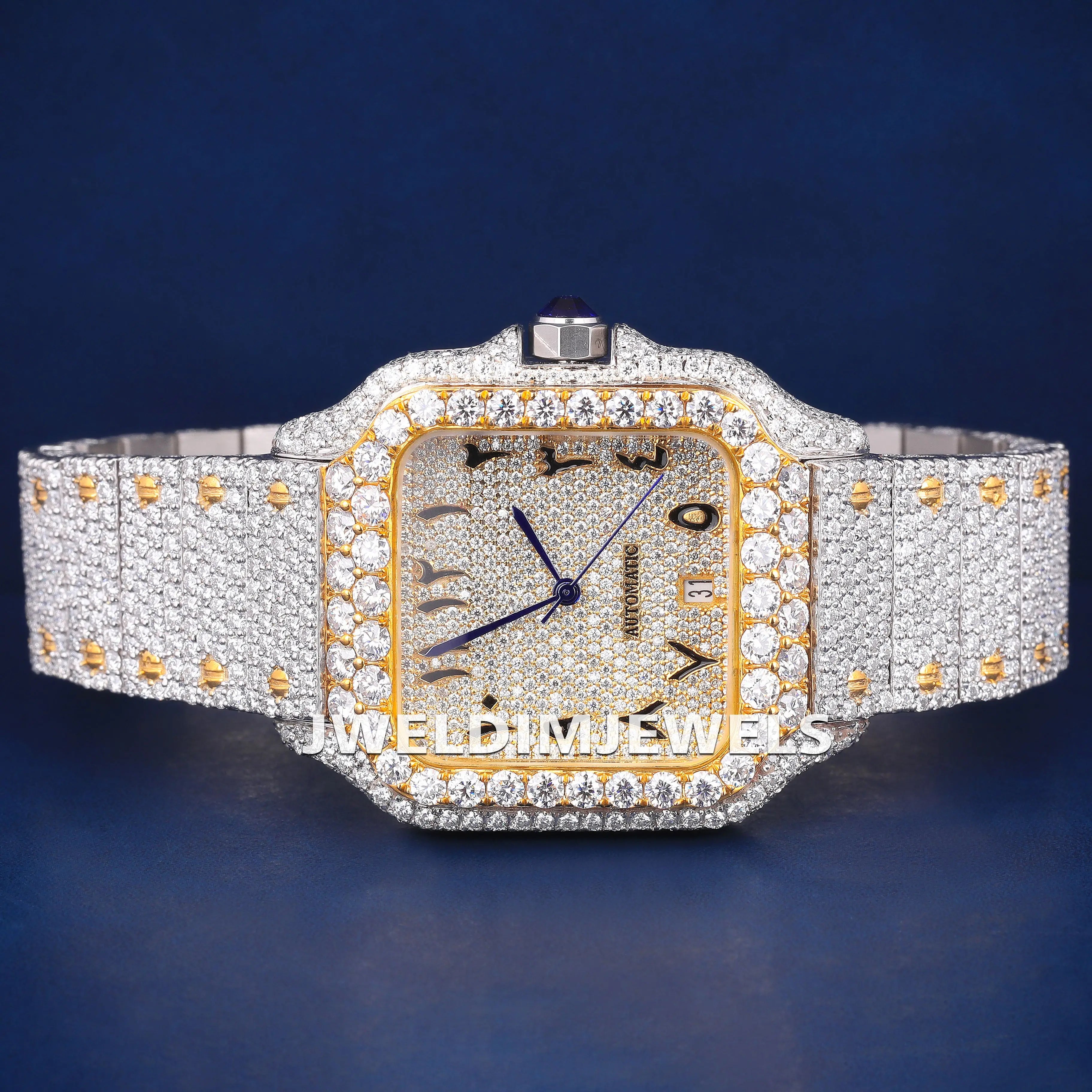 Silver Yellow Two Tone Full Iced Out VVS Diamond Custom Arabic Dial 41mm Luxury watches for Mens
