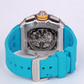 Stand Out in Style with a Sky Blue Rubber Belt Watch Iced in VVS Diamonds