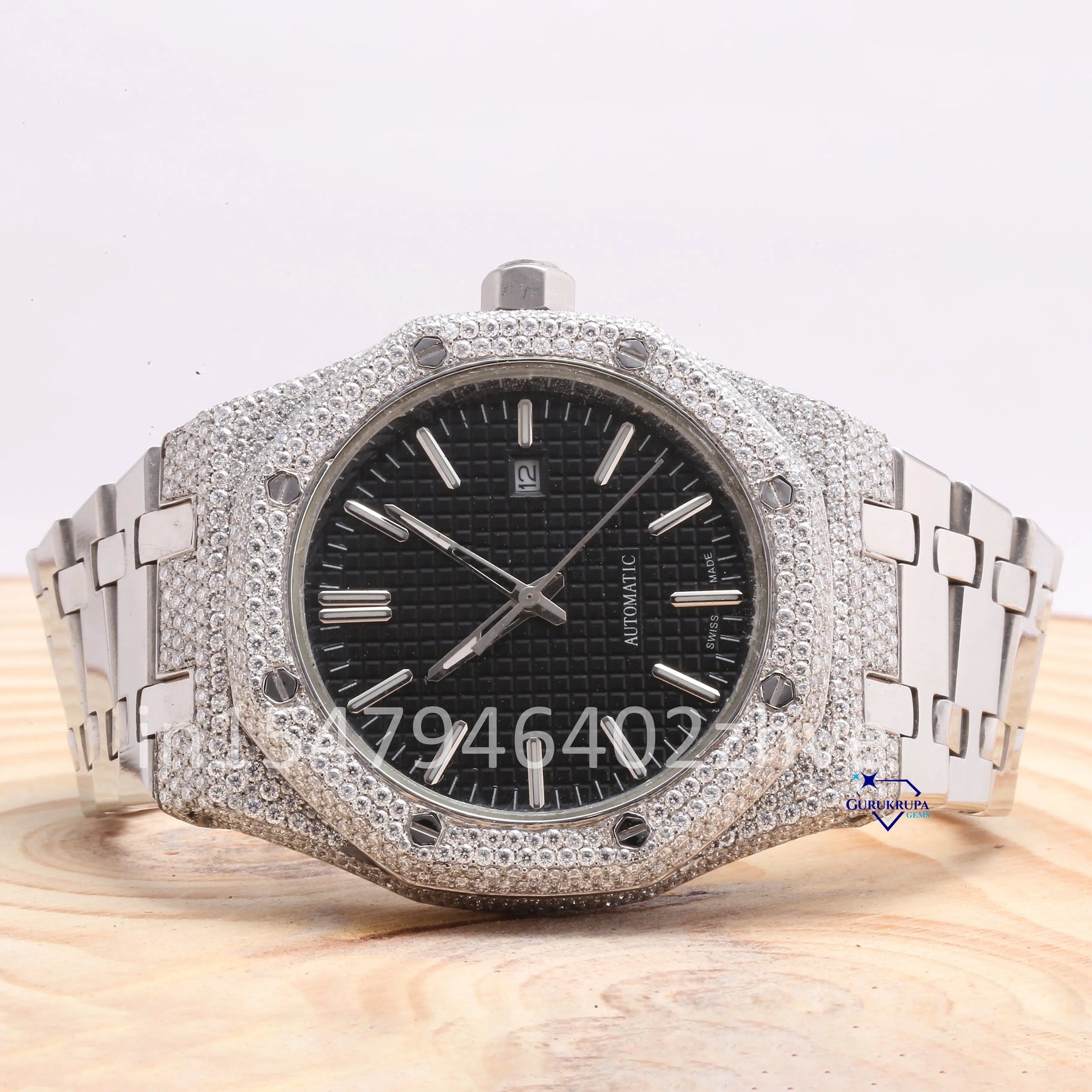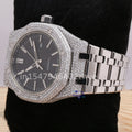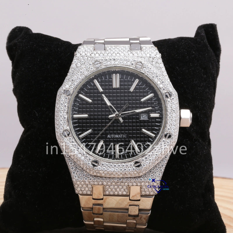 The half iced-out black dial stainless steel watch with moissanite diamond that grabs everyone's attention