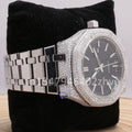 Get Noticed with This Black Dial Stainless Steel Watch Iced in Moissanite