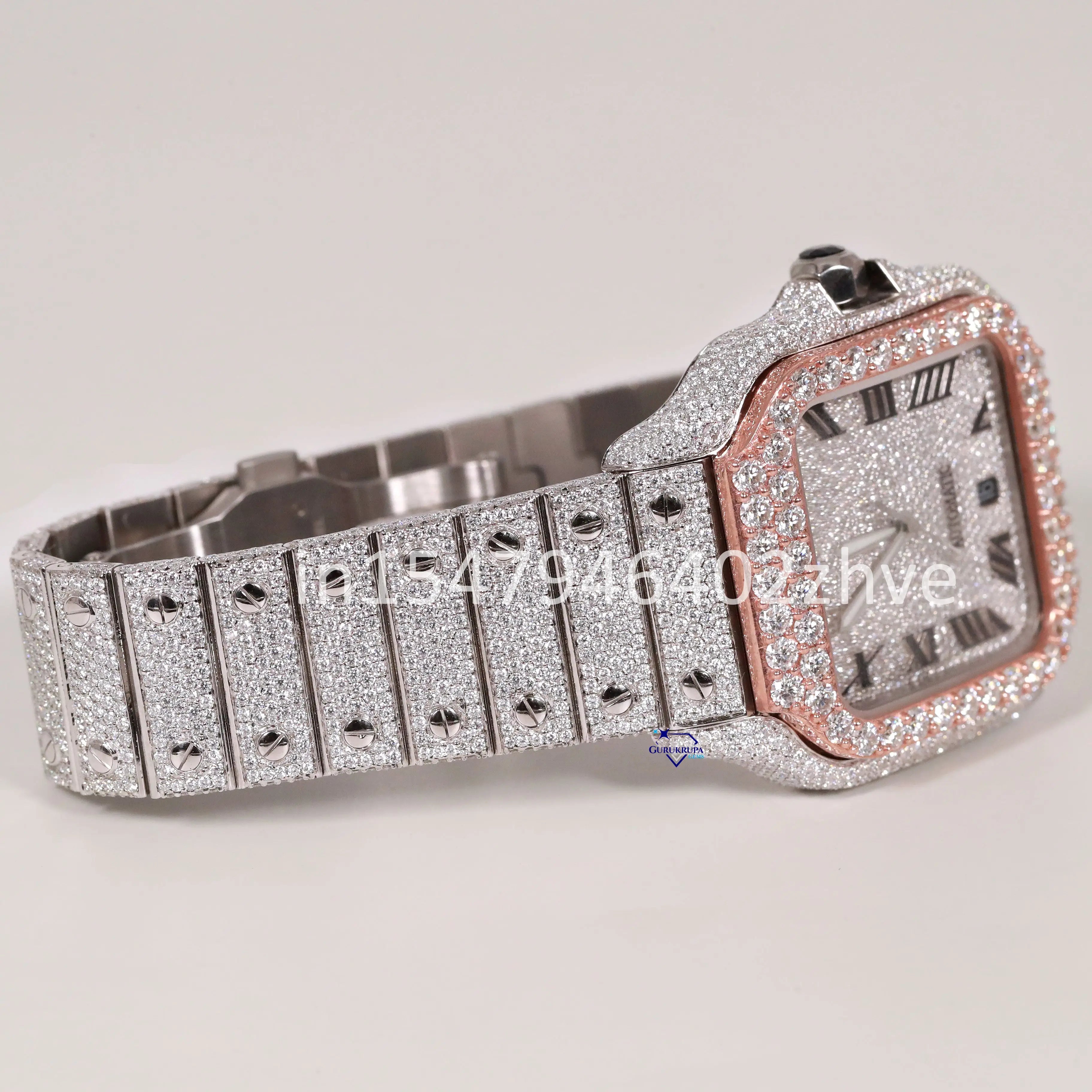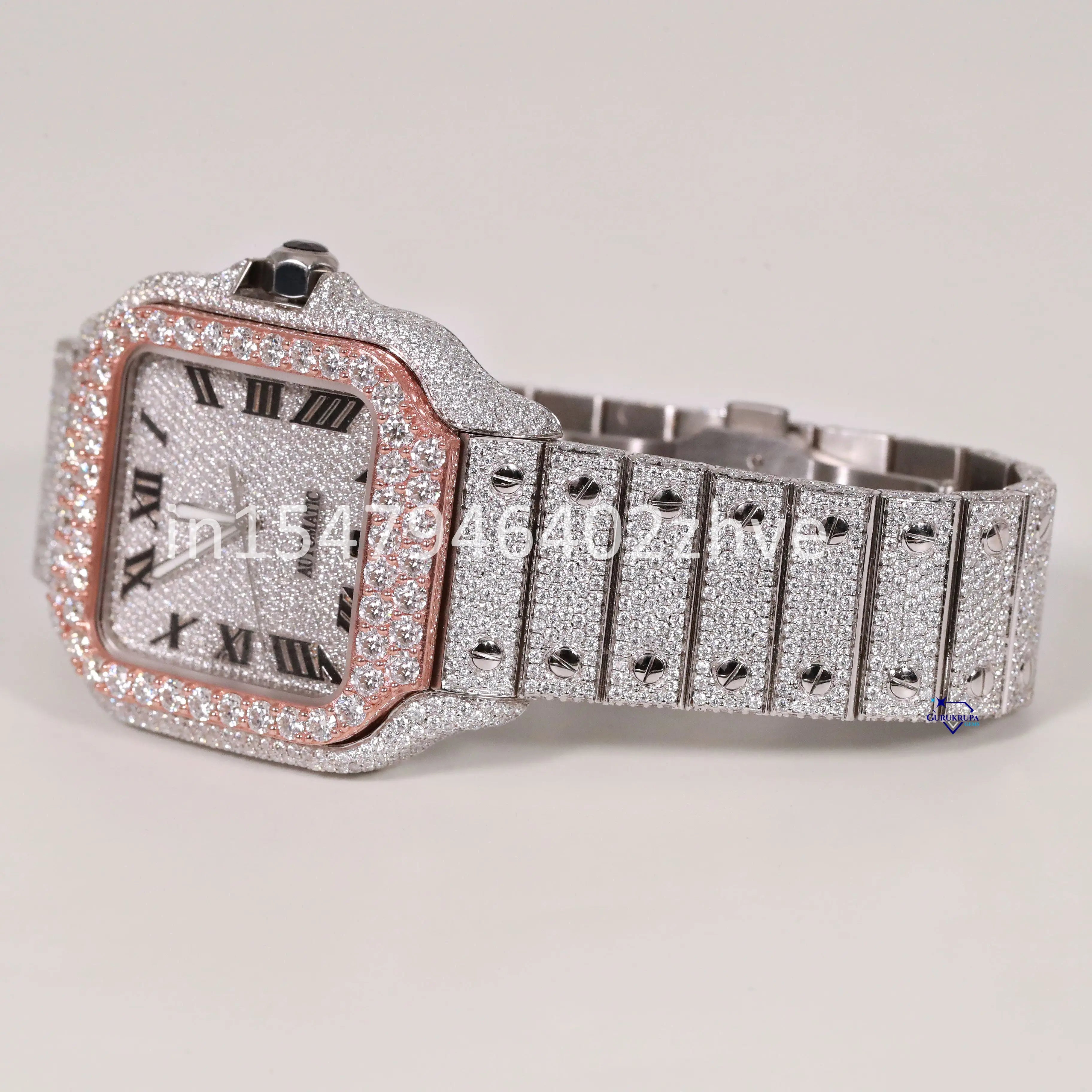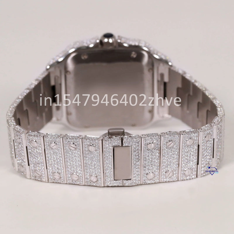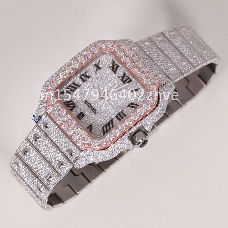 This watch is crafted with flawless moissanite diamond watch and features Roman numerals