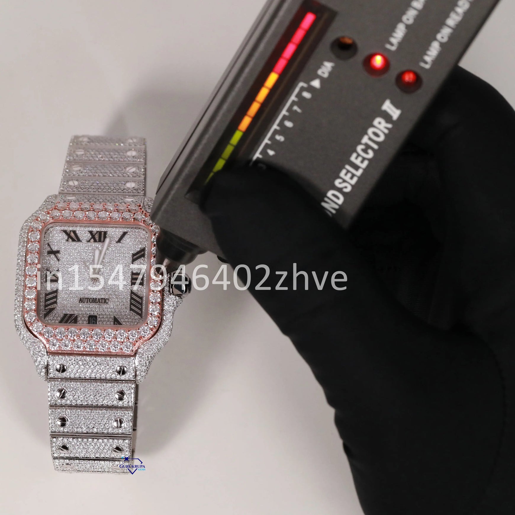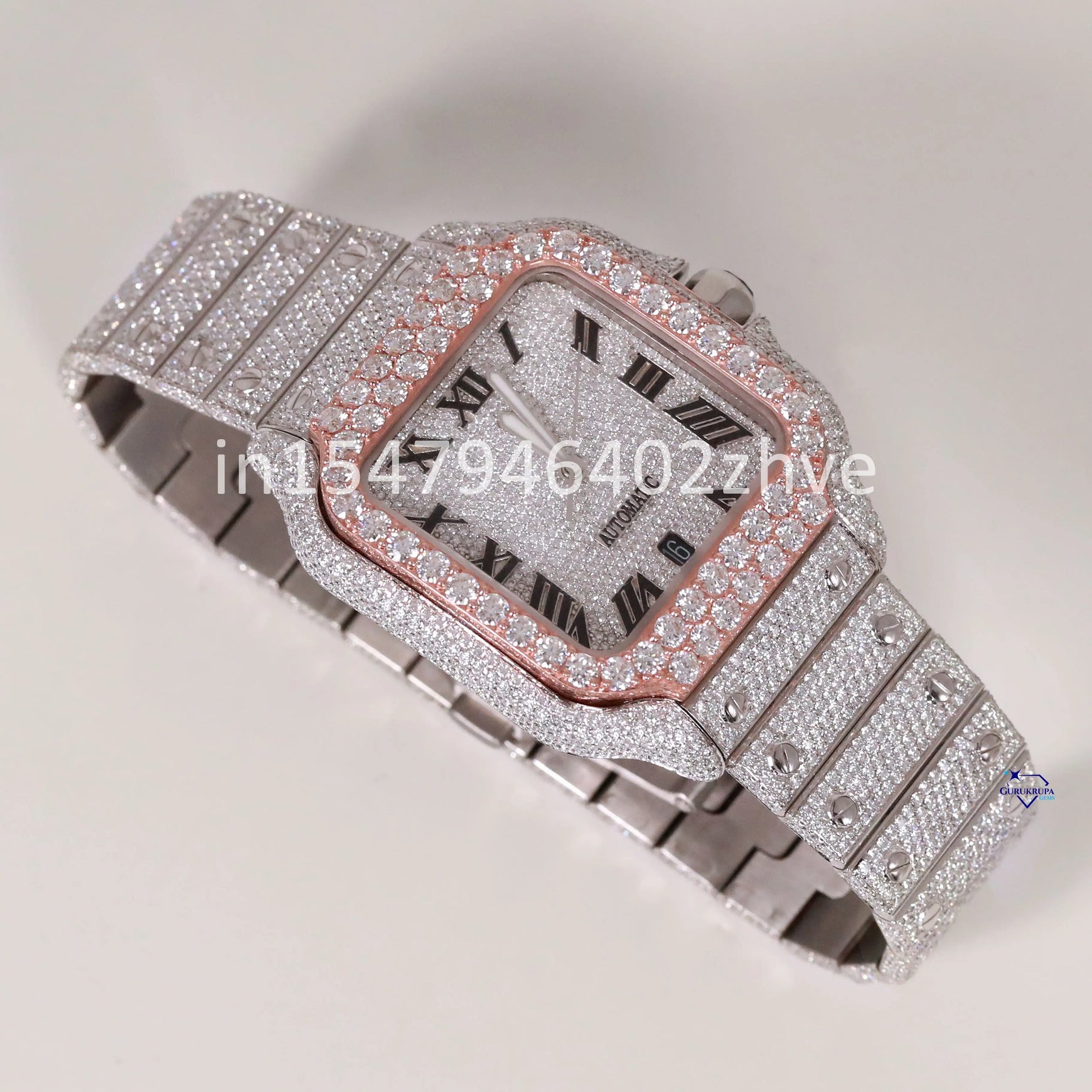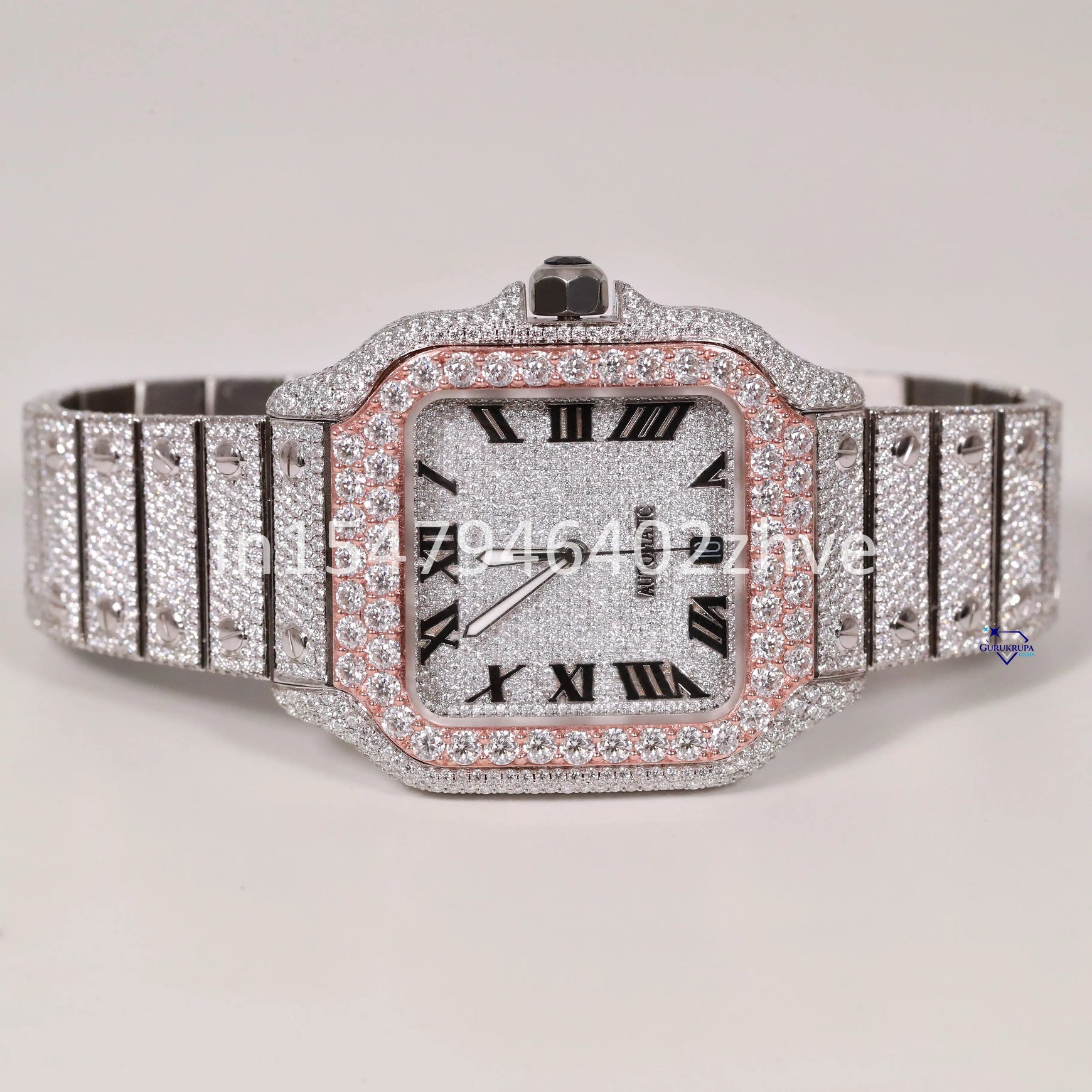This watch is crafted with flawless moissanite diamond watch and features Roman numerals