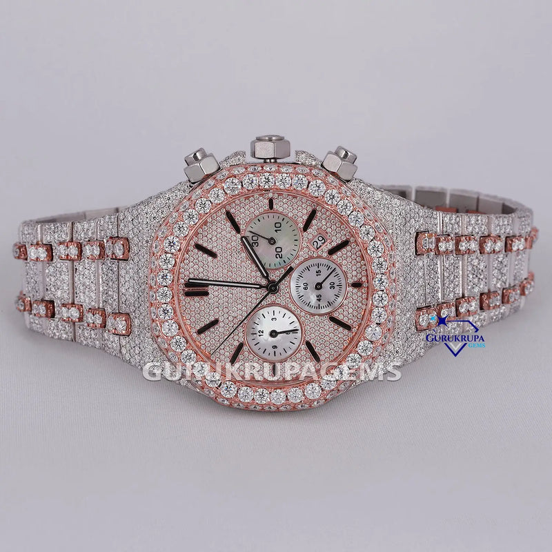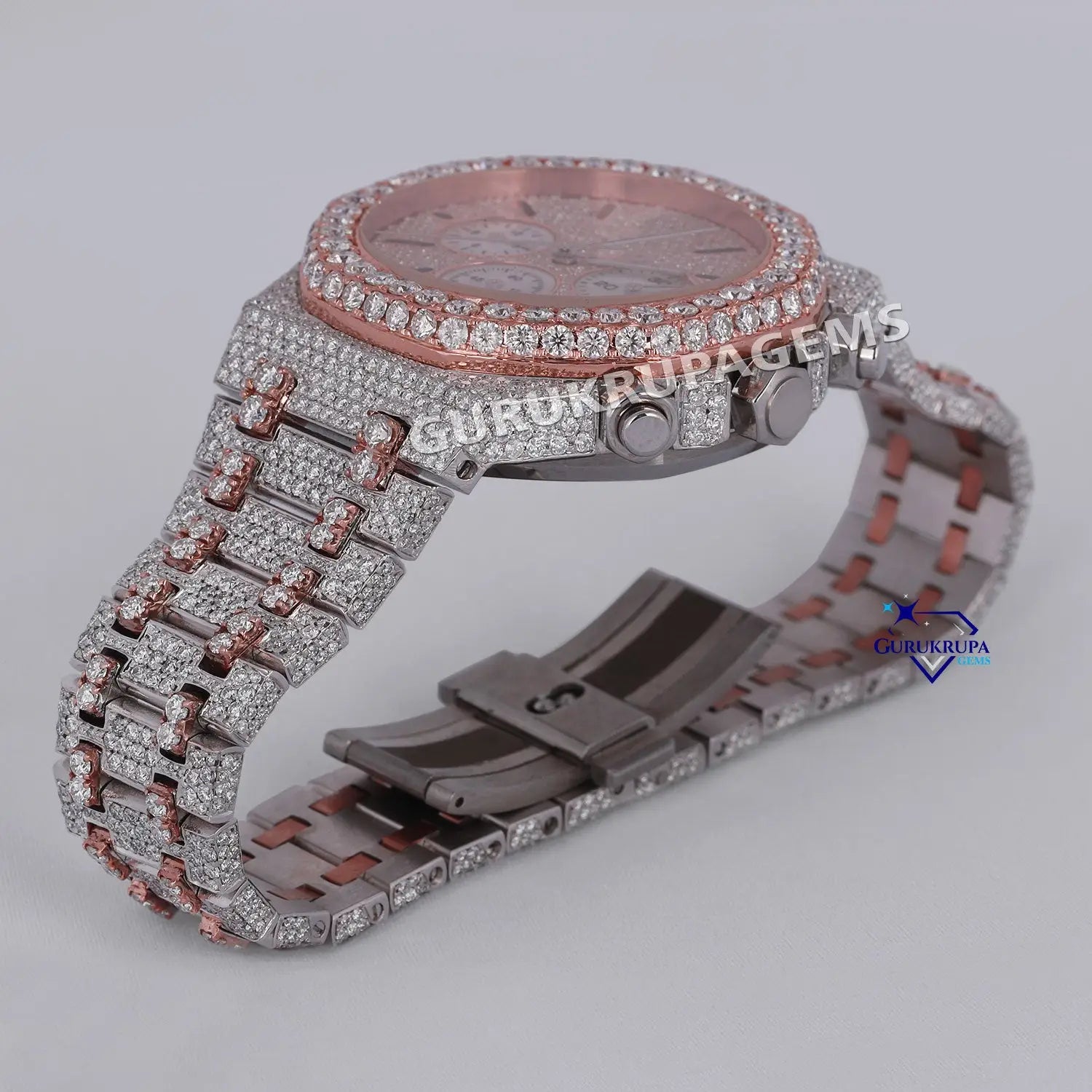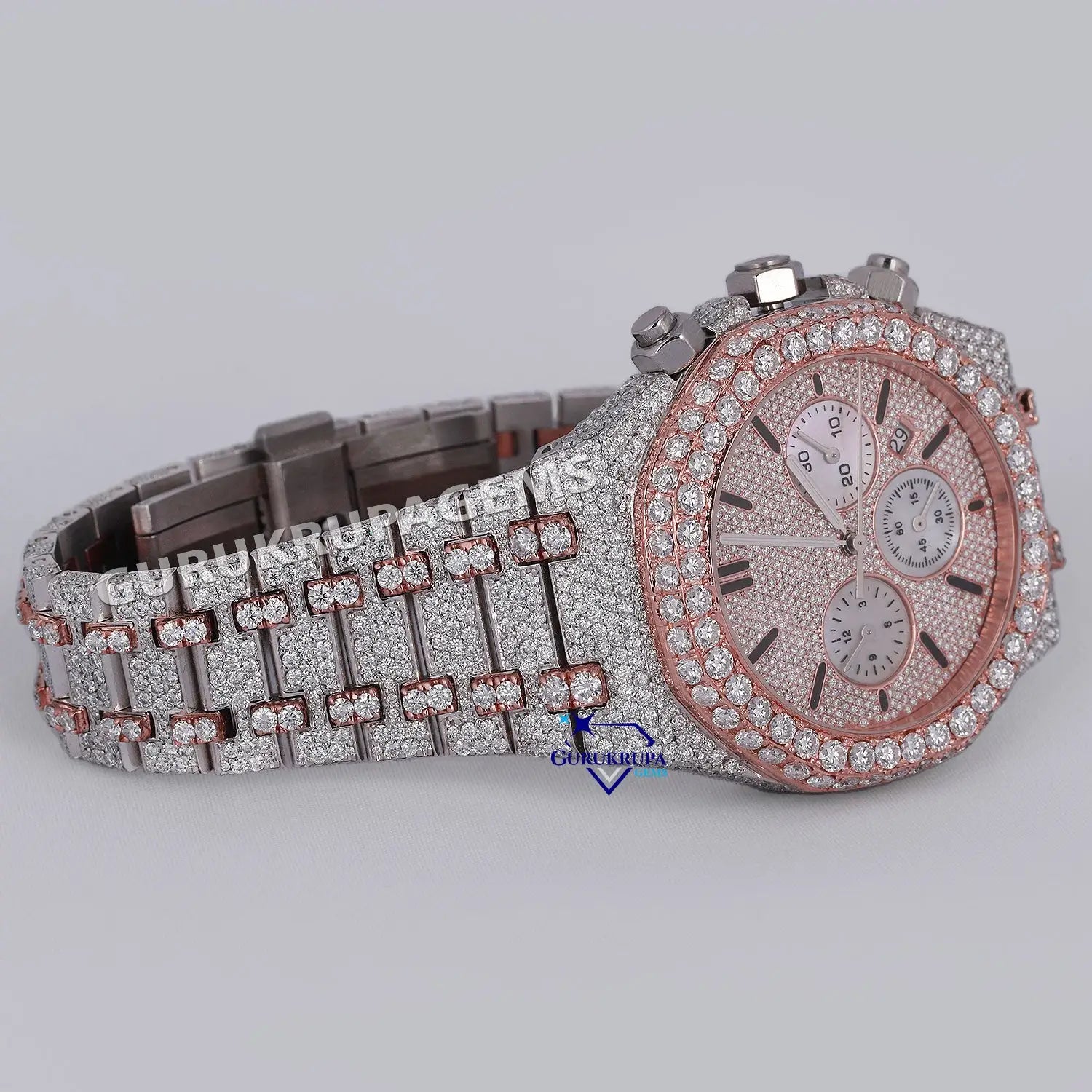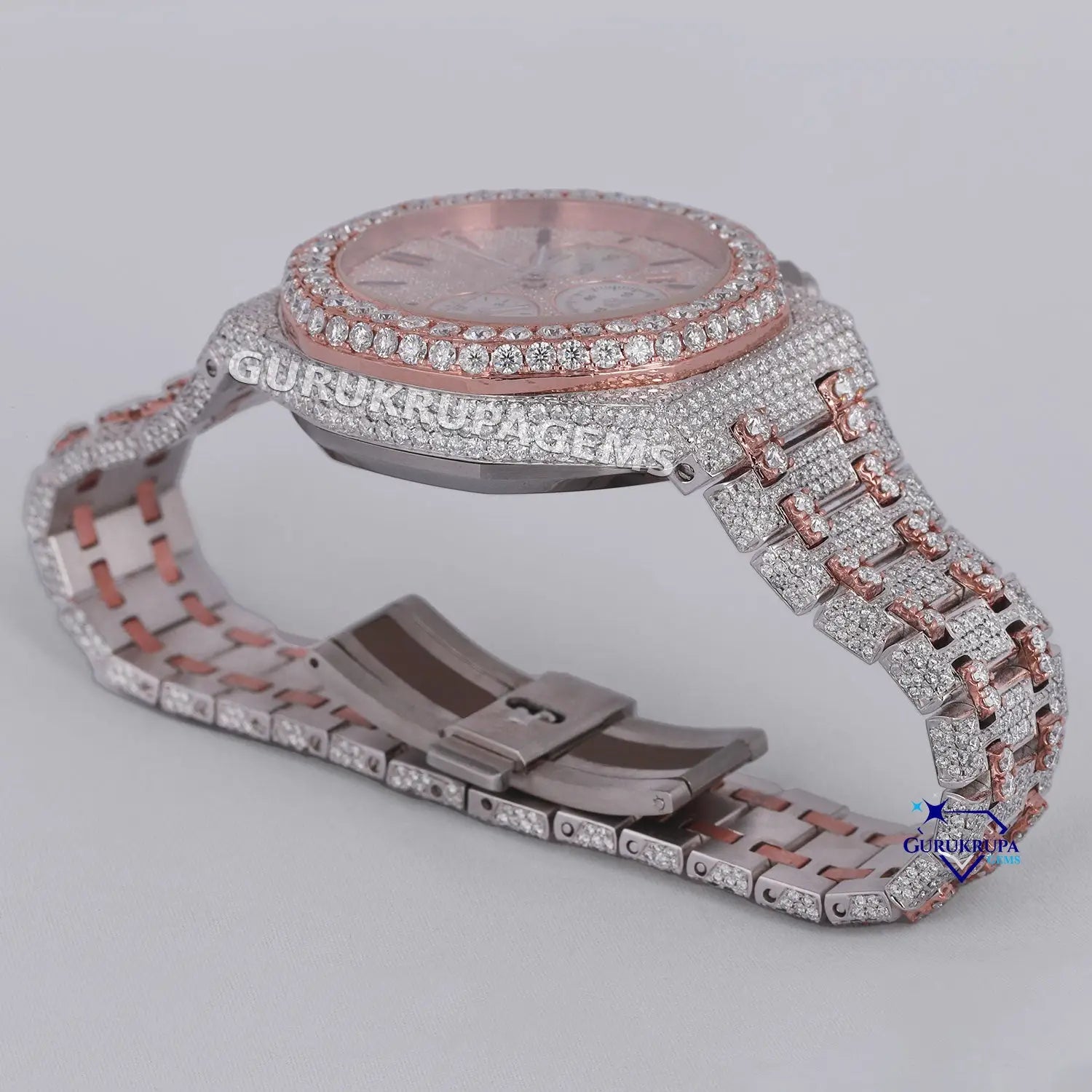Moissanite chronograph diamond watch collection for men with VVS clarity shine