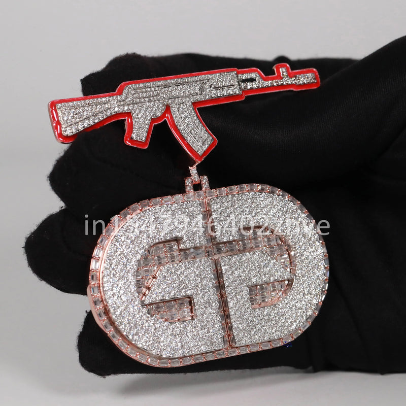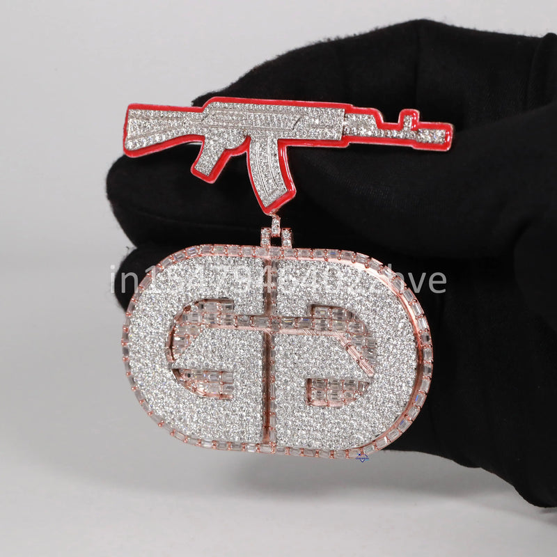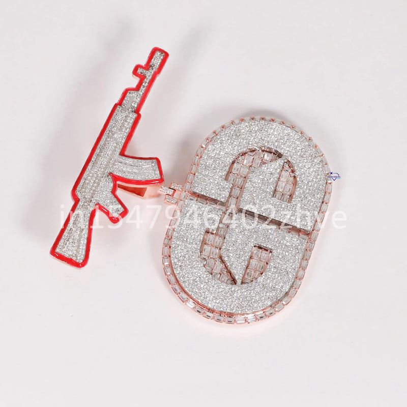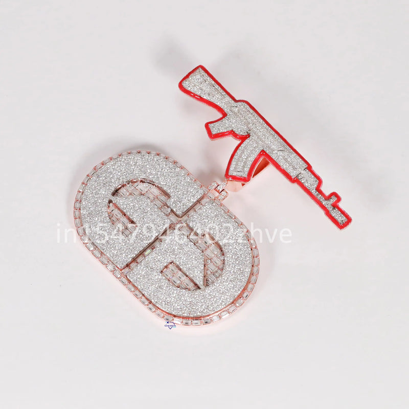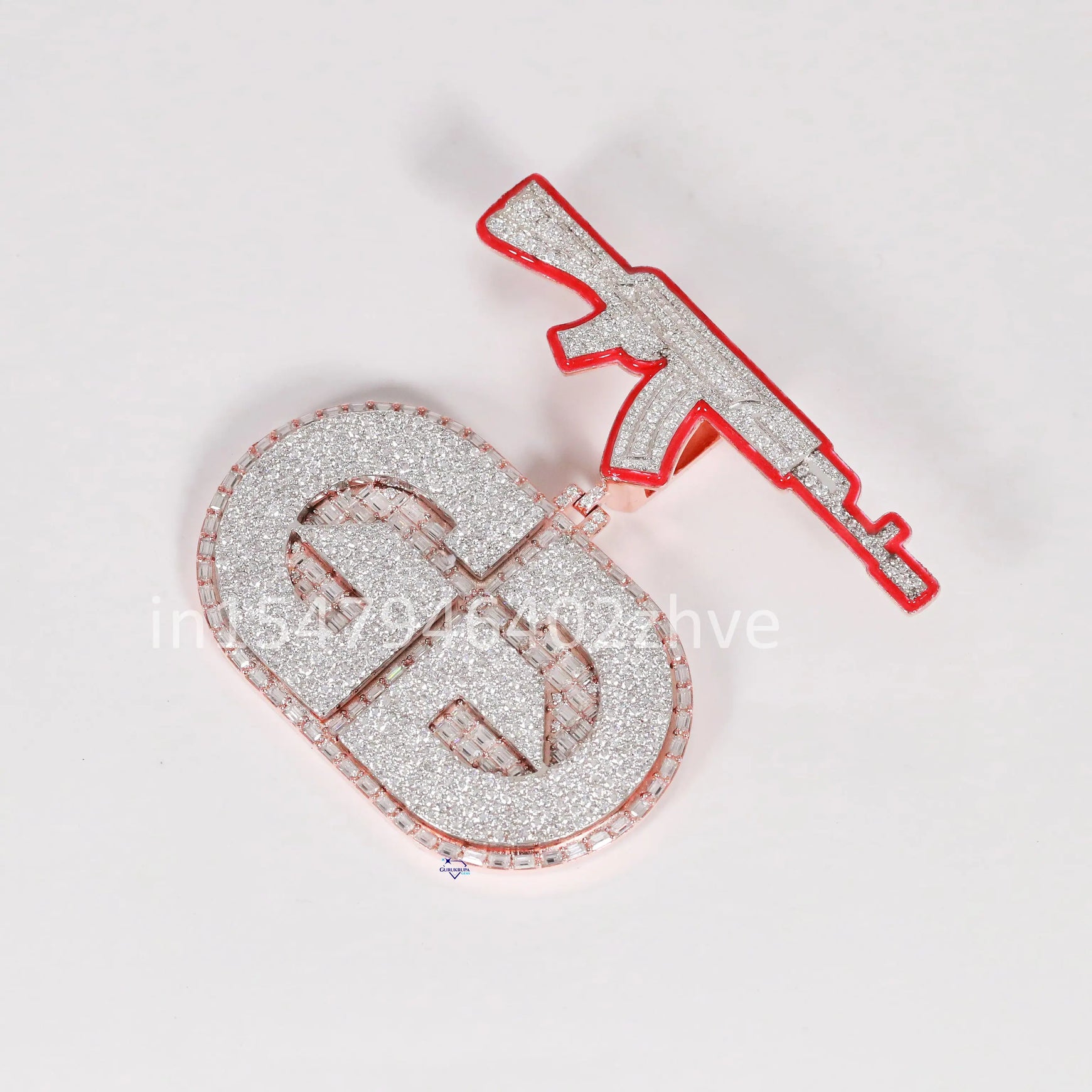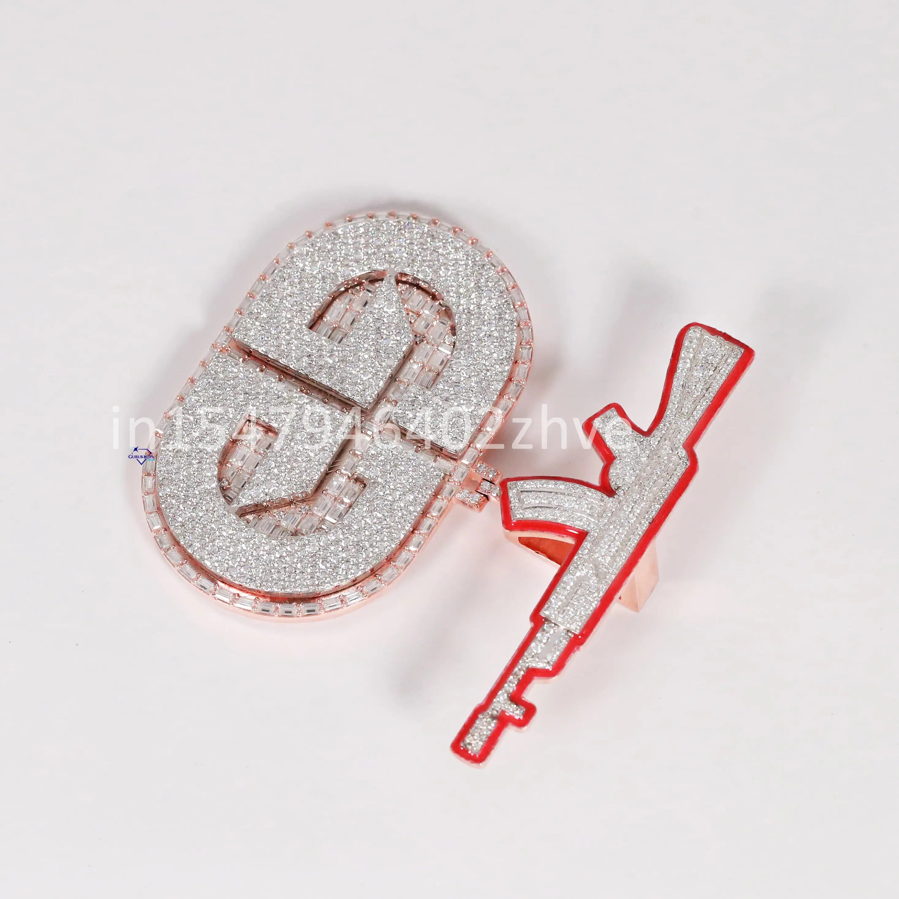 Two Tone 14 kt rose and white gold Lab Created Diamond Pendant with vvs clarity For Hip Hop Jewelry