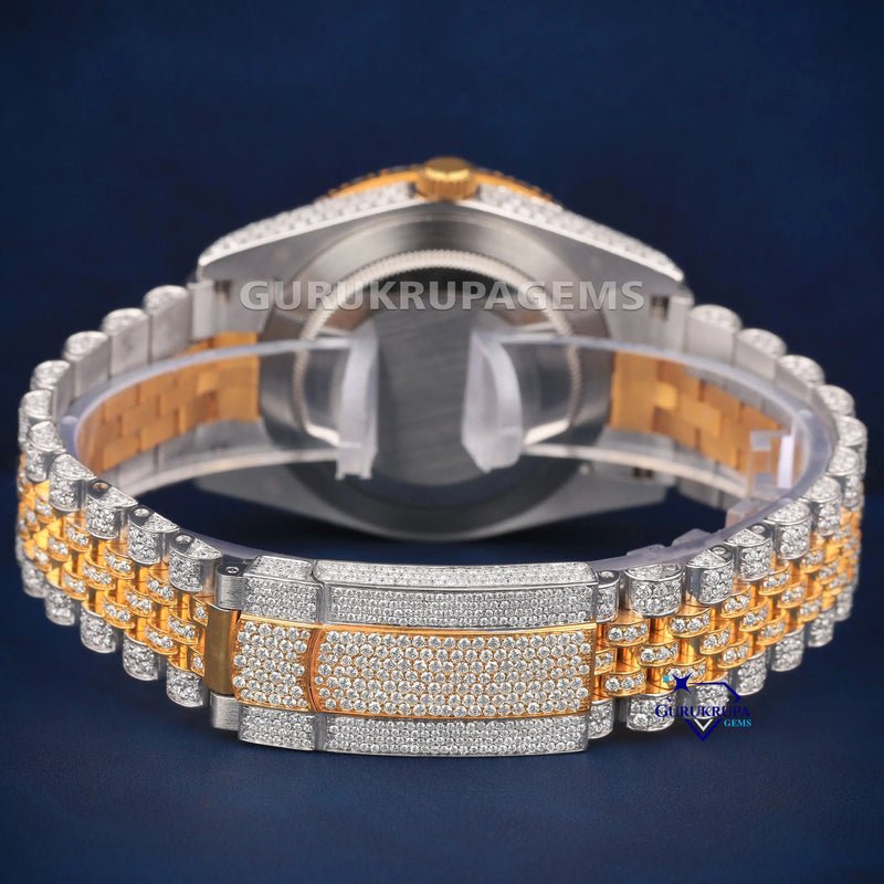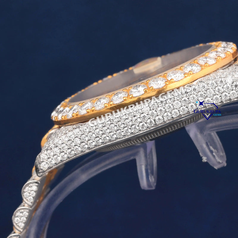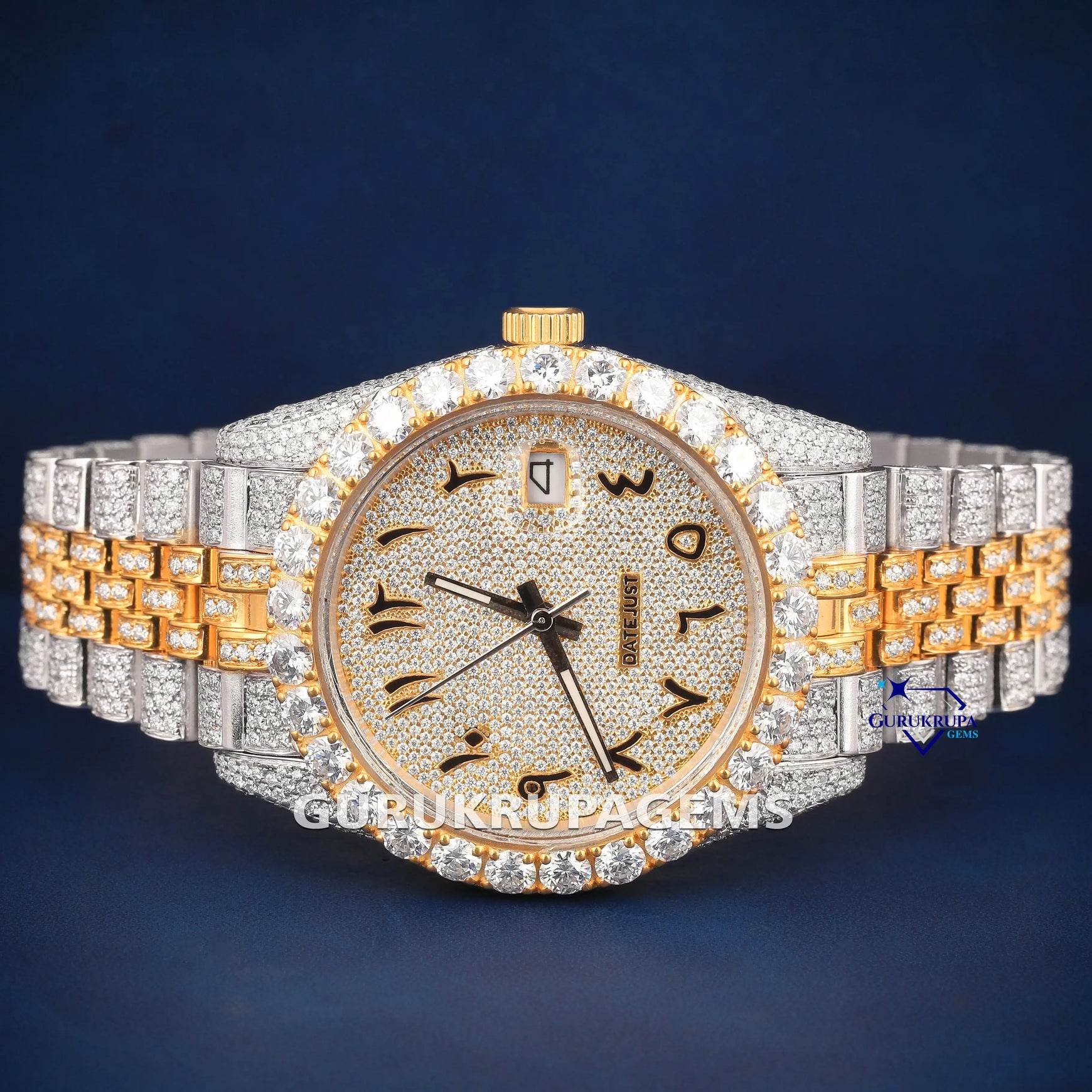 Iced Two Tone Diamond Watch with Arabic Dial VVS Moissanite Pass Tester Certified
