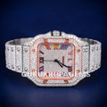 Two Tone Iced Out Diamond Watch with Multicolor Roman Numerical Dial and Custom Silver Rose Gold Color Bezel Watches