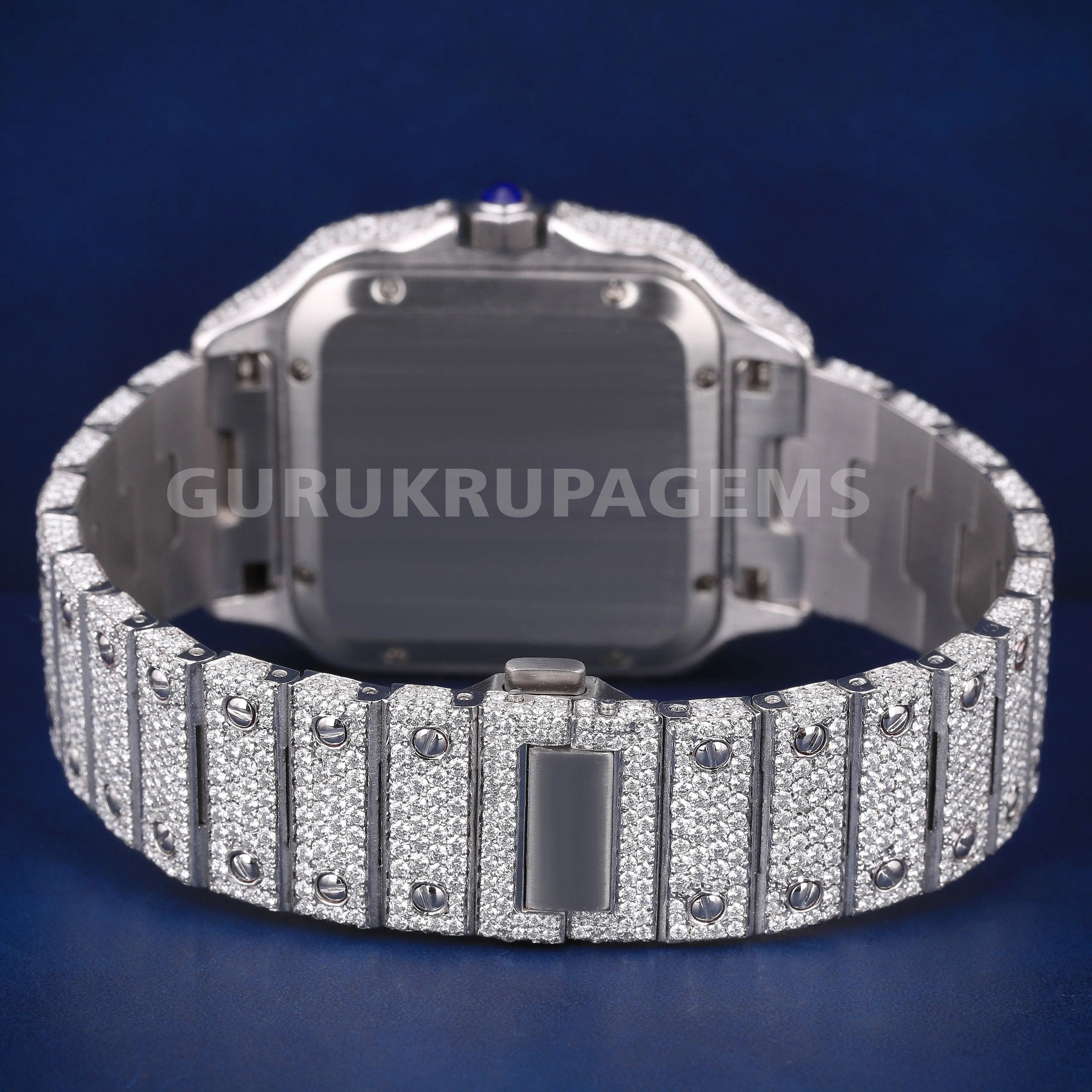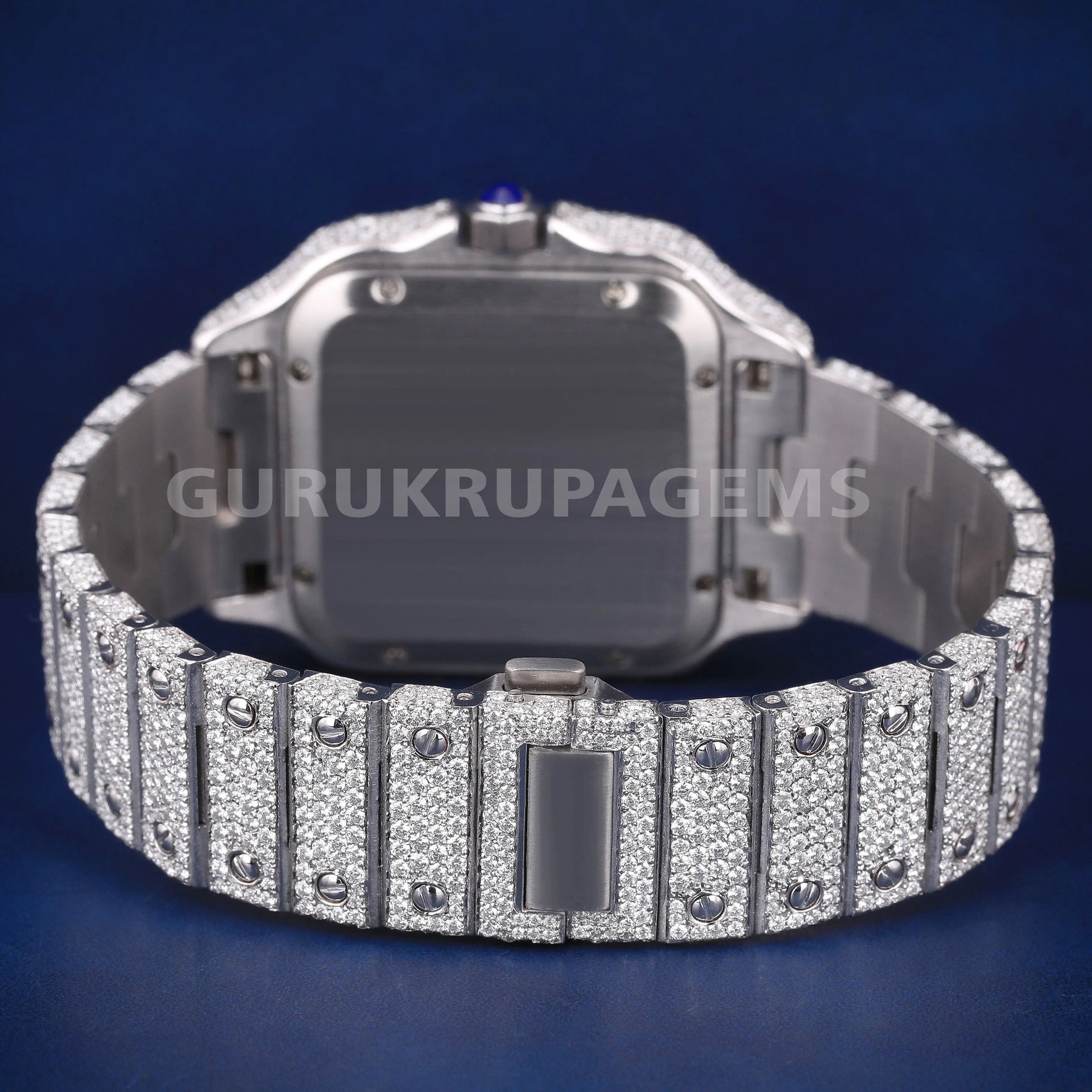 Two tone roman numeral timepiece iced out diamond watch with multicolor dial
