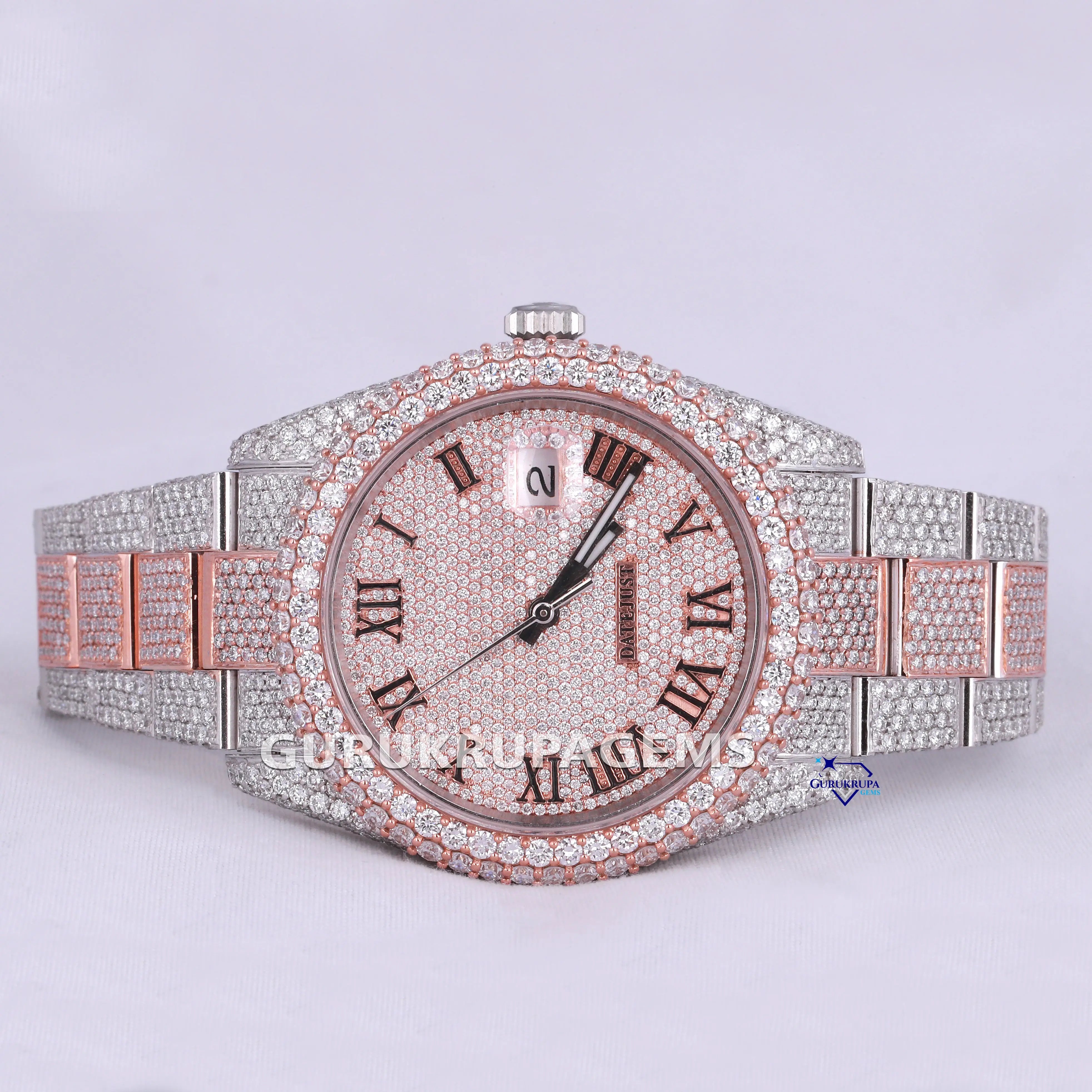 Two tone lab diamond hip hop branded watch for men vvs clarity diamonds in stainless steel