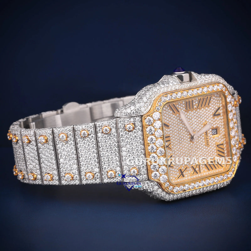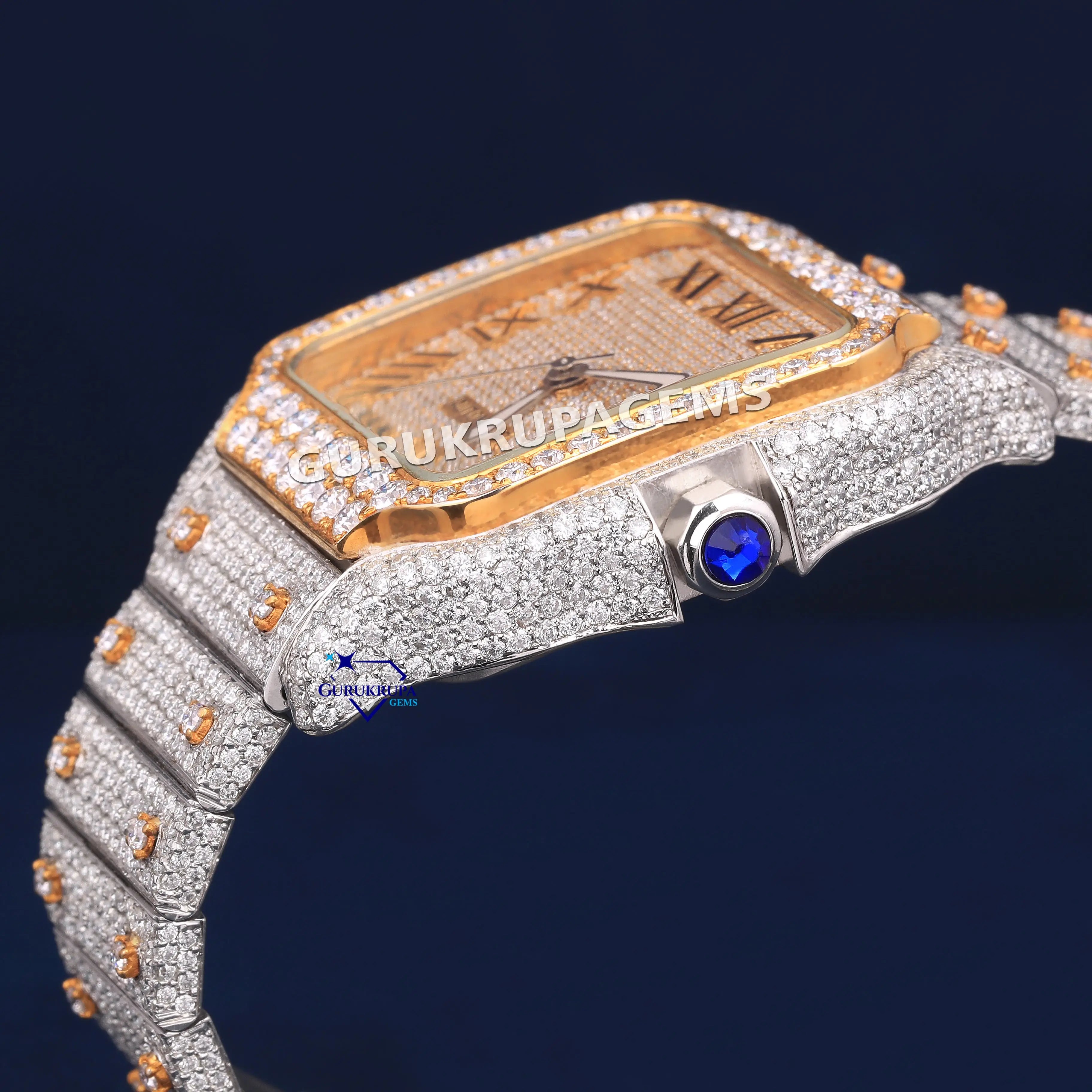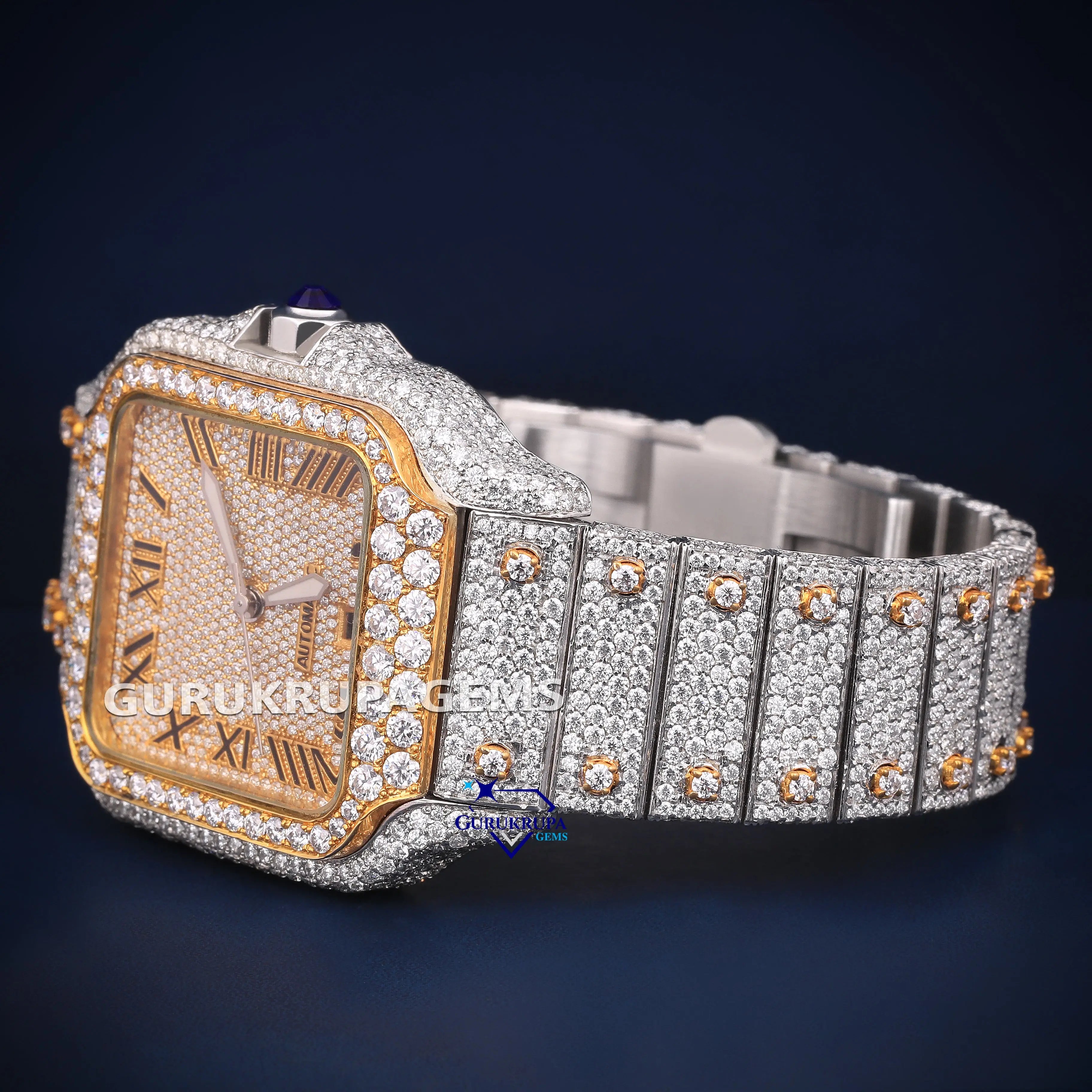Two Toned Roman Dials Hip Hop Iced Out Watch