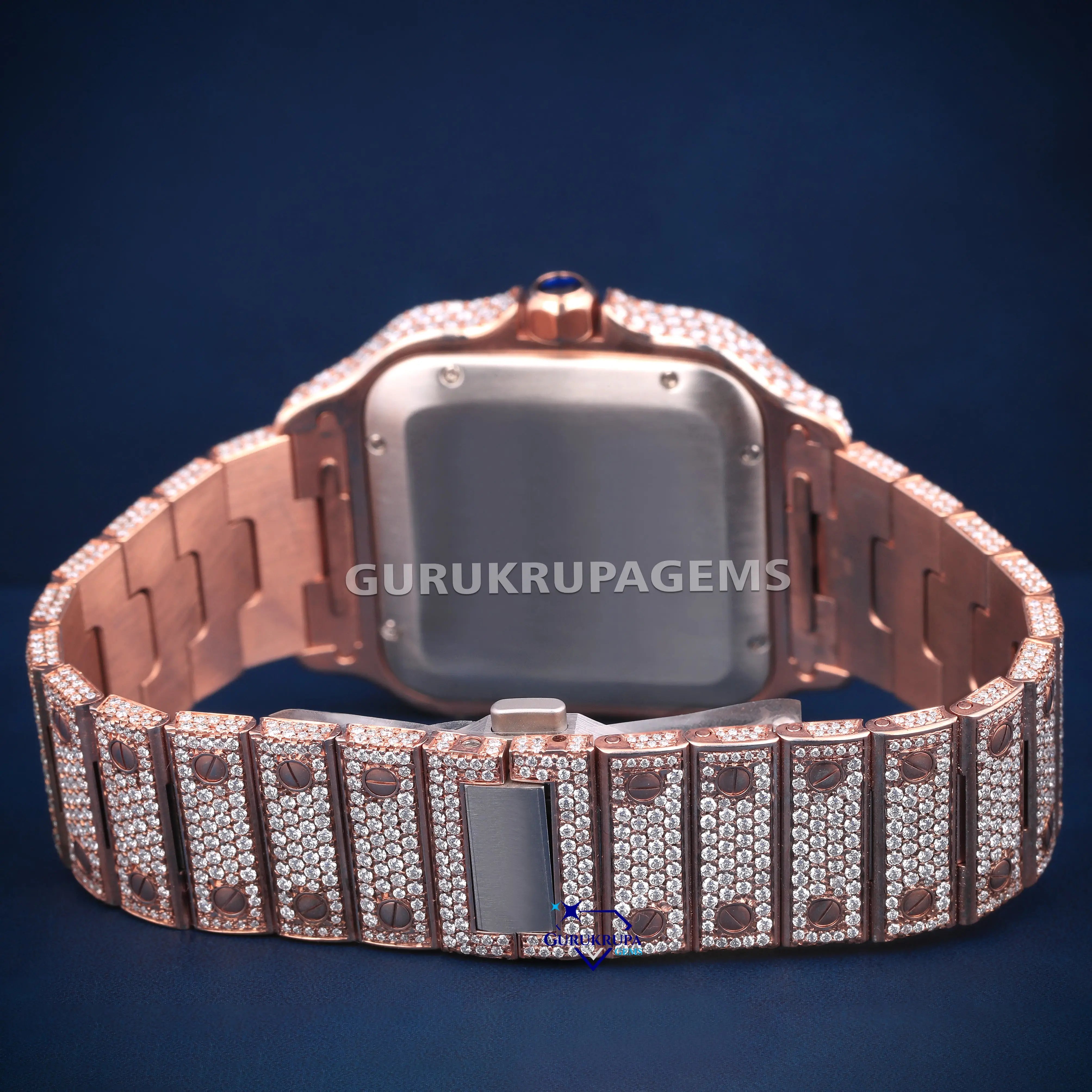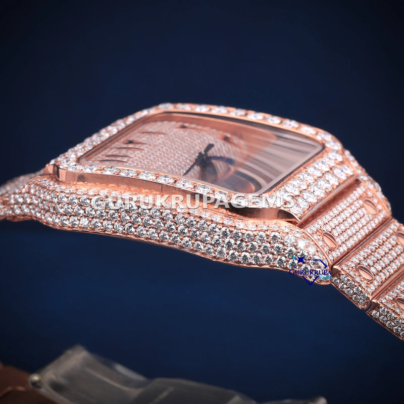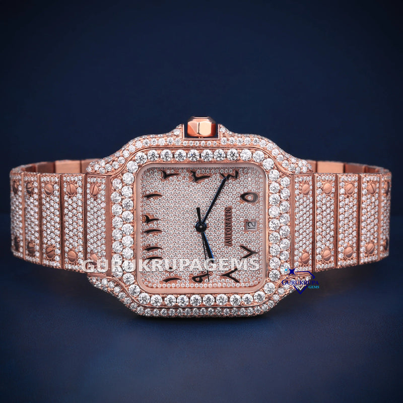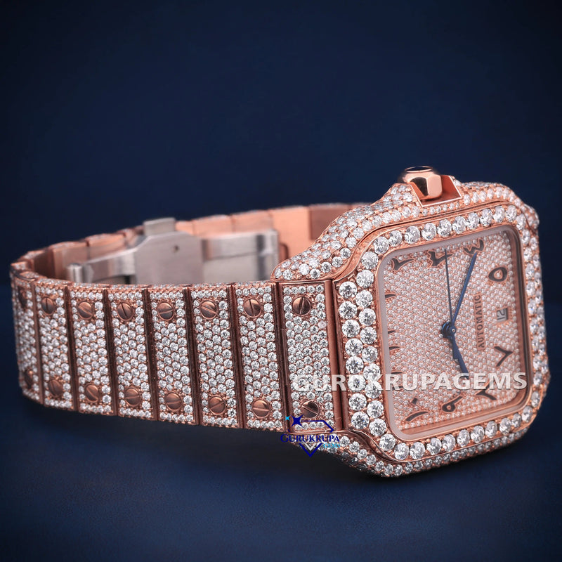 VVS pass tester fully rose gold hip hop arabic dial diamond watch