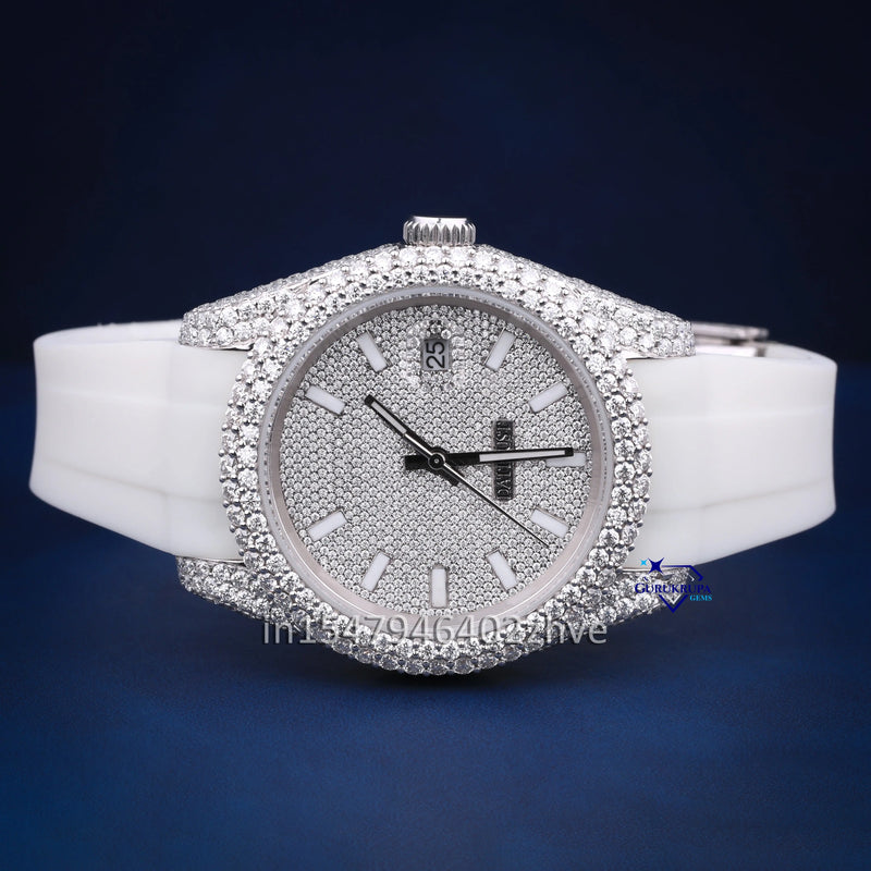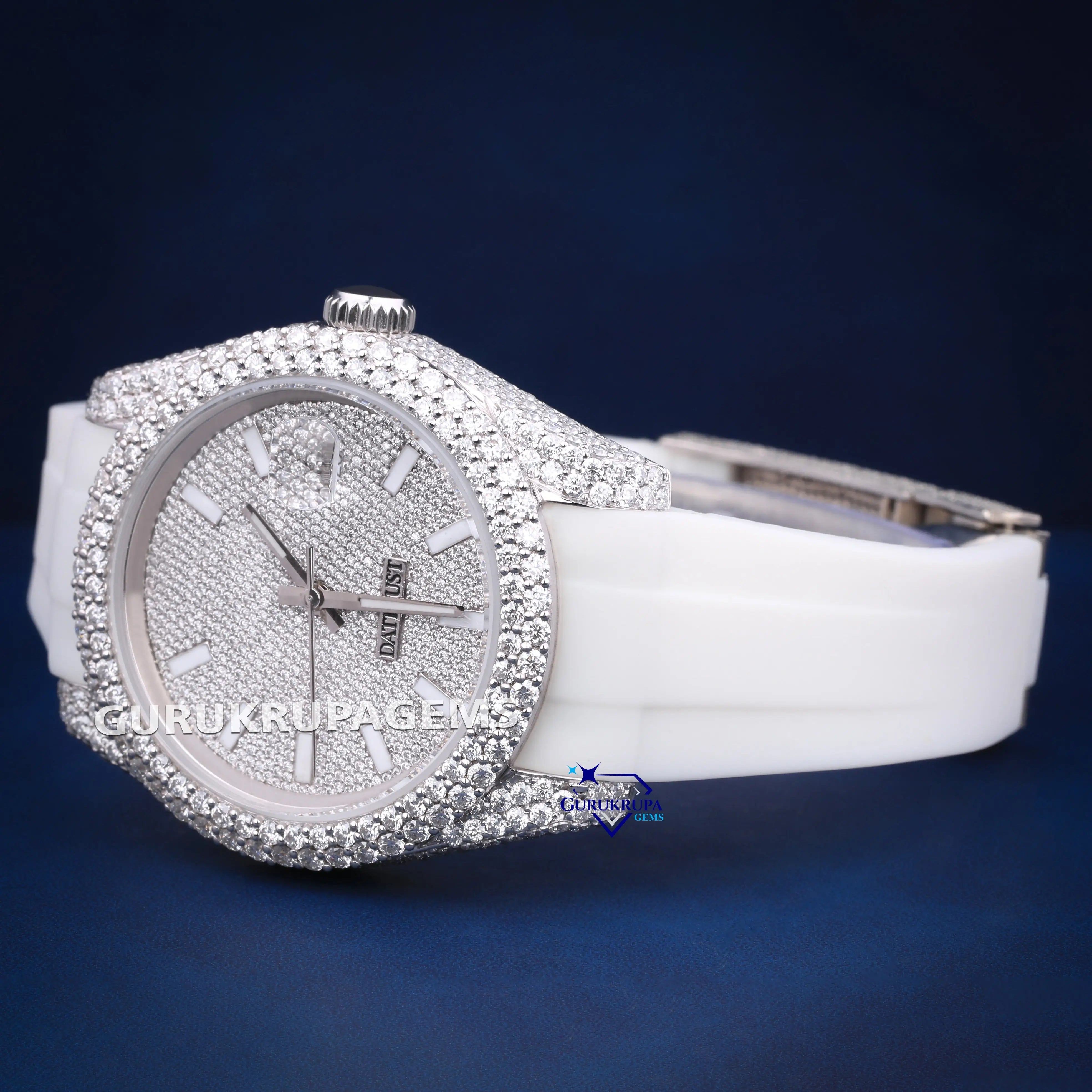 Glow in Every Move with a Diamond Watch & White Rubber Belt Customized Just for You